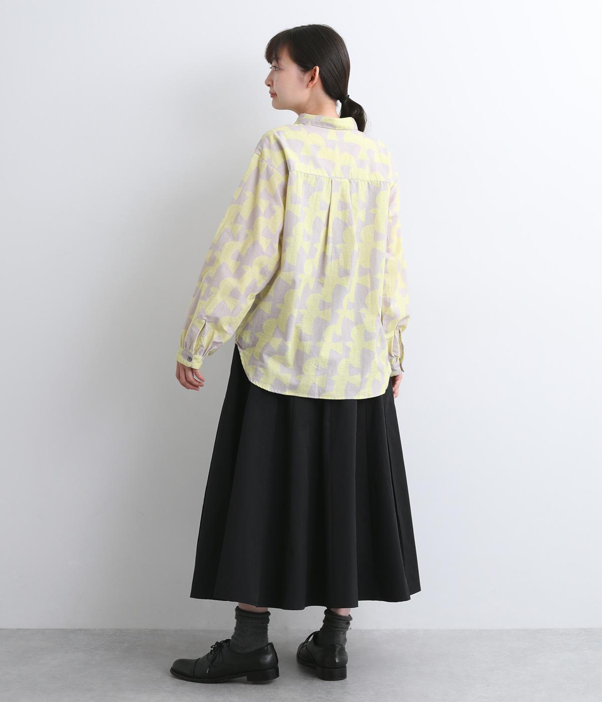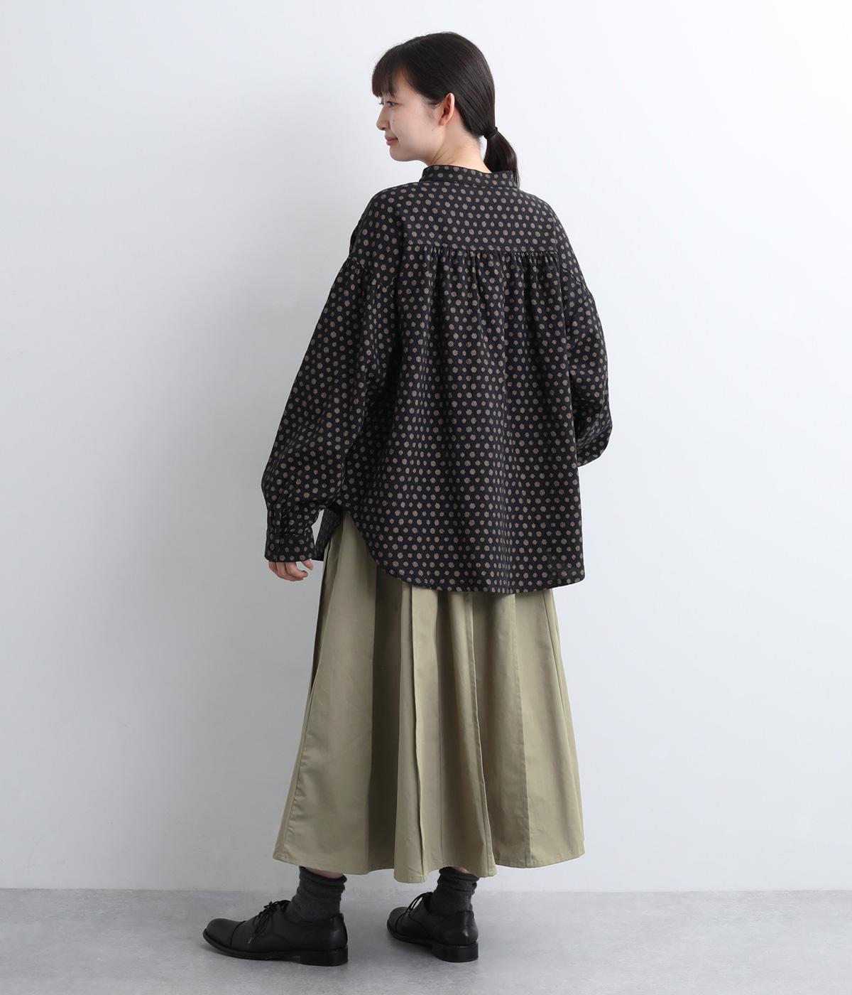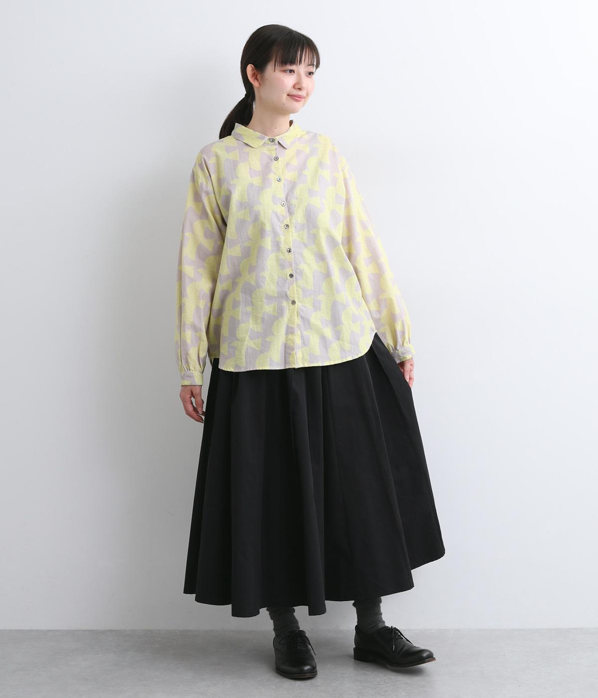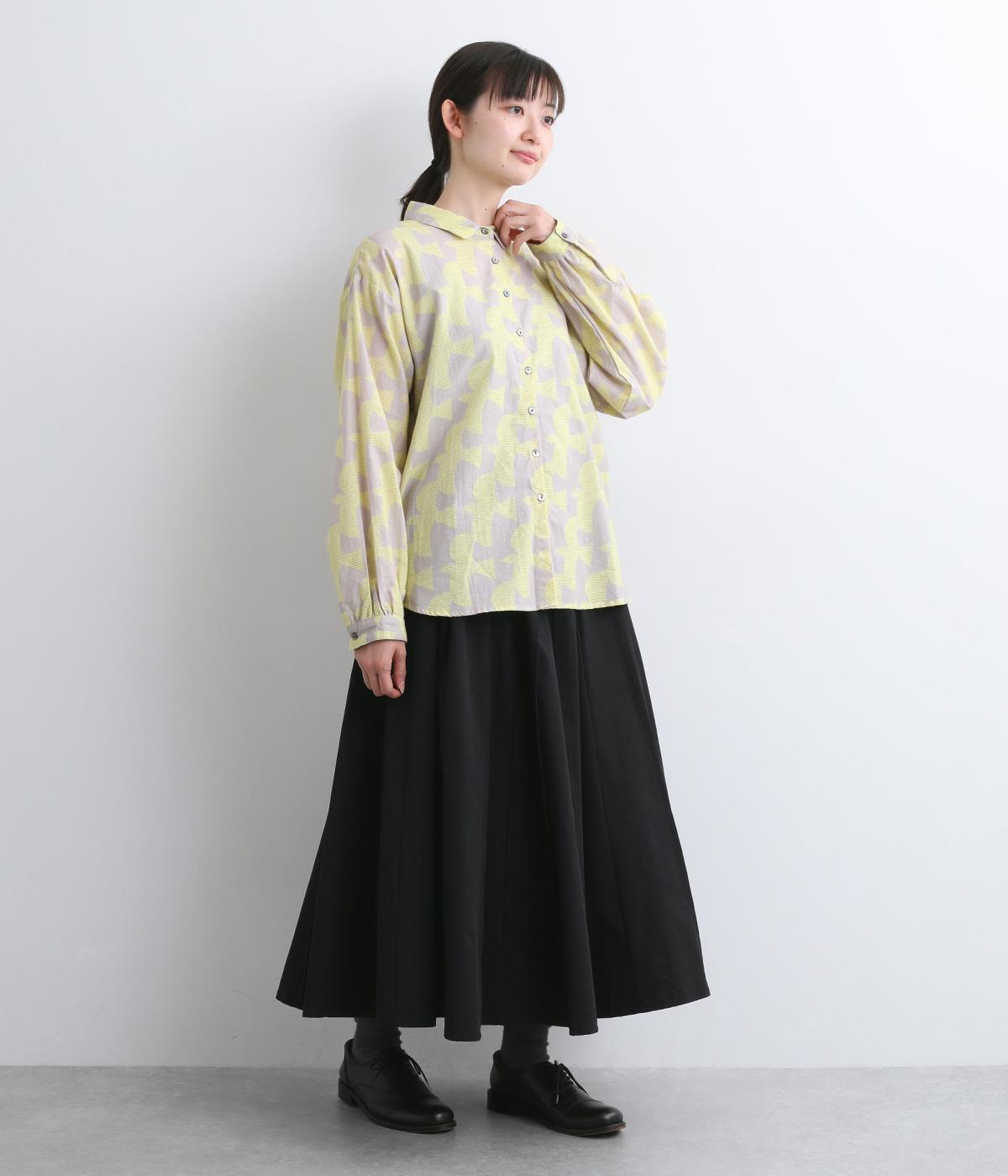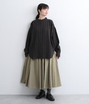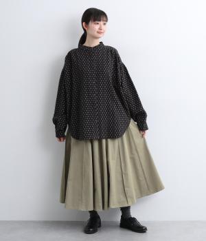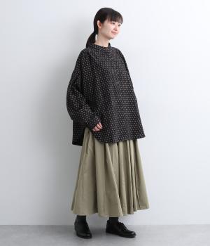 縦ラインにタックや切り替えを入れ、裾に向かってボリュームを出したスカート。カジュアルな生地感とフェミニンなシルエットのバランスが◎です。ウエストは総ゴム仕様で、快適な着用感にもこだわりました。