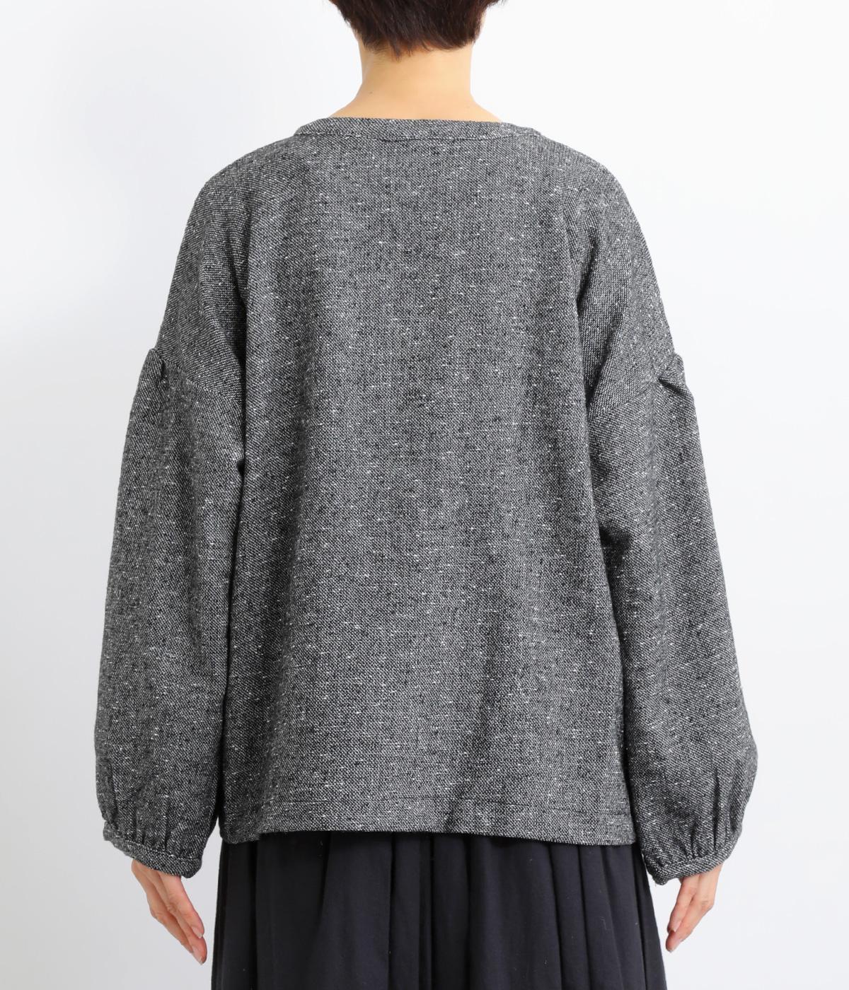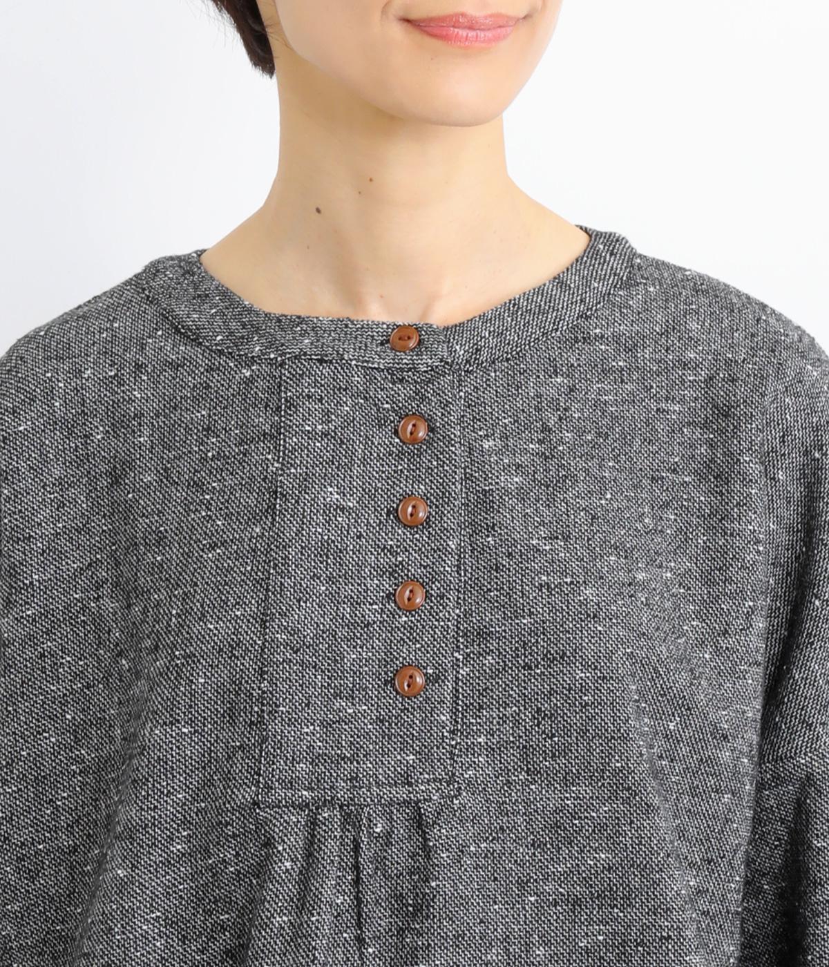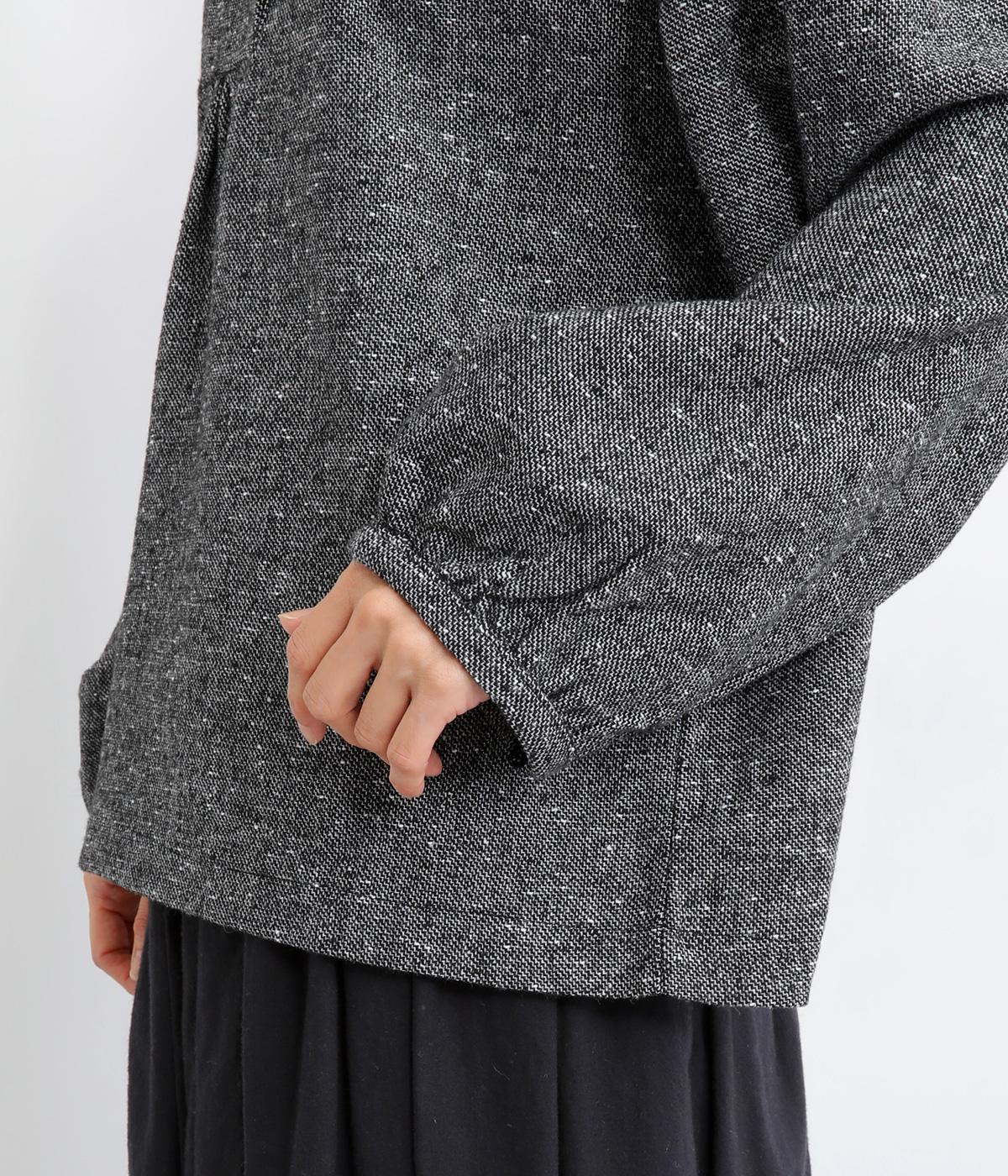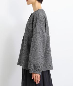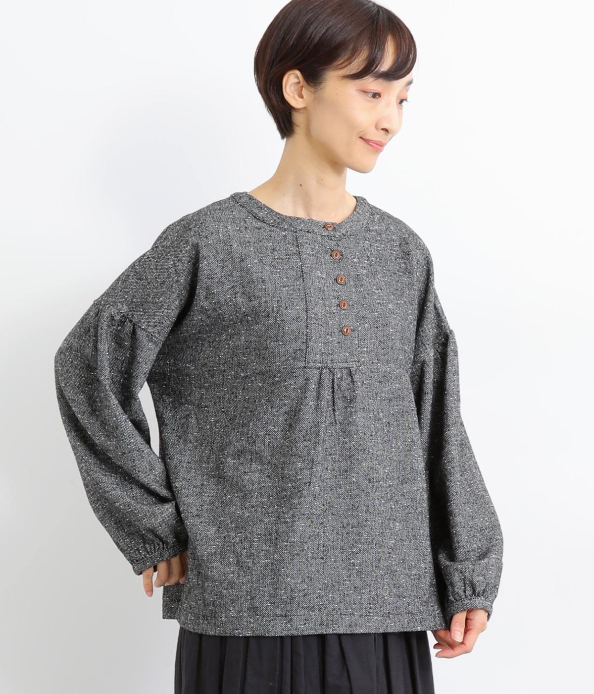 ギャザーを入れふんわりとさせた愛らしい袖と、あたたかみのある生地感がポイントのシャツ。体のラインを拾いにくいゆったりとしたシルエットに仕上げました。ボタンを並べたフロントのデザインもお洒落。視線をアップさせて全体のバランスを整えています。