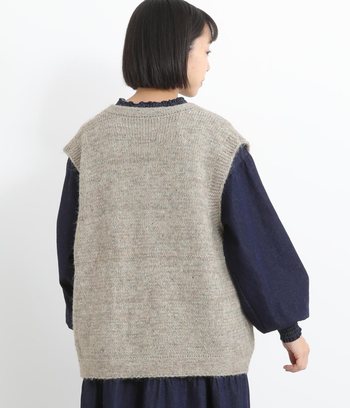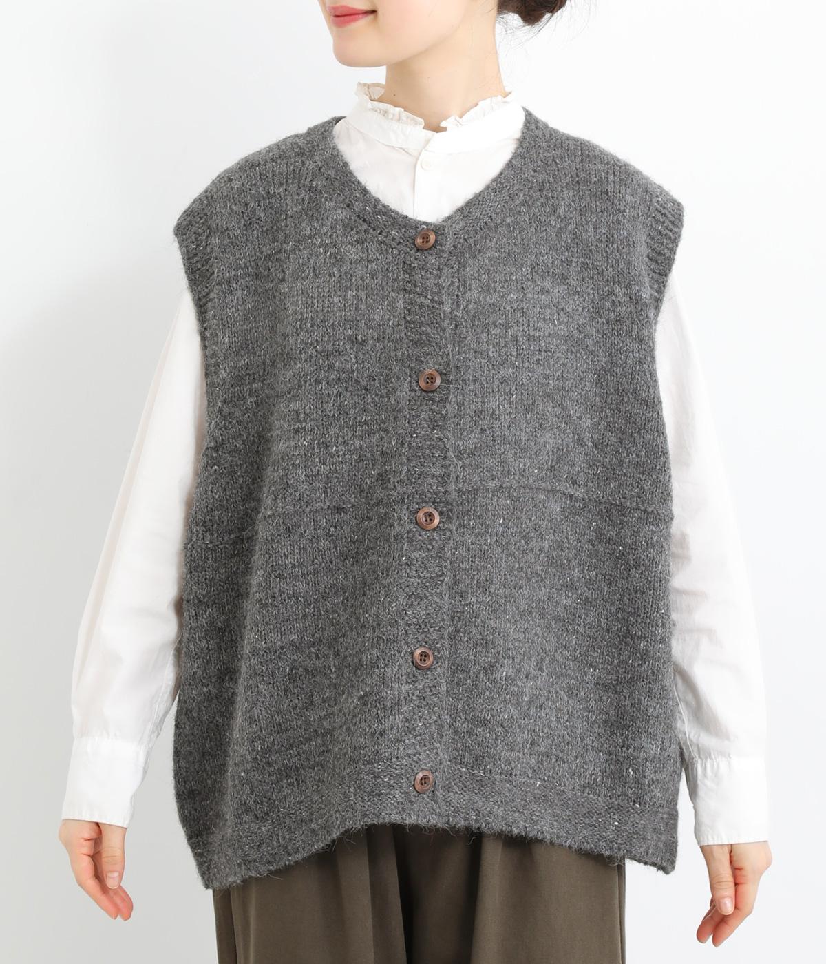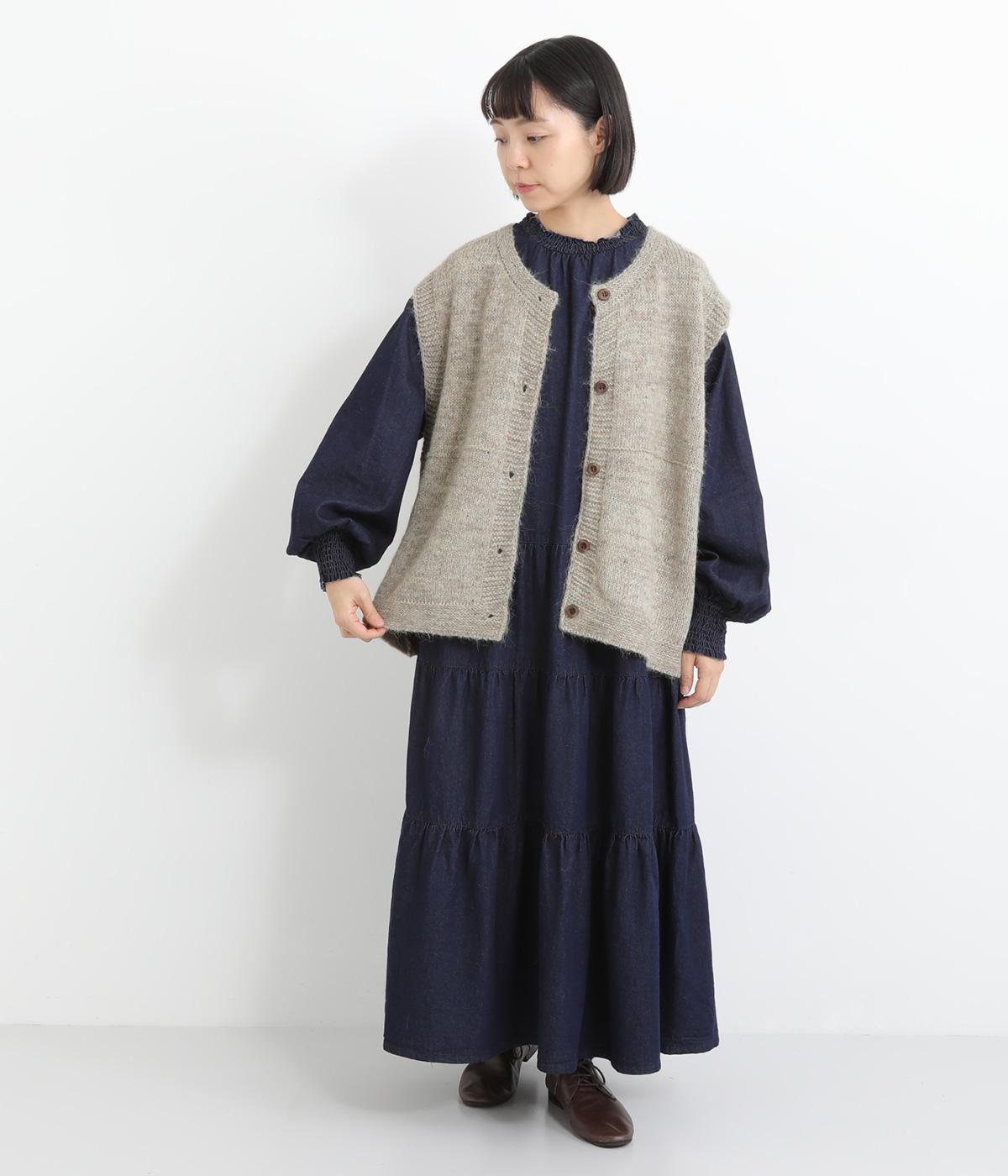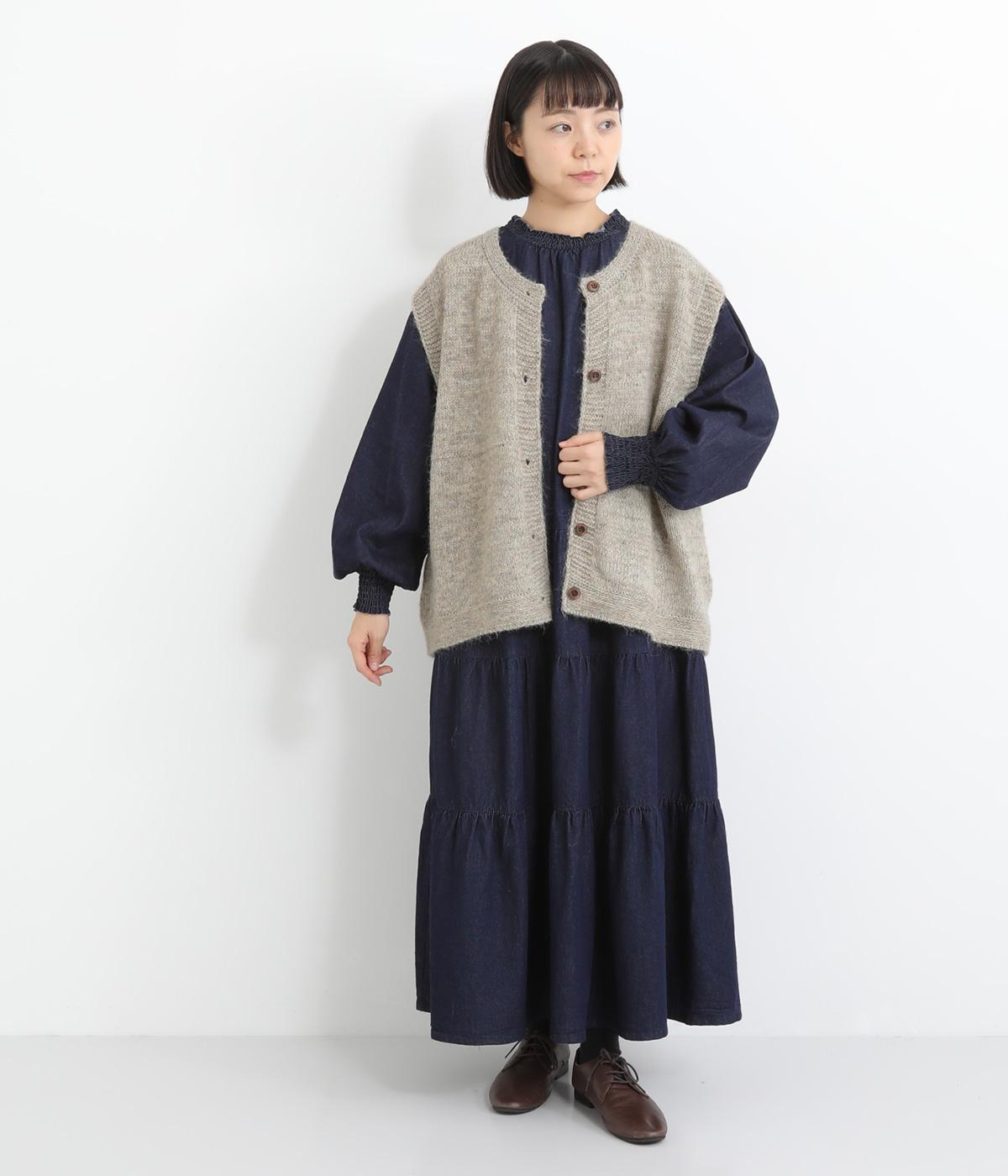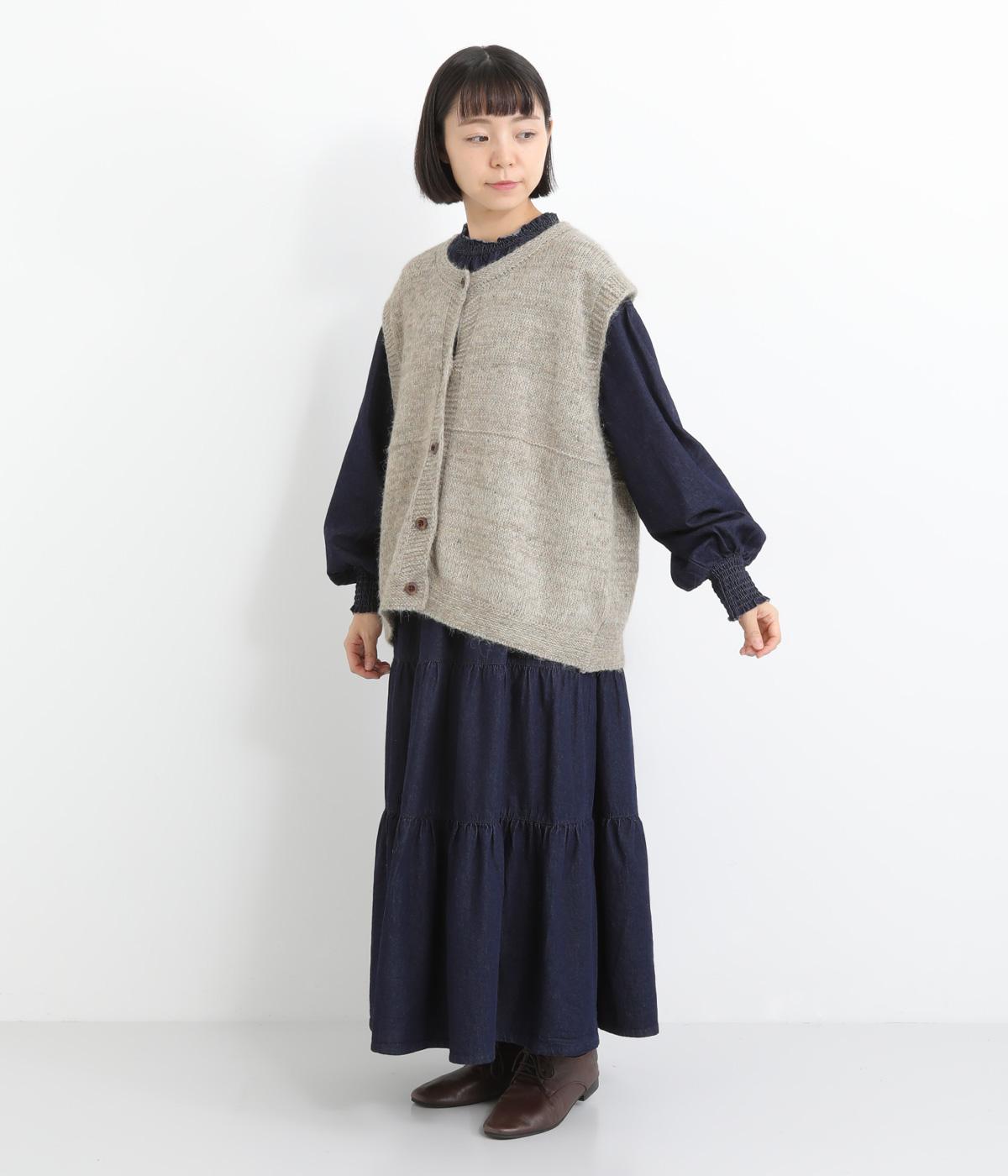 シンプルでストンとしたボックスシルエットがかわいらしいベスト。ゆったりとした首まわりはインナー次第でいろいろなスタイルにアレンジできるのが魅力的です。カジュアルながらも女性らしさを演出してくれる一着です。