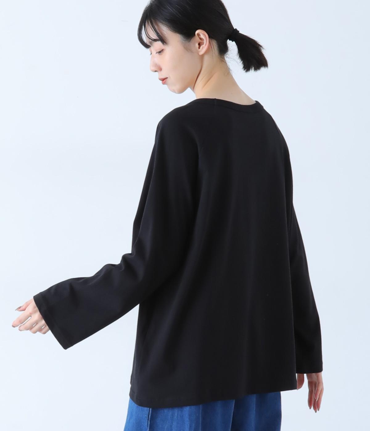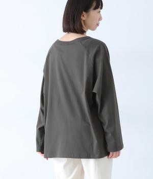 滑らかな肌触りが気持ちいいコットン素材です。襟ぐりはリブを施し、よれにくく着脱しやすい仕様に。一枚でも、レイヤードでも着まわしできる厚みで、重宝します。