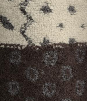 もこもことした表面感がかわいらしいニット生地。ふっくらとした厚みと伸縮性があり、寒い時期にあたたかく快適に着用できます。