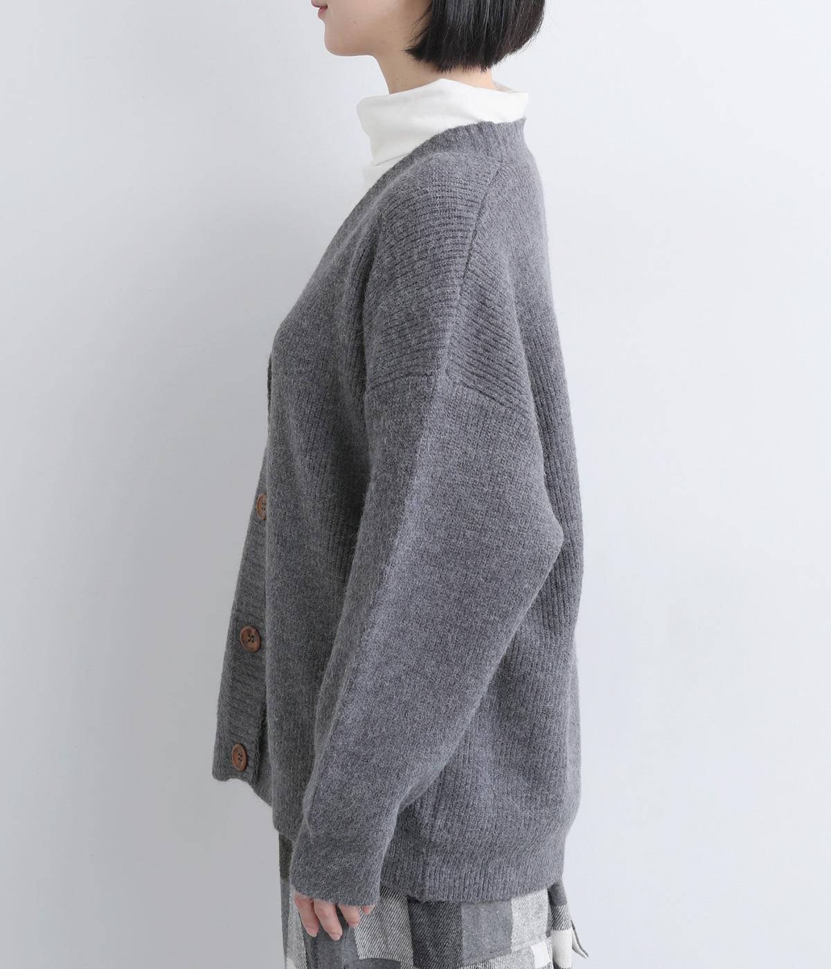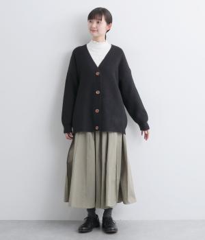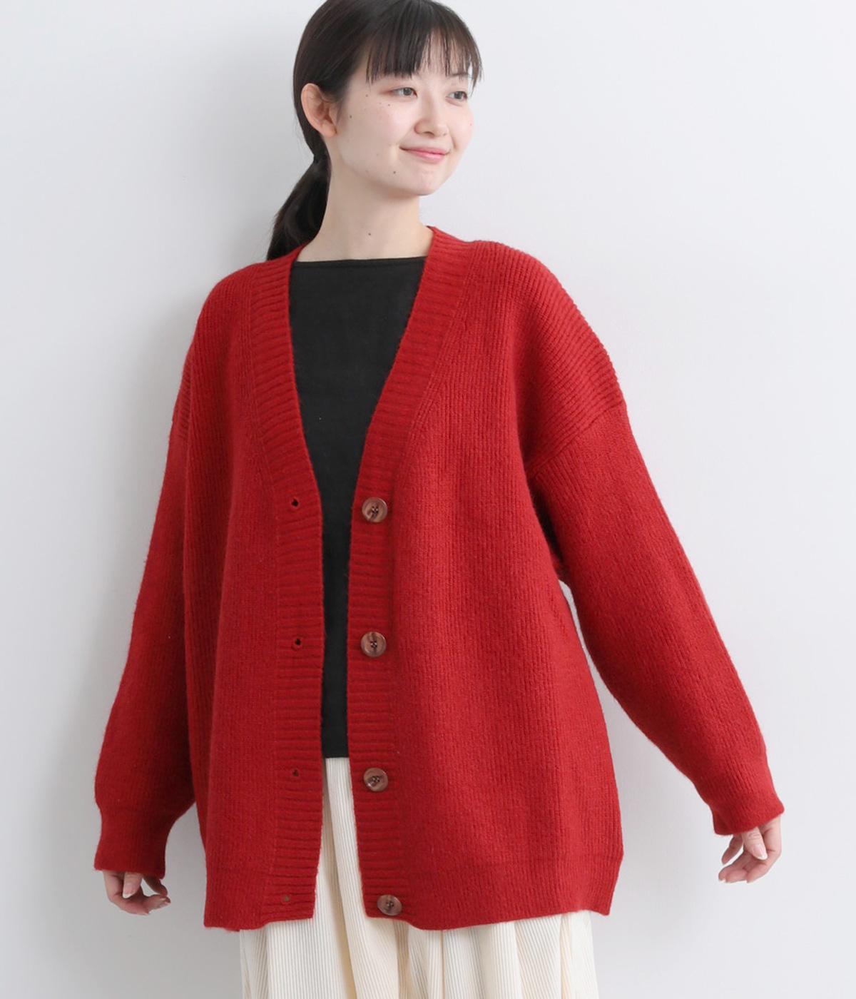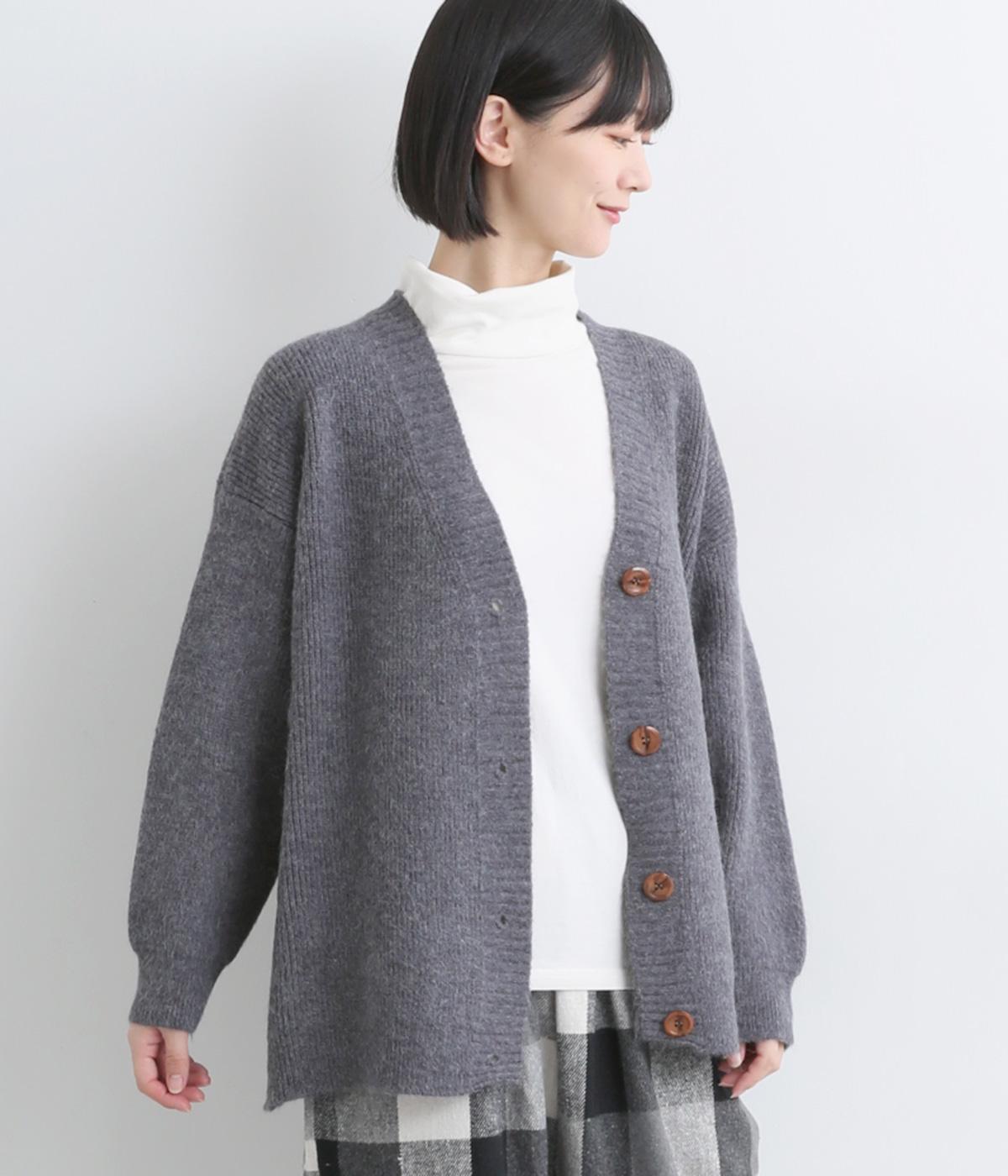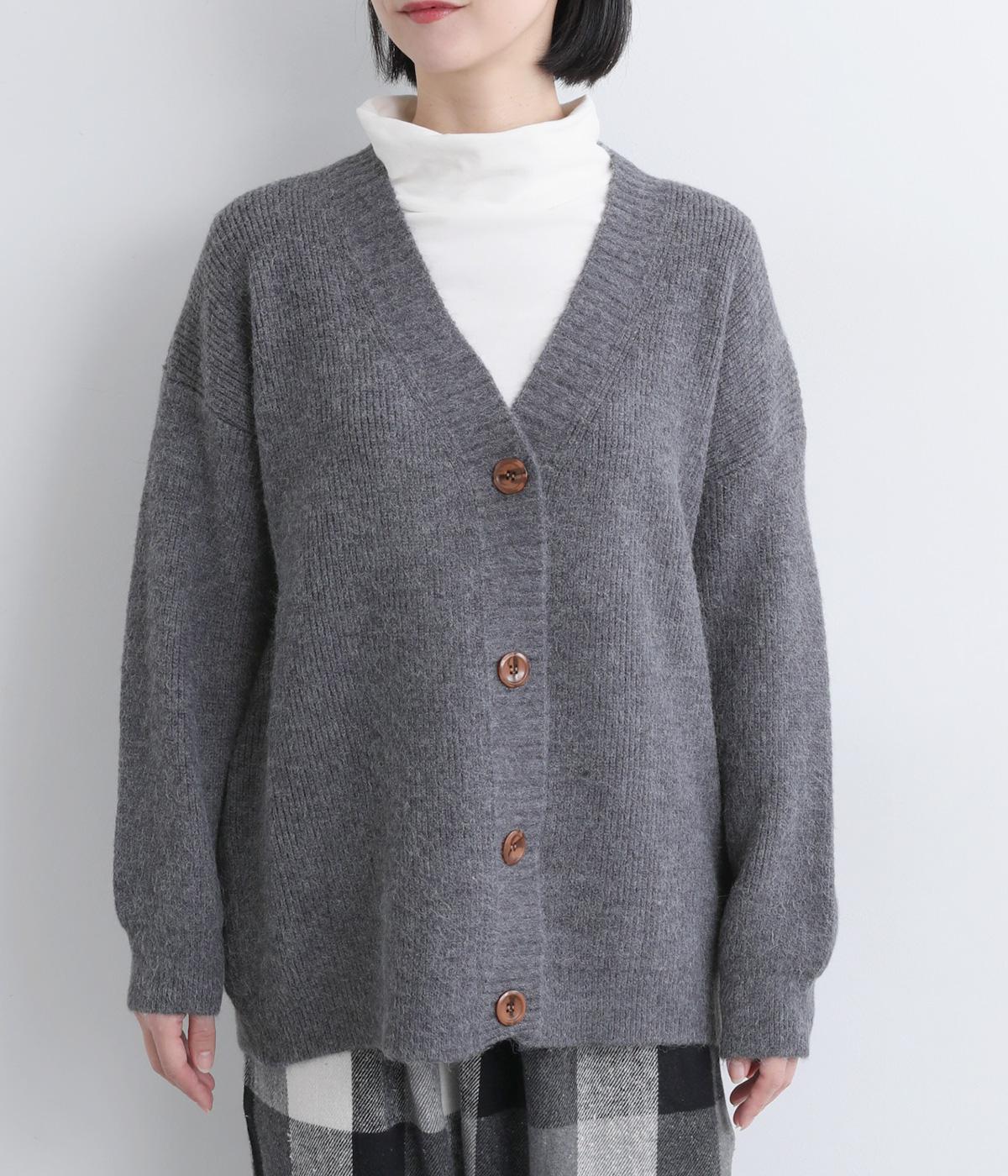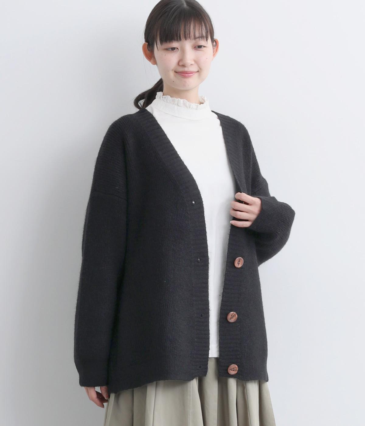 ゆったりとしたシルエットに、太めのリブがアクセントを添えるオーバーカーディガンです。フロントの大きめボタンが存在感を放ち、ナチュラルな印象に仕上げています。首元をすっきりと見せる深めのVネックと、ヒップラインを覆う丈感で、どんな服ともバランスよくレイヤードできる、万能アイテムです。