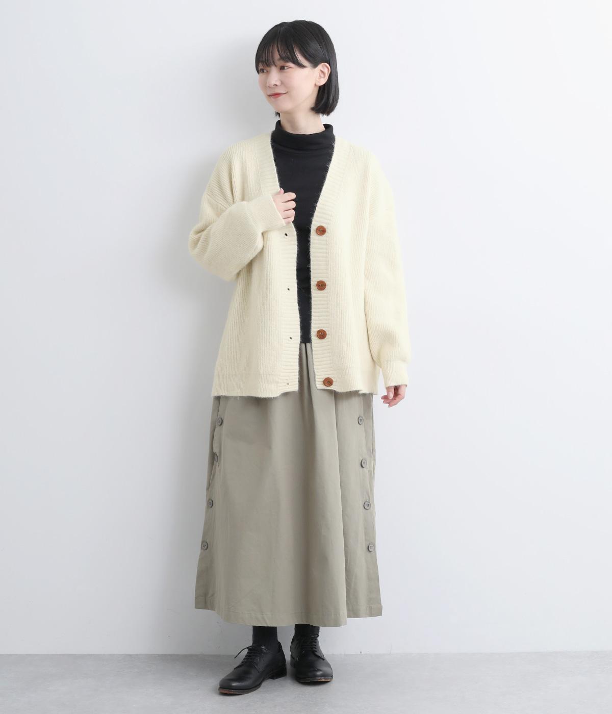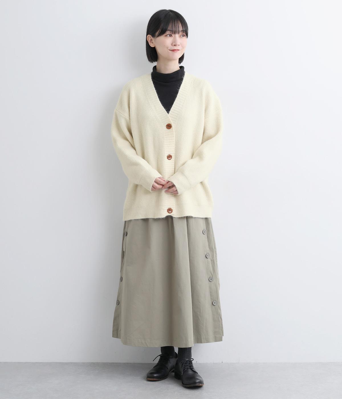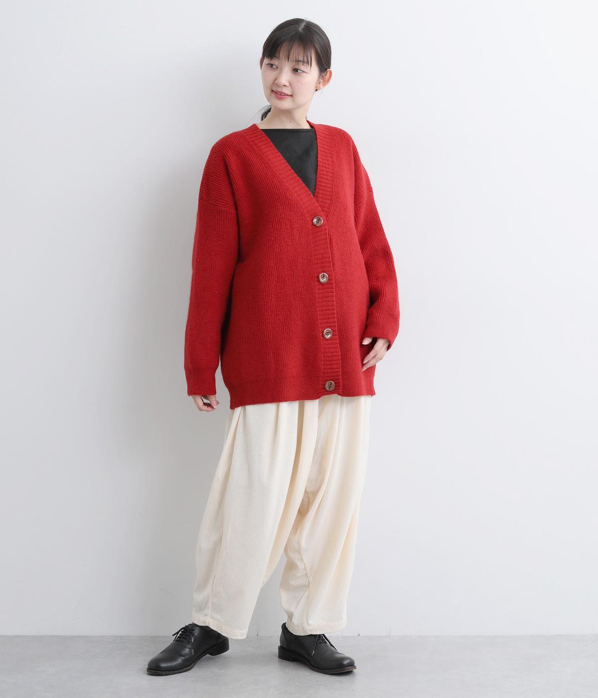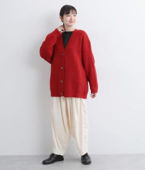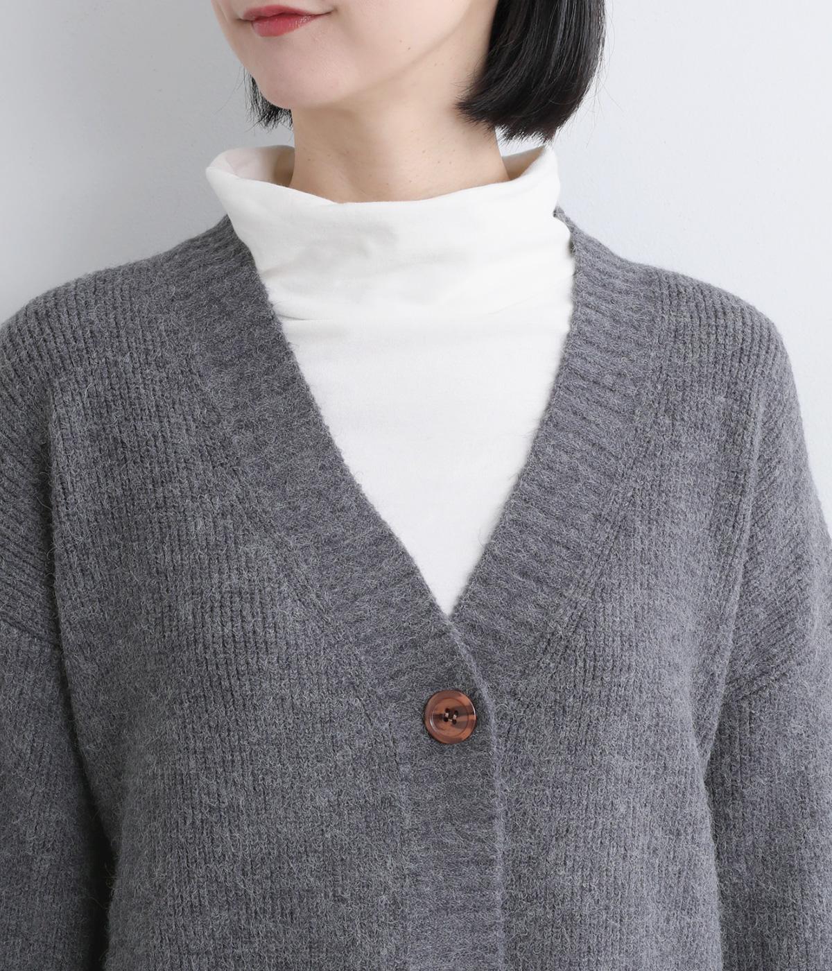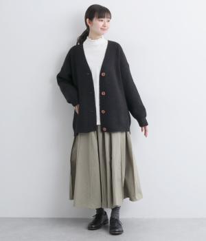 ゆったりとしたシルエットに、太めのリブがアクセントを添えるオーバーカーディガンです。フロントの大きめボタンが存在感を放ち、ナチュラルな印象に仕上げています。首元をすっきりと見せる深めのVネックと、ヒップラインを覆う丈感で、どんな服ともバランスよくレイヤードできる、万能アイテムです。