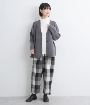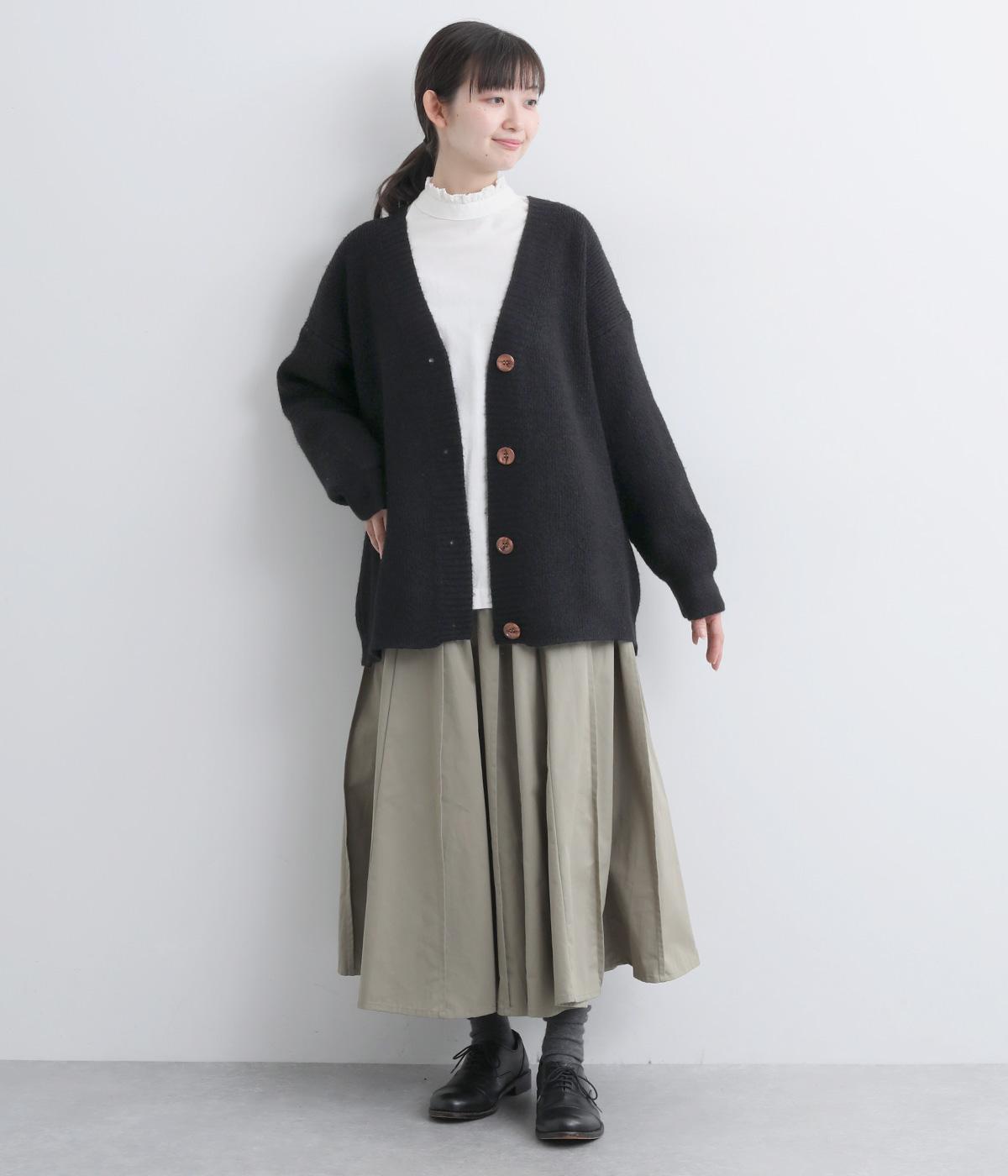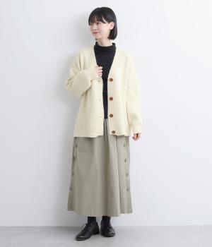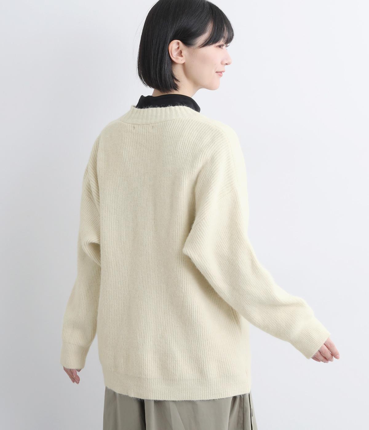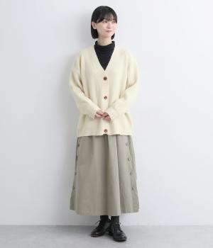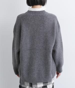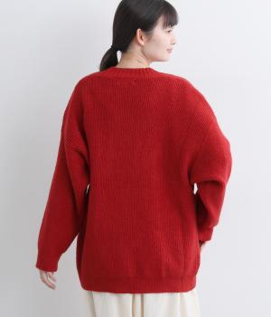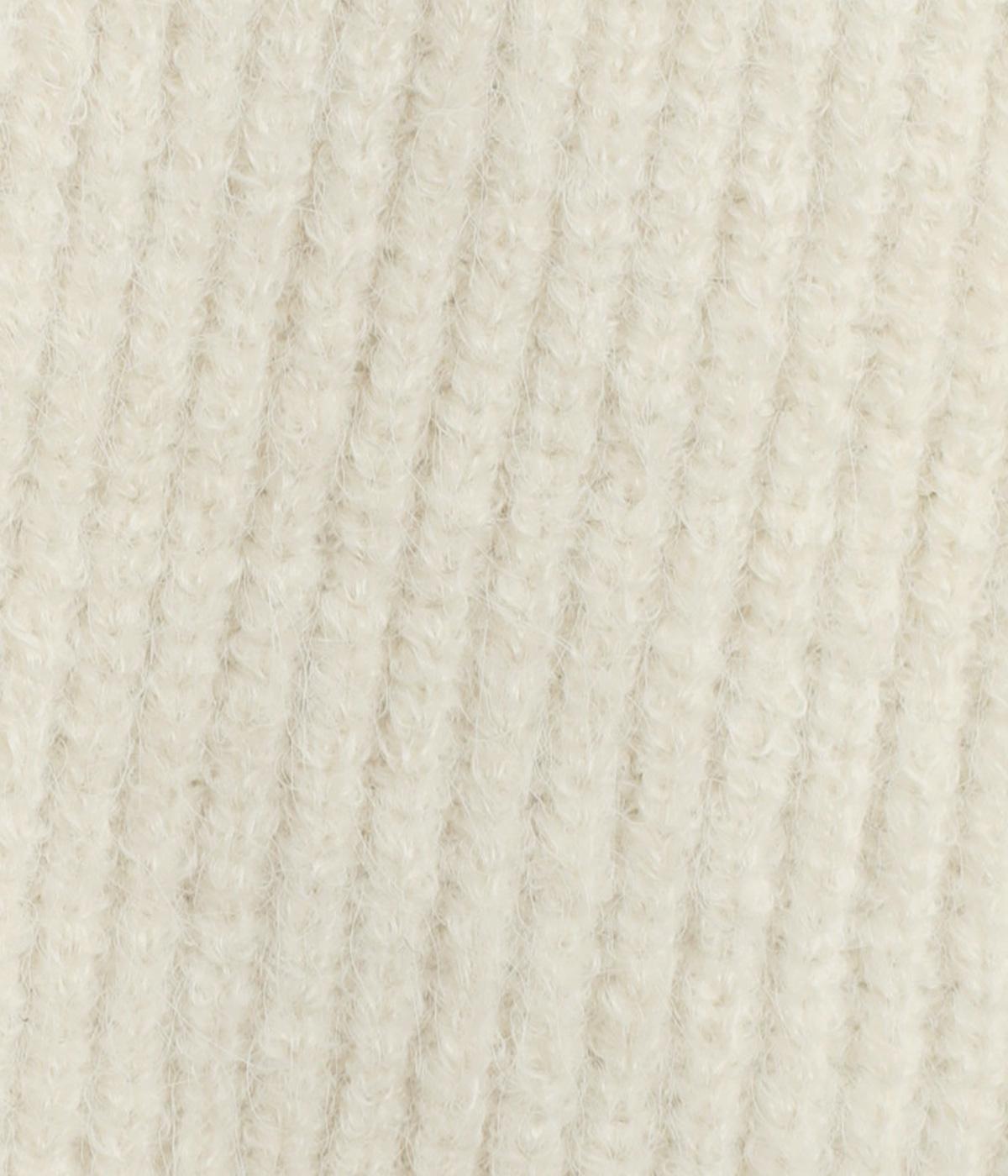 ふんわりと空気をふくんだようなやわらかい風合いのニット素材です。ソフトな肌触りでチクチクしにくく、軽やかな着心地です。ほどよく肉厚で、やさしい起毛感が見た目にもあたたかみを添えます。