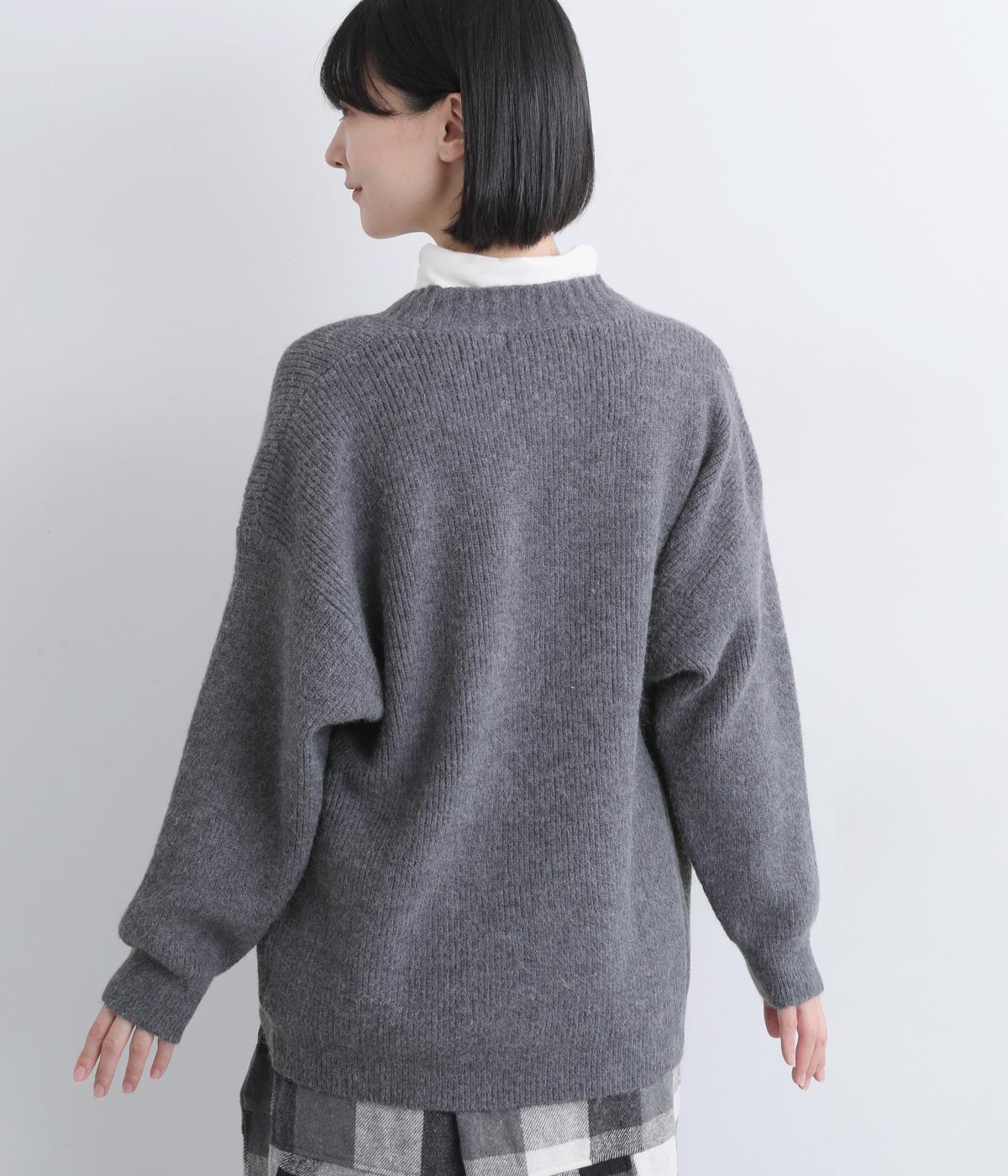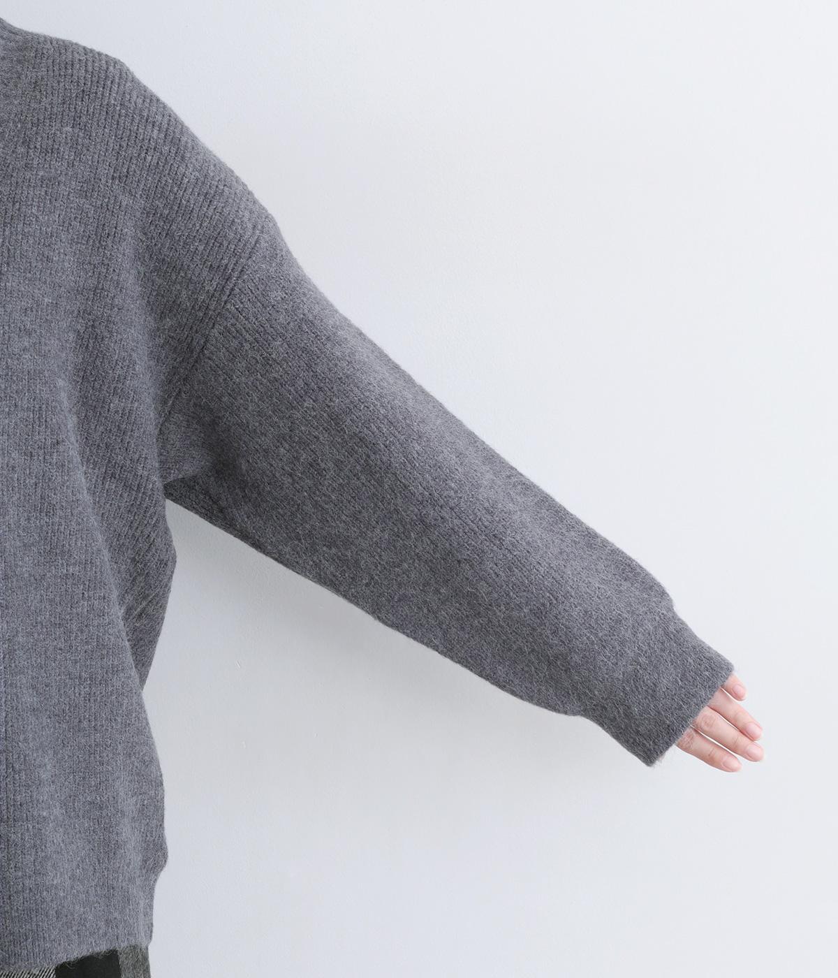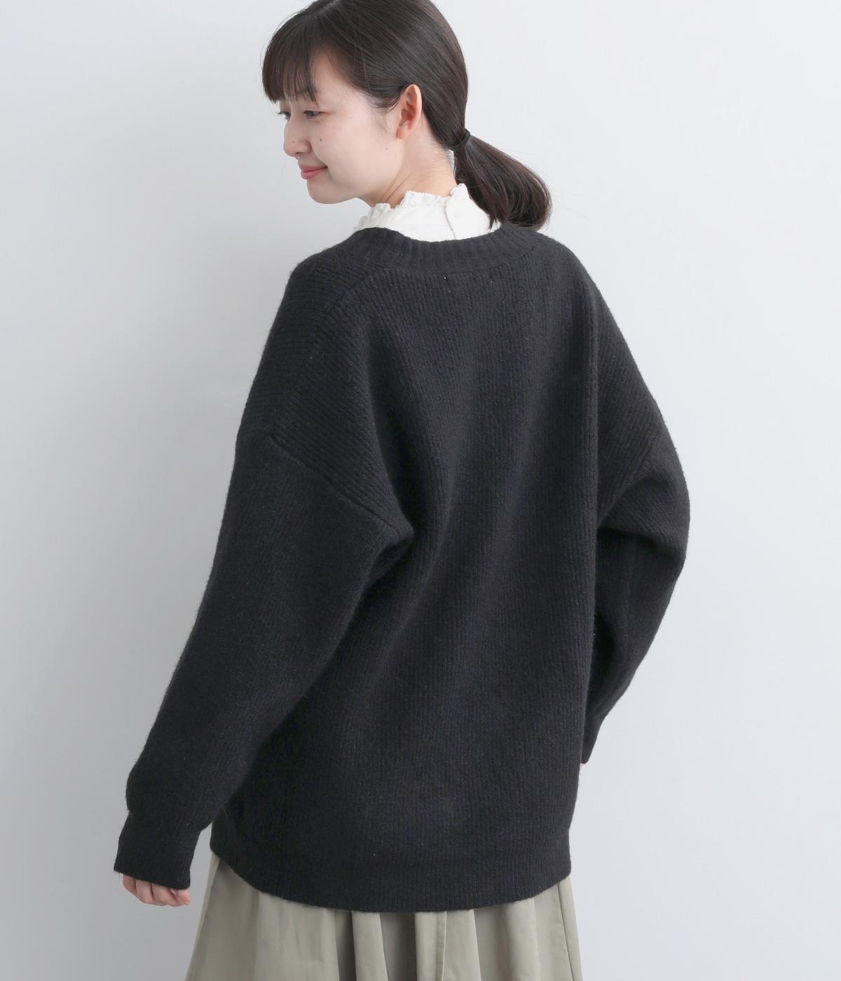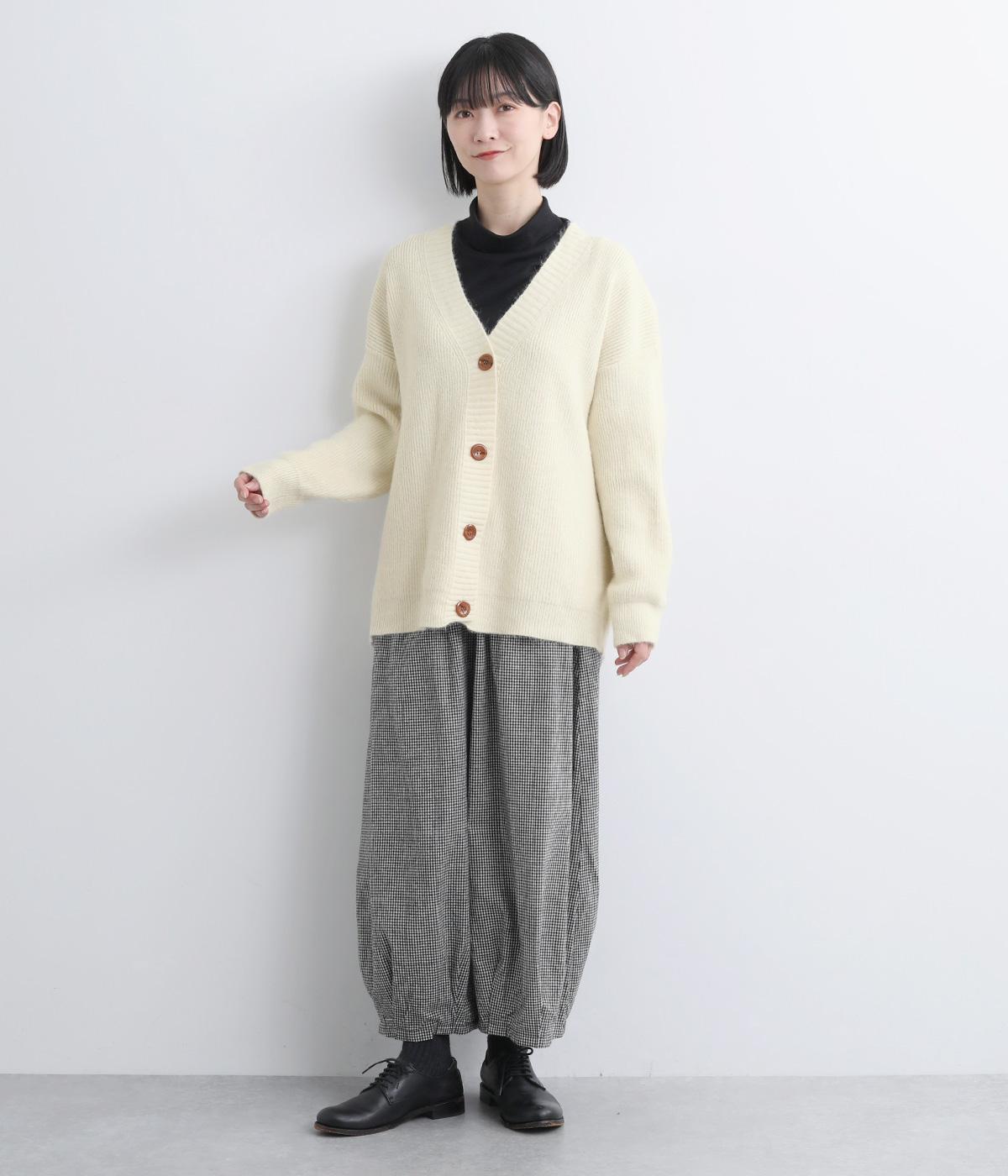 ふんわりと空気をふくんだようなやわらかい風合いのニット素材です。ソフトな肌触りでチクチクしにくく、軽やかな着心地です。ほどよく肉厚で、やさしい起毛感が見た目にもあたたかみを添えます。