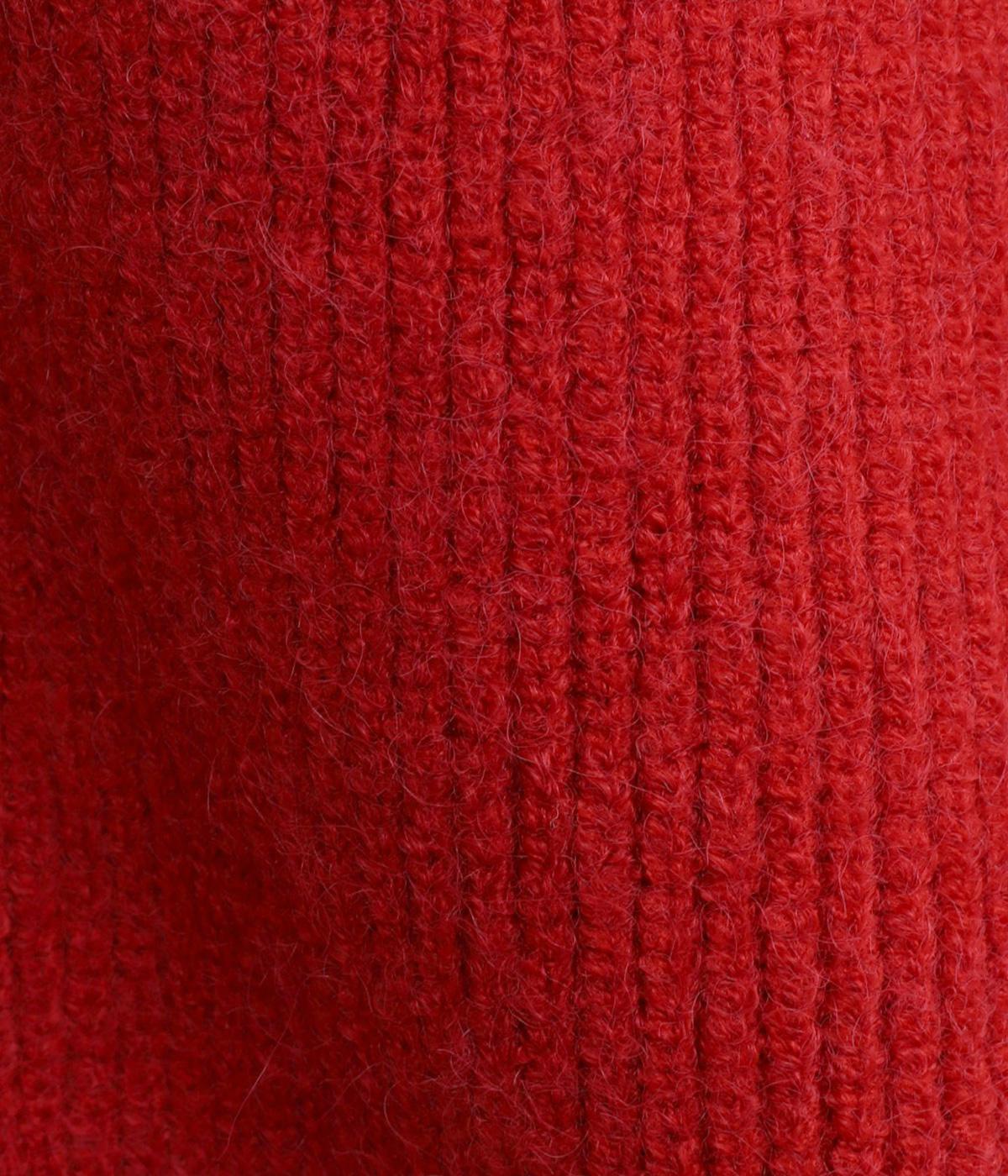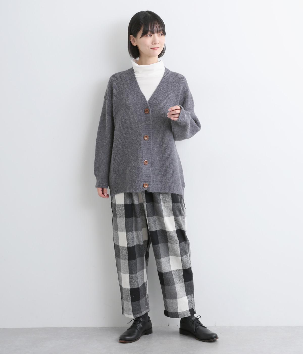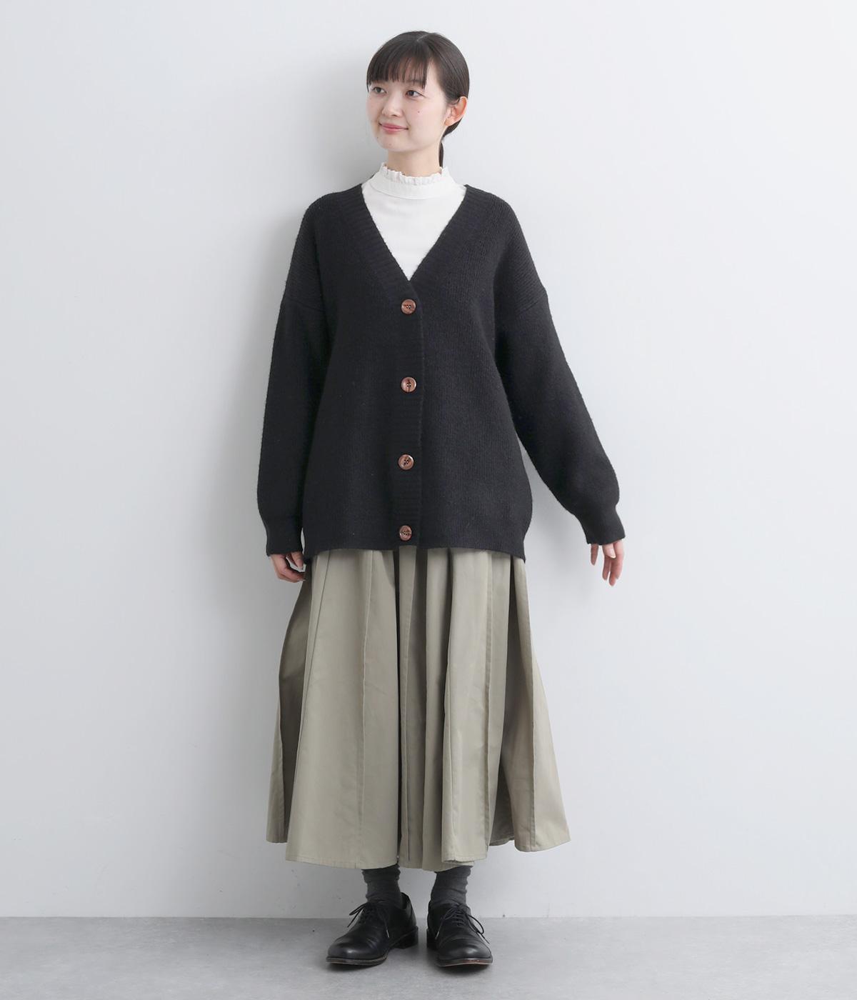 ふんわりと空気をふくんだようなやわらかい風合いのニット素材です。ソフトな肌触りでチクチクしにくく、軽やかな着心地です。ほどよく肉厚で、やさしい起毛感が見た目にもあたたかみを添えます。