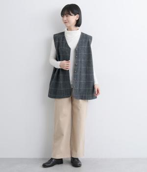 やわらかでしなやかな風合いが魅力のウール混素材を使用しました。ふんわりと空気をふくむような軽い着心地で、見た目にもぬくもりを感じさせます。ポリエステルをブレンドすることで、シワになりにくいのもうれしいポイント。