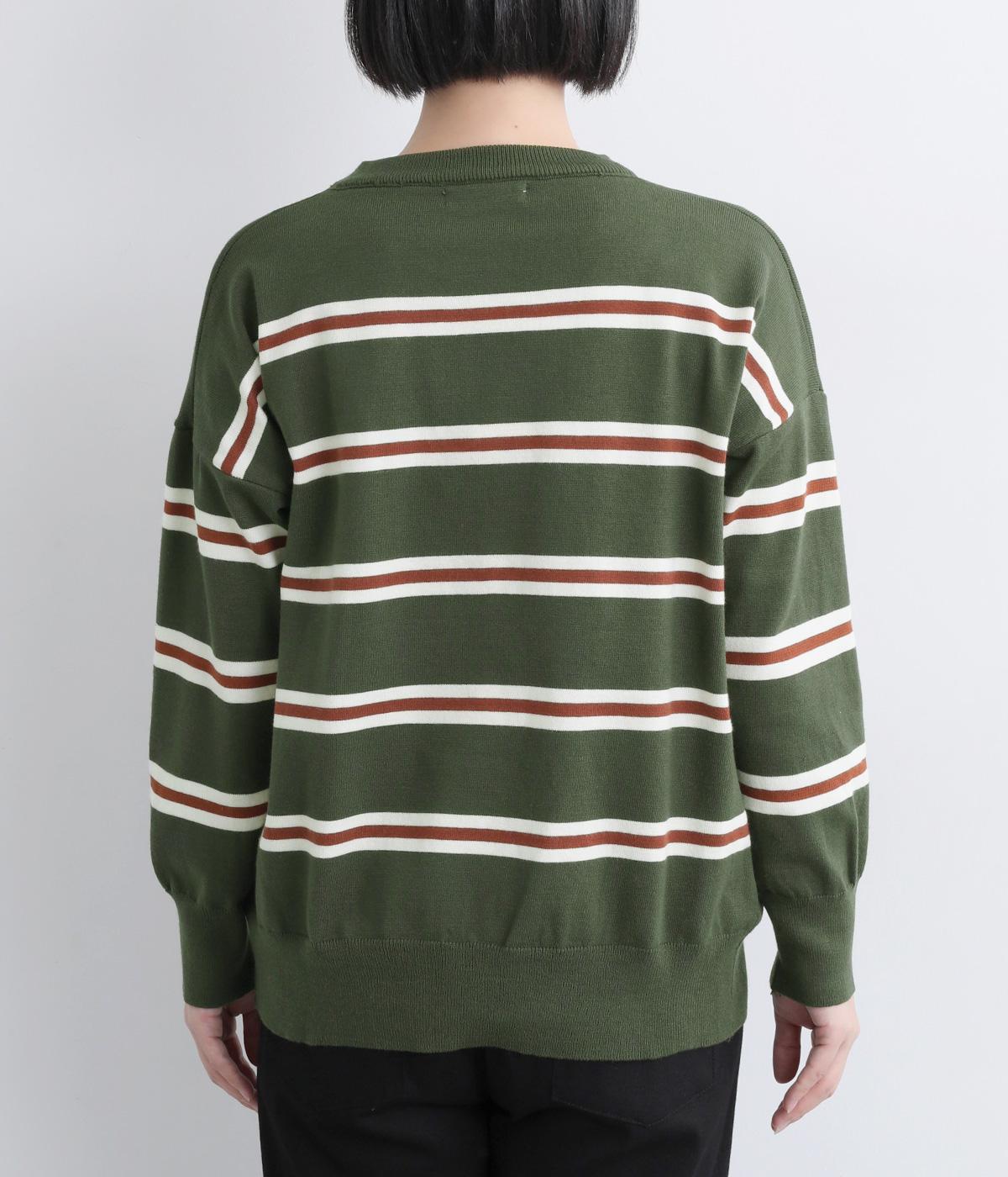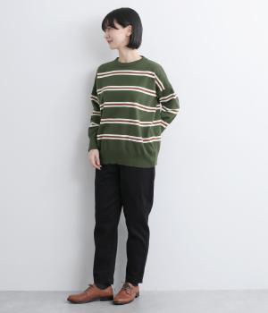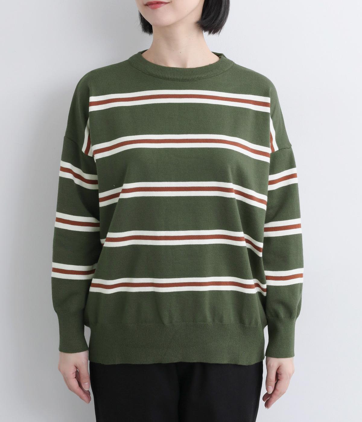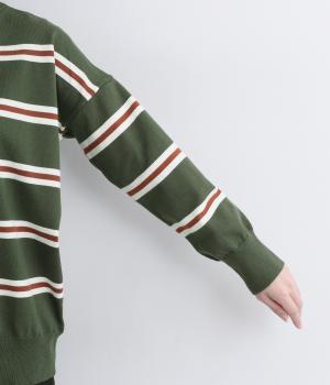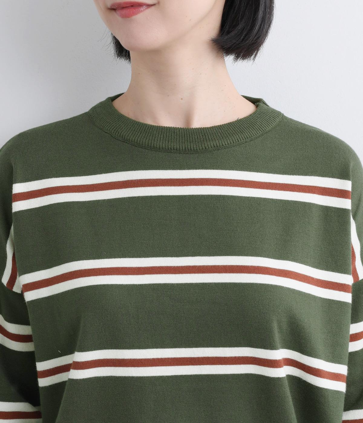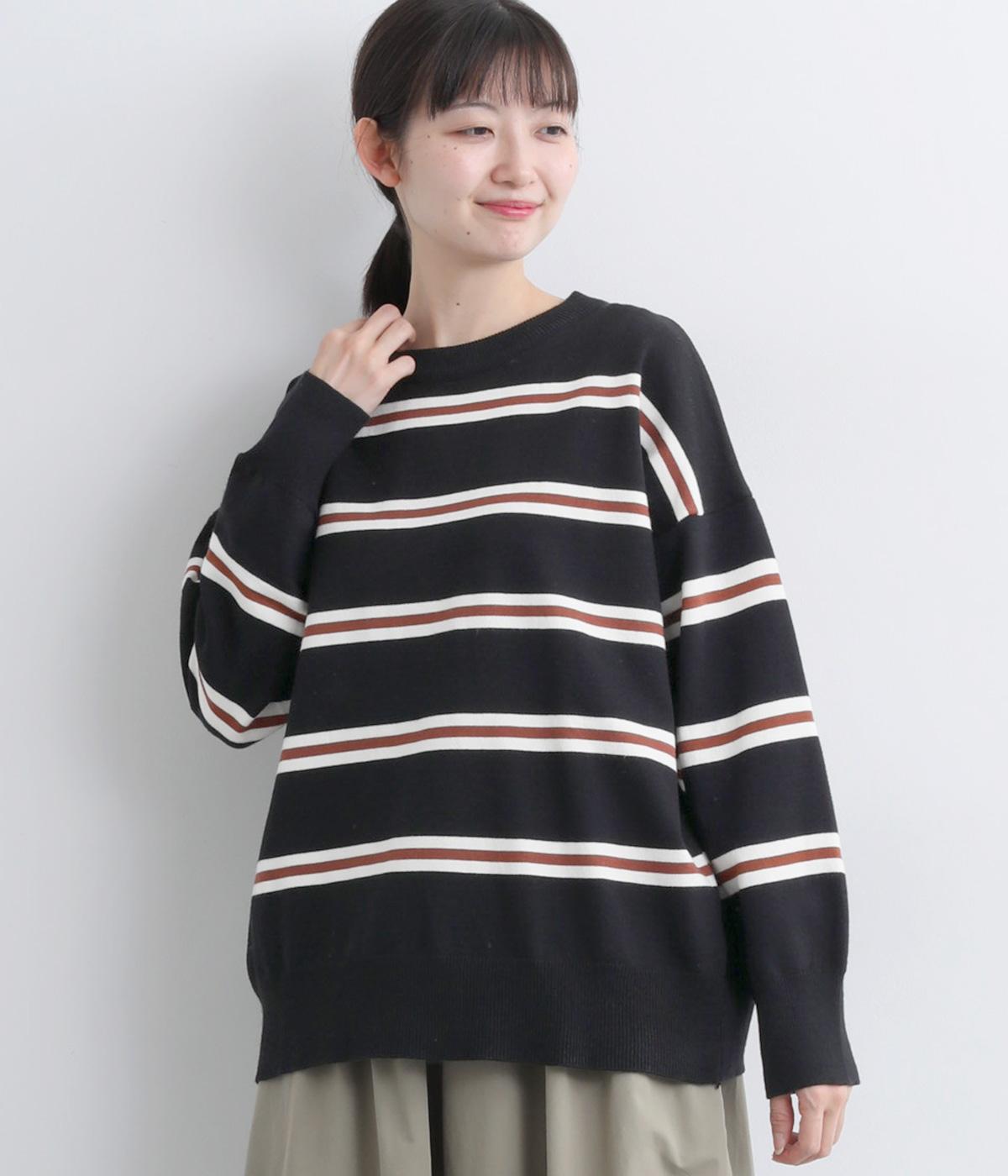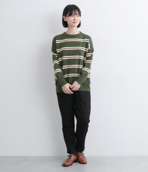 ボーダー柄が映えるシンプルなデザインに、肩落ちのシルエットで抜け感をプラスしました。首元はあきすぎないクルーネックなので、上品な着こなしがかないます。シンプルなのに表情があり、デイリーにもきれいめにも合わせやすい一枚です。