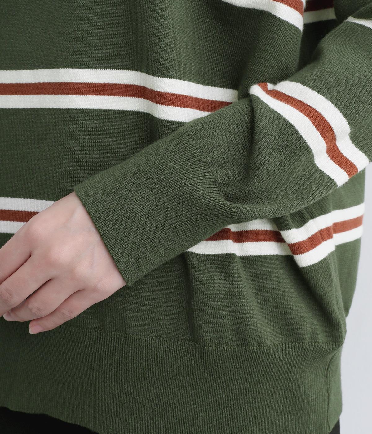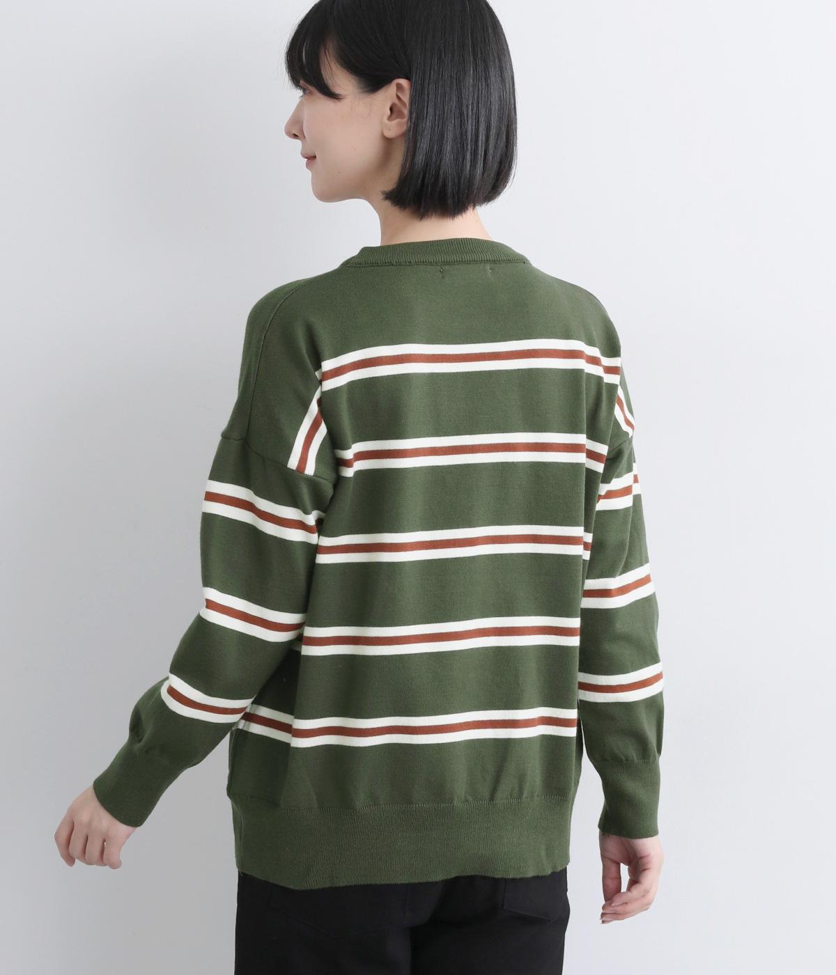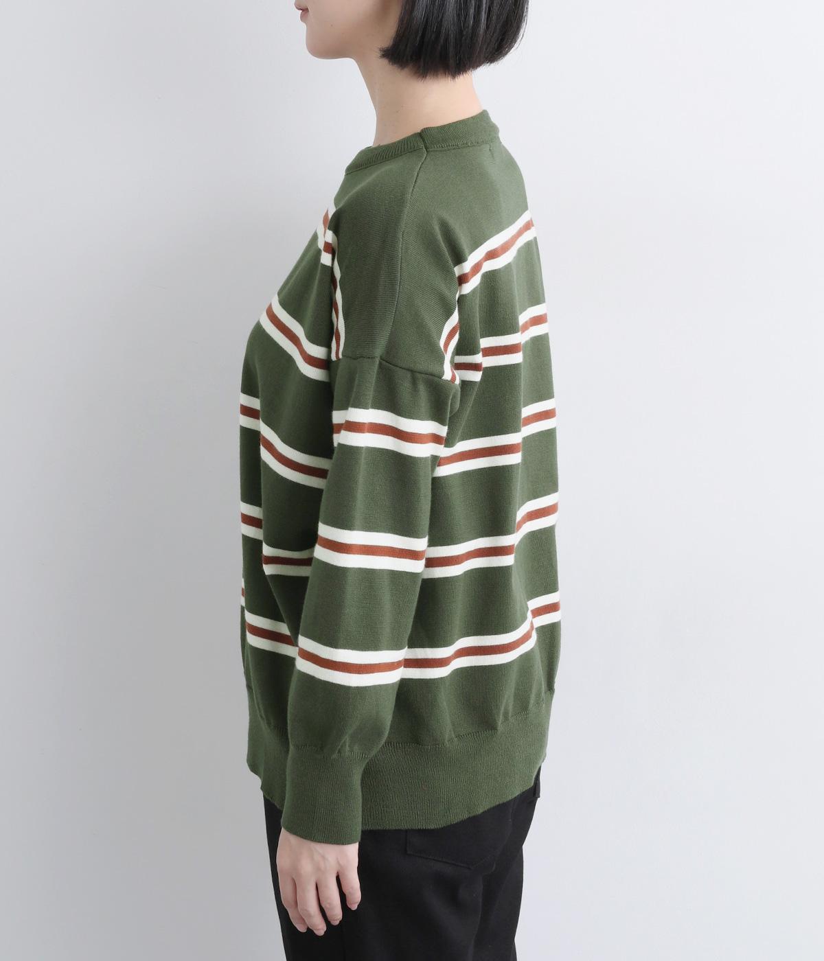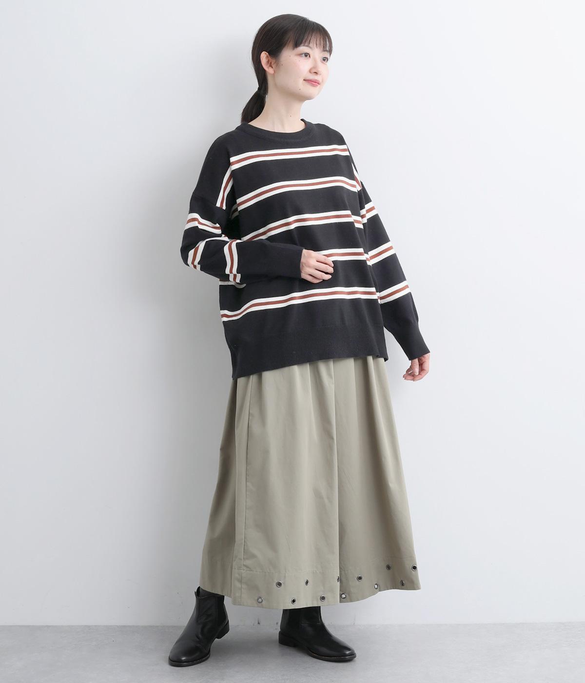 ボーダー柄が映えるシンプルなデザインに、肩落ちのシルエットで抜け感をプラスしました。首元はあきすぎないクルーネックなので、上品な着こなしがかないます。シンプルなのに表情があり、デイリーにもきれいめにも合わせやすい一枚です。