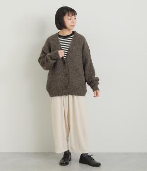 ゆったりとしたBIGシルエットに大きめボタンがリラクシー&メンズライクなカーディガン。ふわふわとしたニットがやさしい印象をはらみ、スタイリングに独特のゆるい空気感を運びます。中に着込みやすく防寒力も◎。