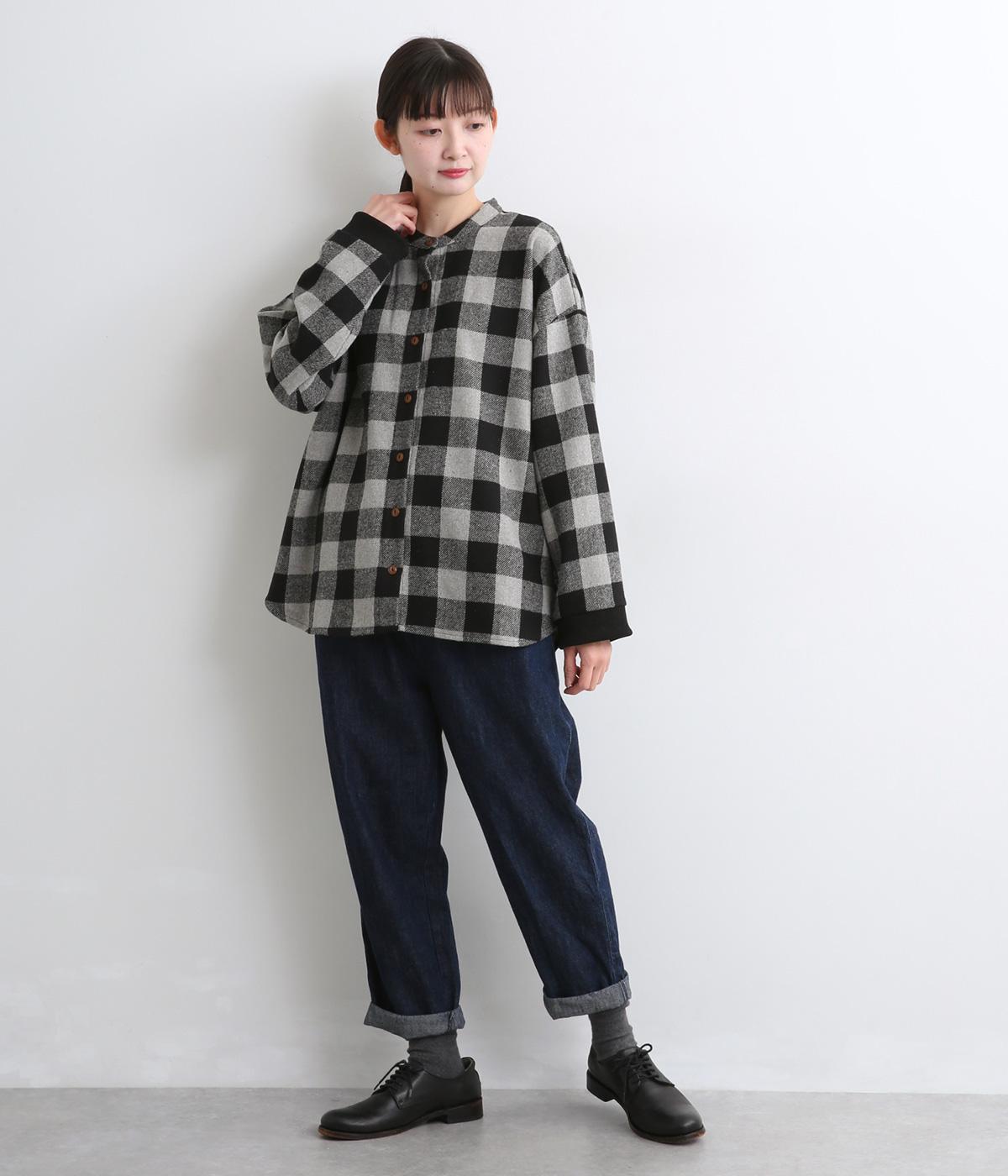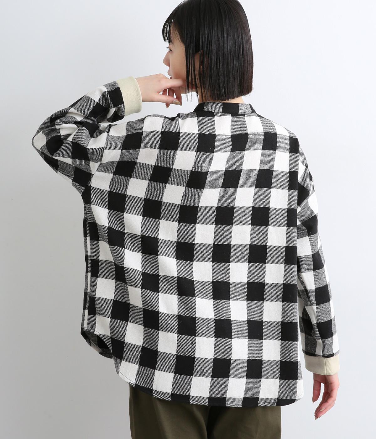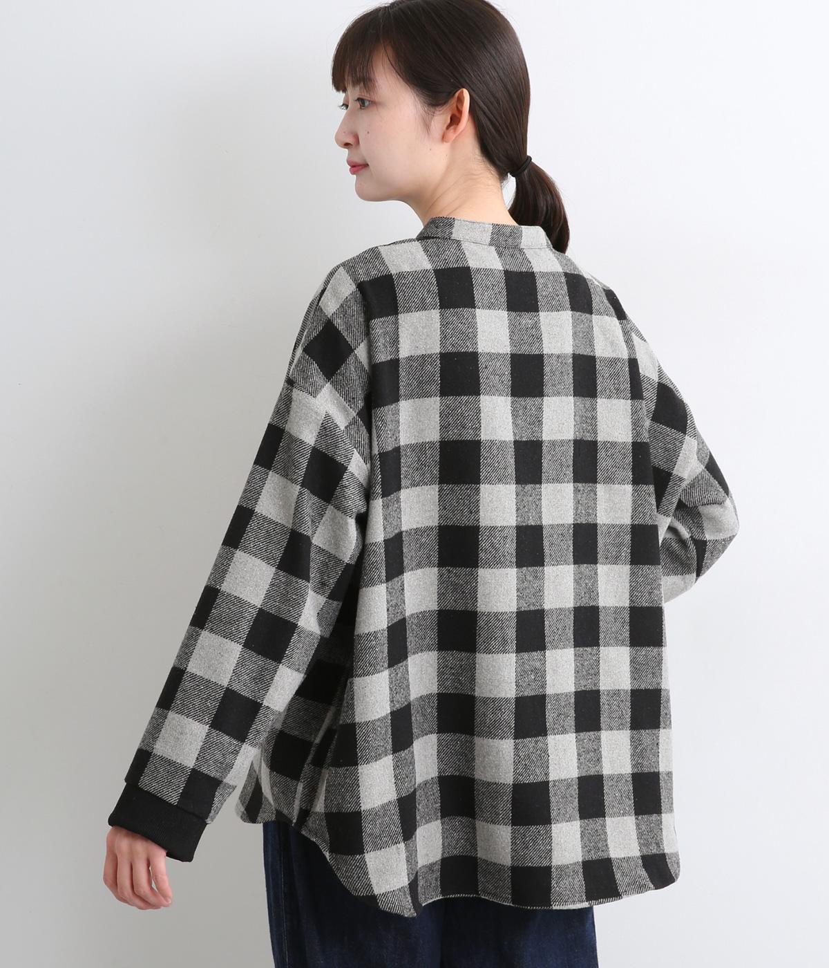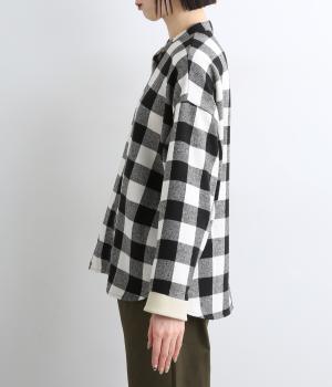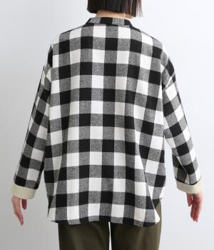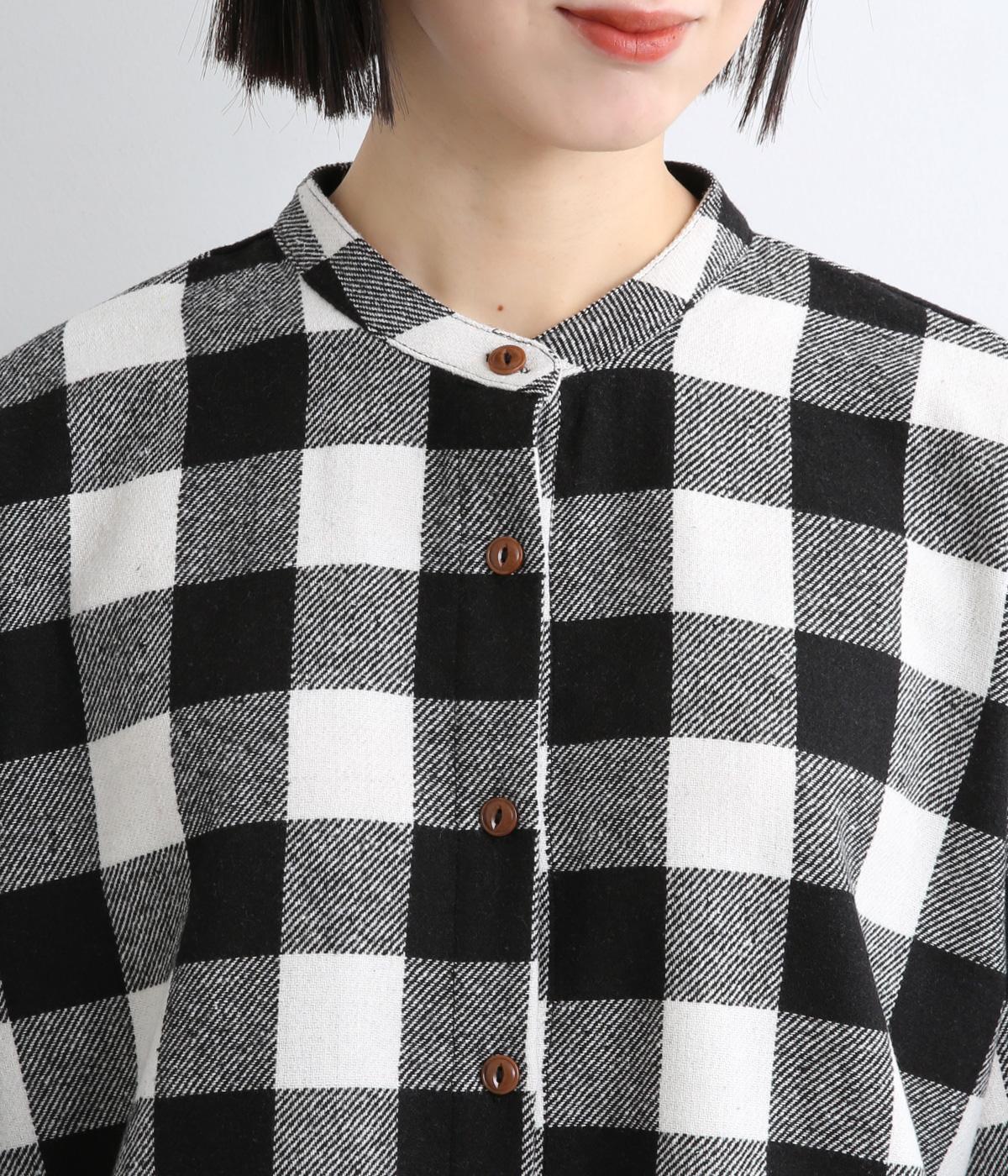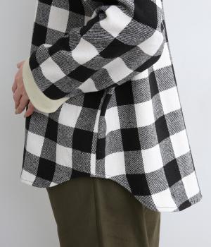 インパクトのあるブロックチェックをバンドカラーと袖口のリブでバランスよくまとめました。丸みのあるラインを描く裾もさりげなく女性らしさをプラスしています。ゆったりとリラックス感のある着心地です。