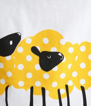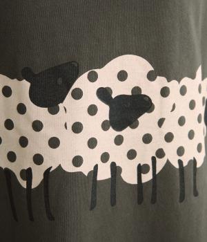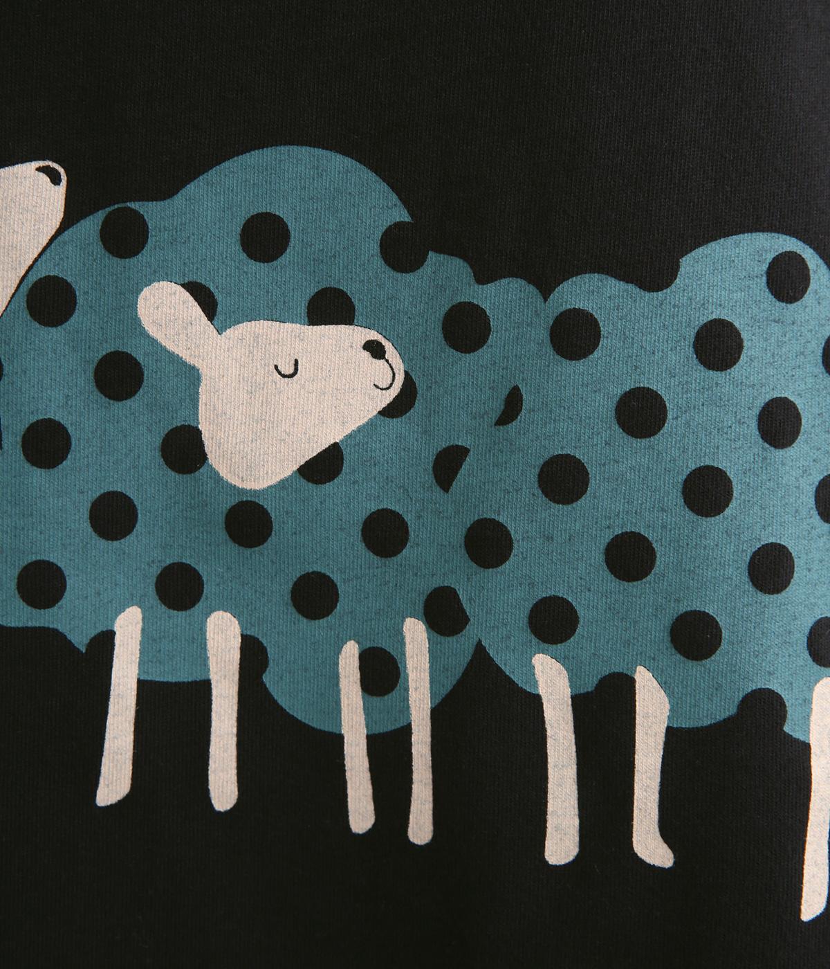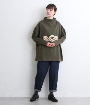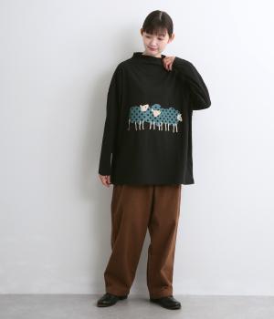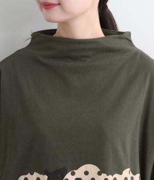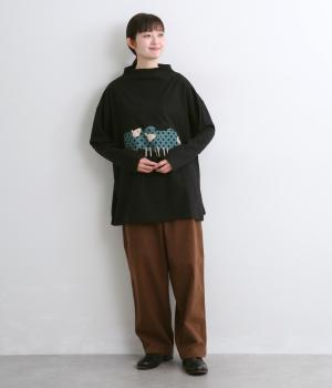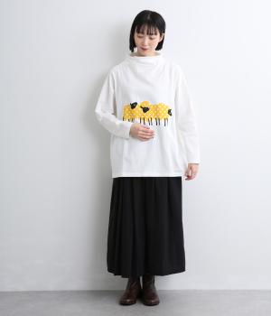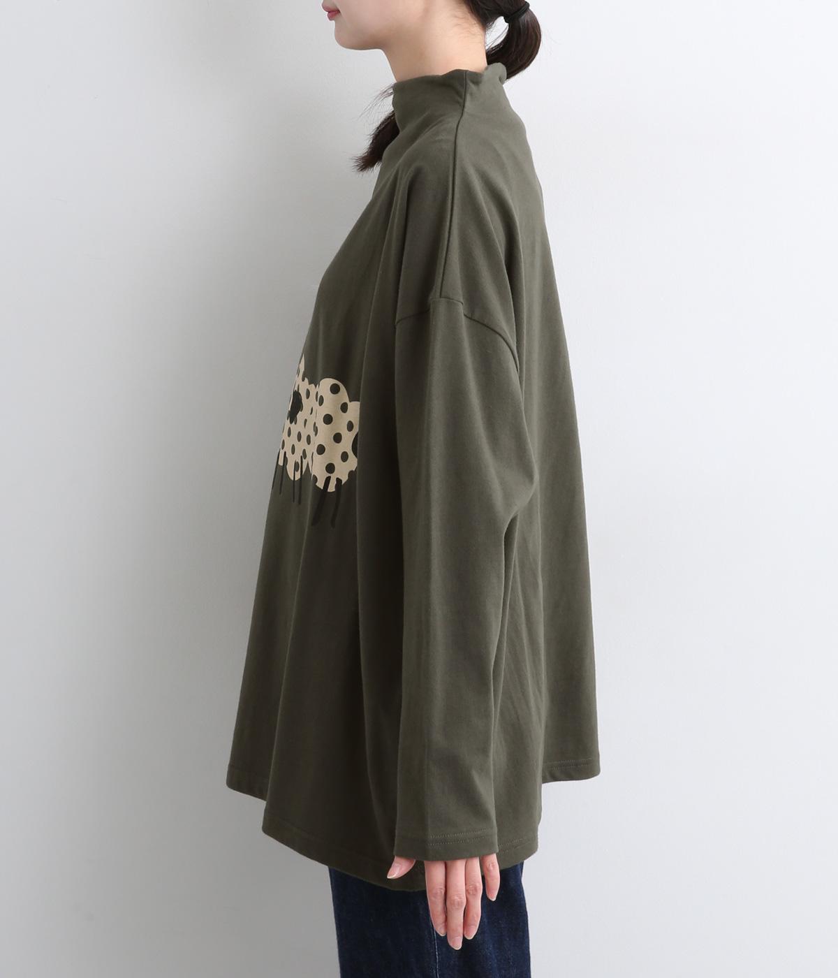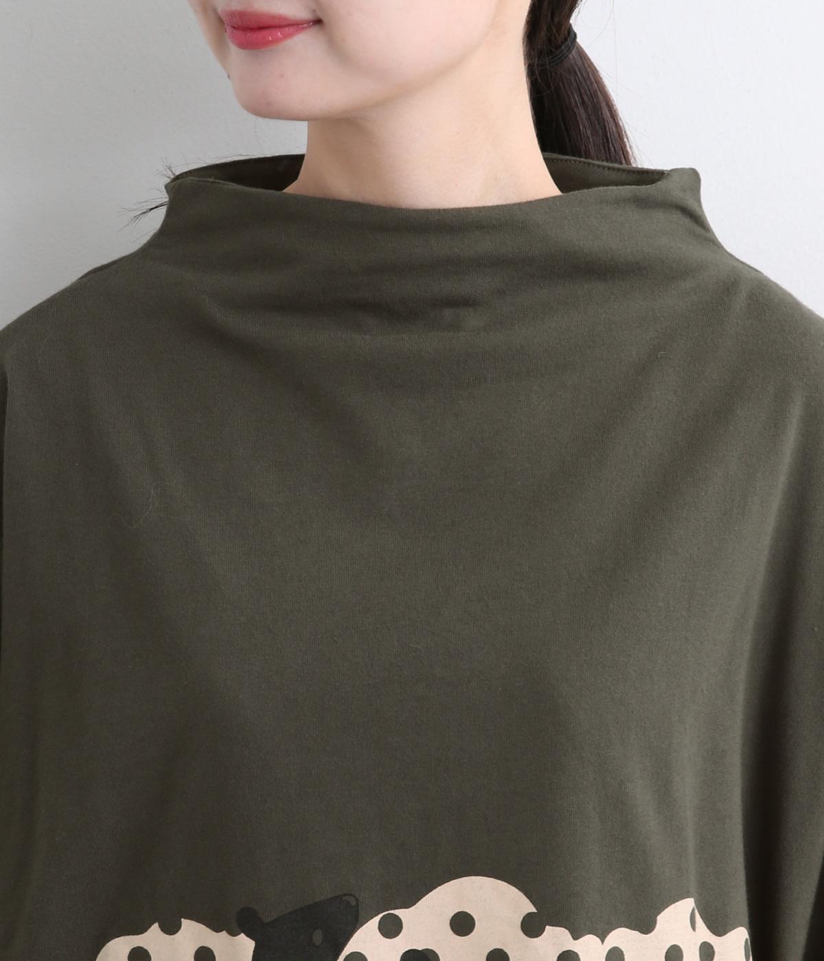 ドット柄の羊たちがインパクトを放ちます。緩やかなモックネックとゆとりのある身幅でリラックス感のある着心地です。腰回りをカバーする長めの丈もうれしいポイント。パンツスタイルにもスカートにもなじみます。