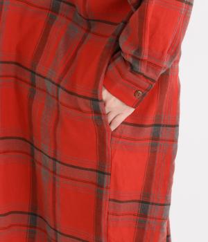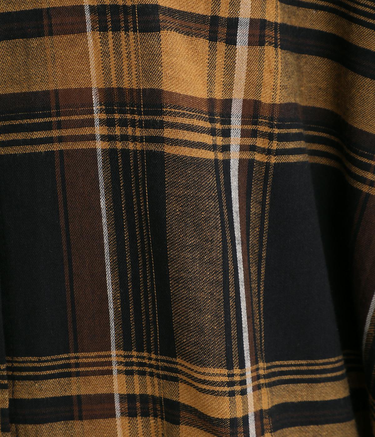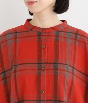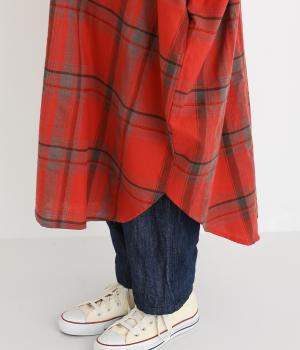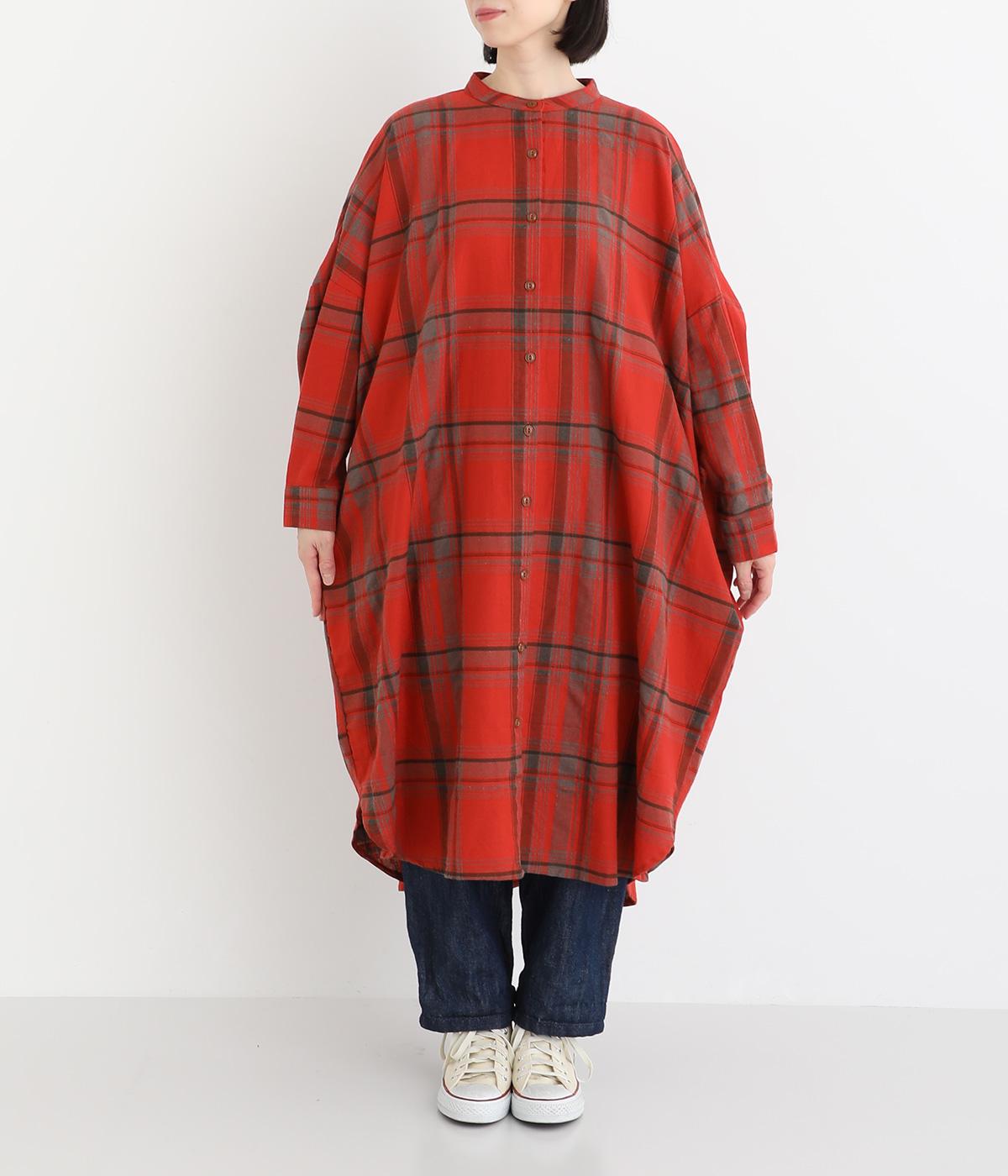 ふっくらとした控えめな起毛感のある、やわらかな風合いと心地よい肌触りが魅力のコットン生地で仕立てています。コーディネートのアクセントになる大きめのチェック柄をあしらいました。