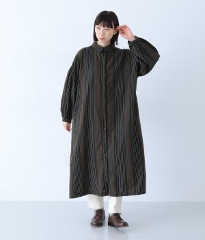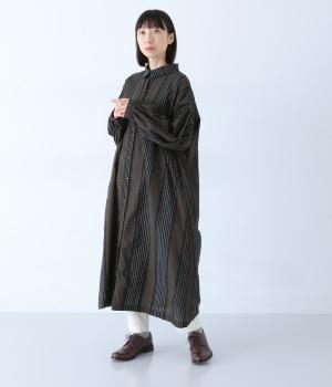 身幅たっぷりのワイドなシルエットが魅力のワンピース。切り替えの縦ラインが、全体のバランスをすっきりと引きしめます。前をあけて羽織ったり、ニットベストなどを重ねたり、多彩なコーディネートに活躍します。