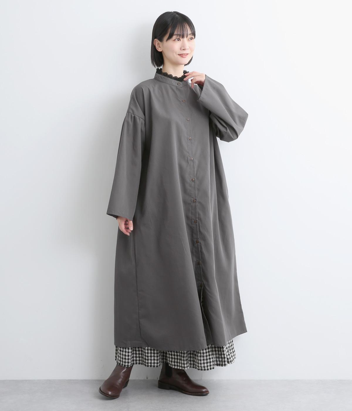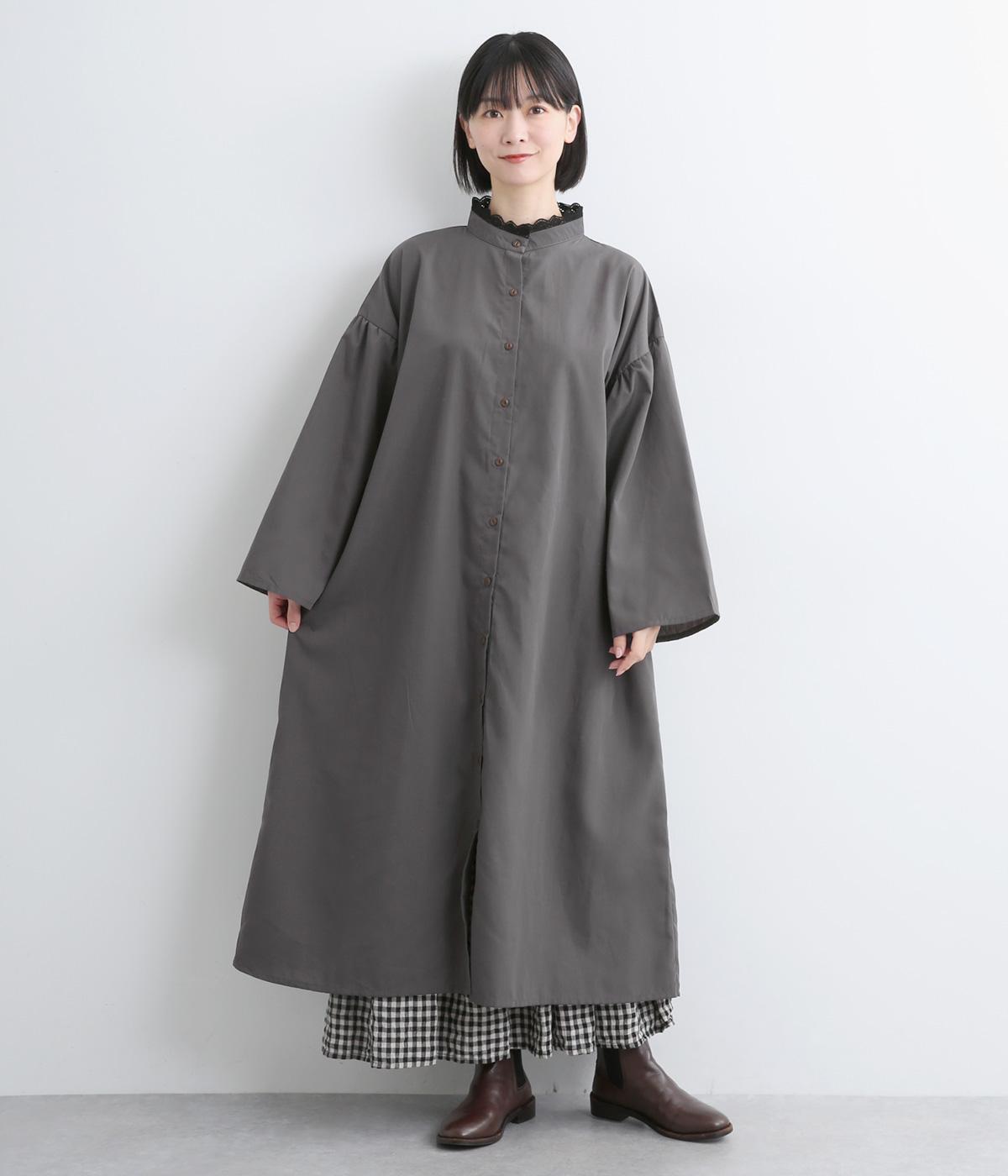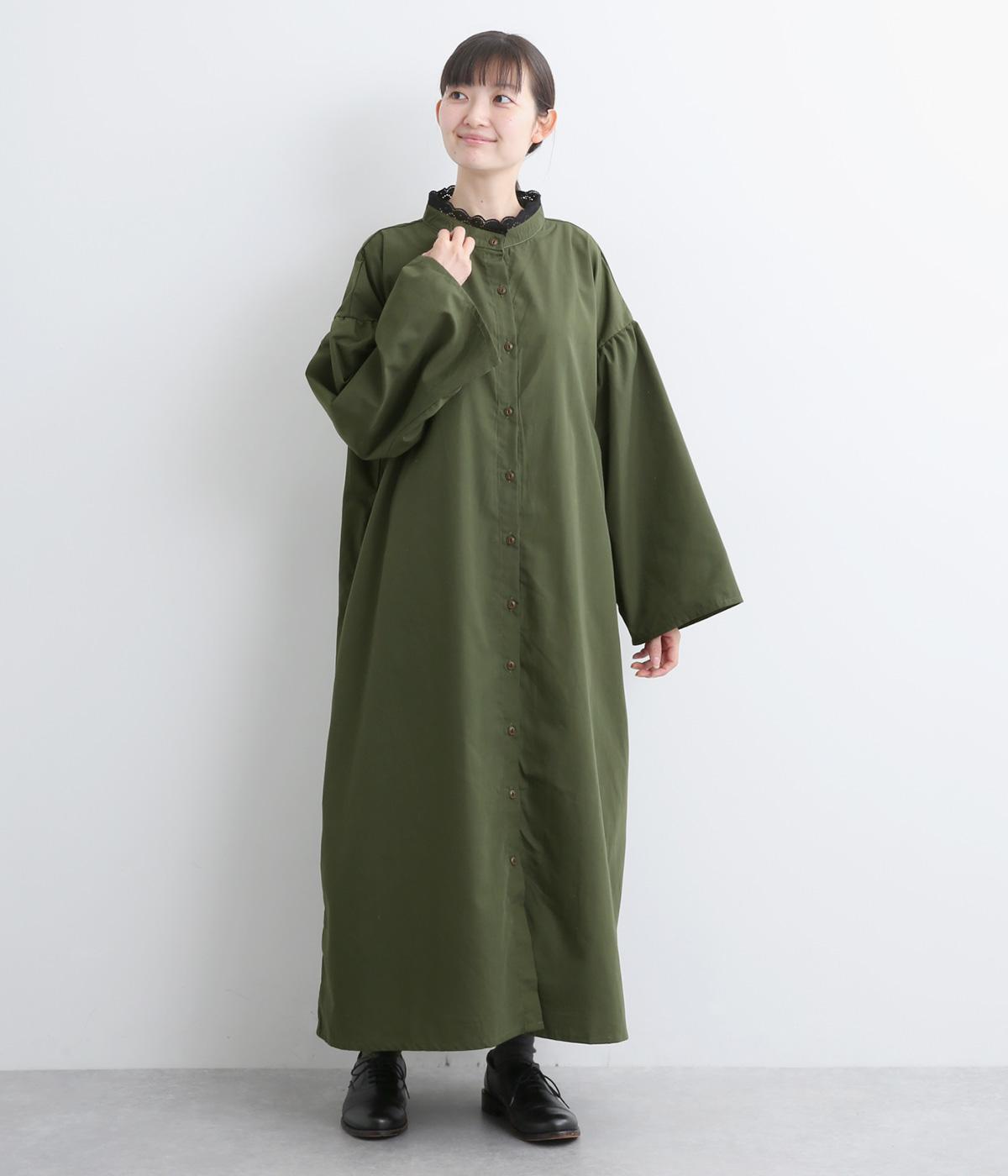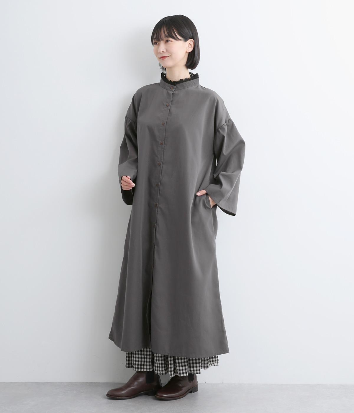 繊細なレースをあしらったバンドカラーが、クラシカルで上品な印象のワンピースです。袖の切り替え部分にギャザーを寄せ、ふんわりと立体感のあるシルエットに仕上げました。前をとめて一枚で着るのはもちろん、羽織りとして軽やかに重ねるのも◎。カジュアルからきれいめまで、幅広く活躍します。
