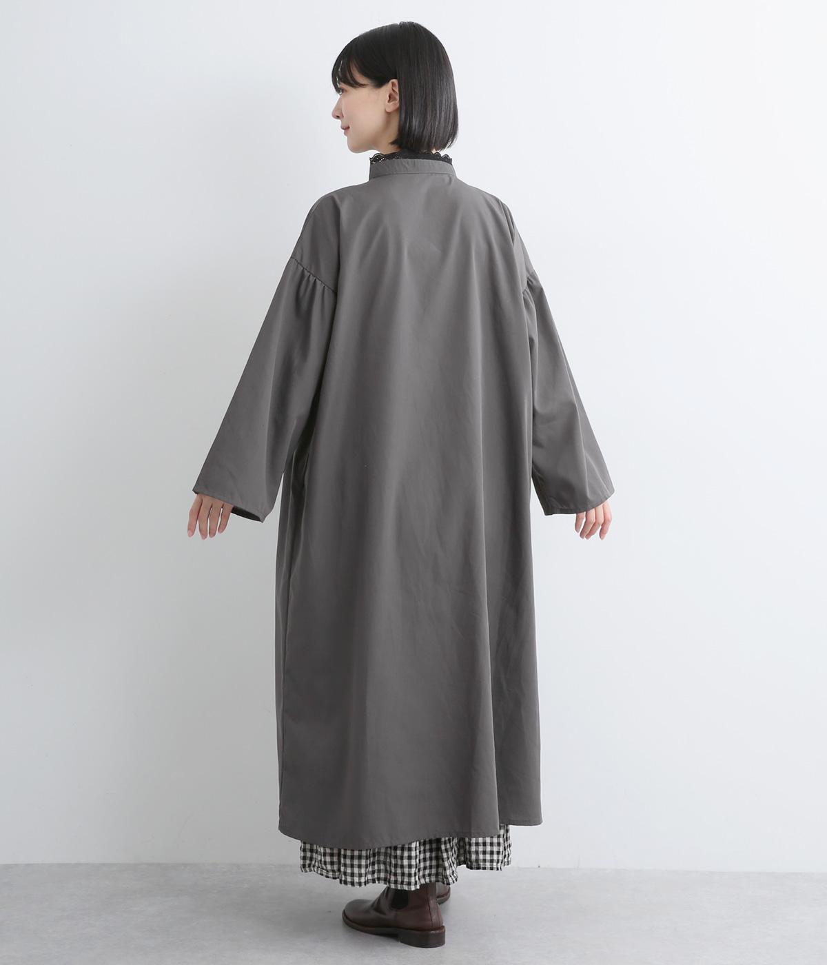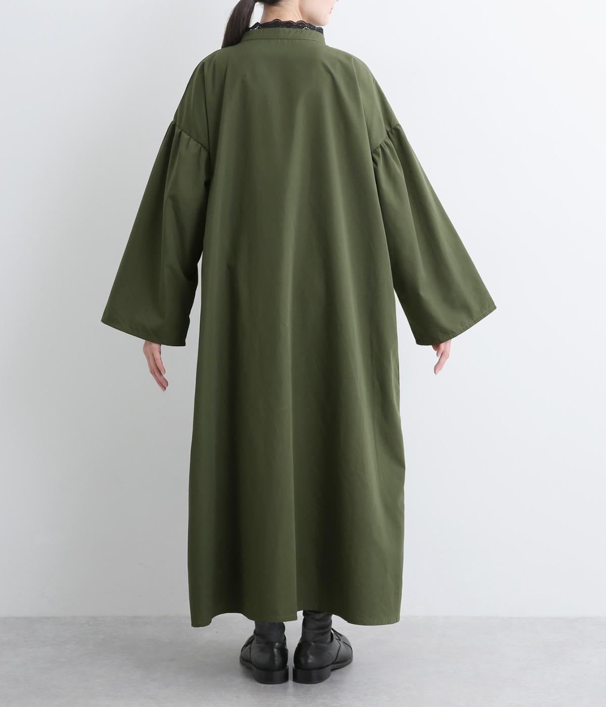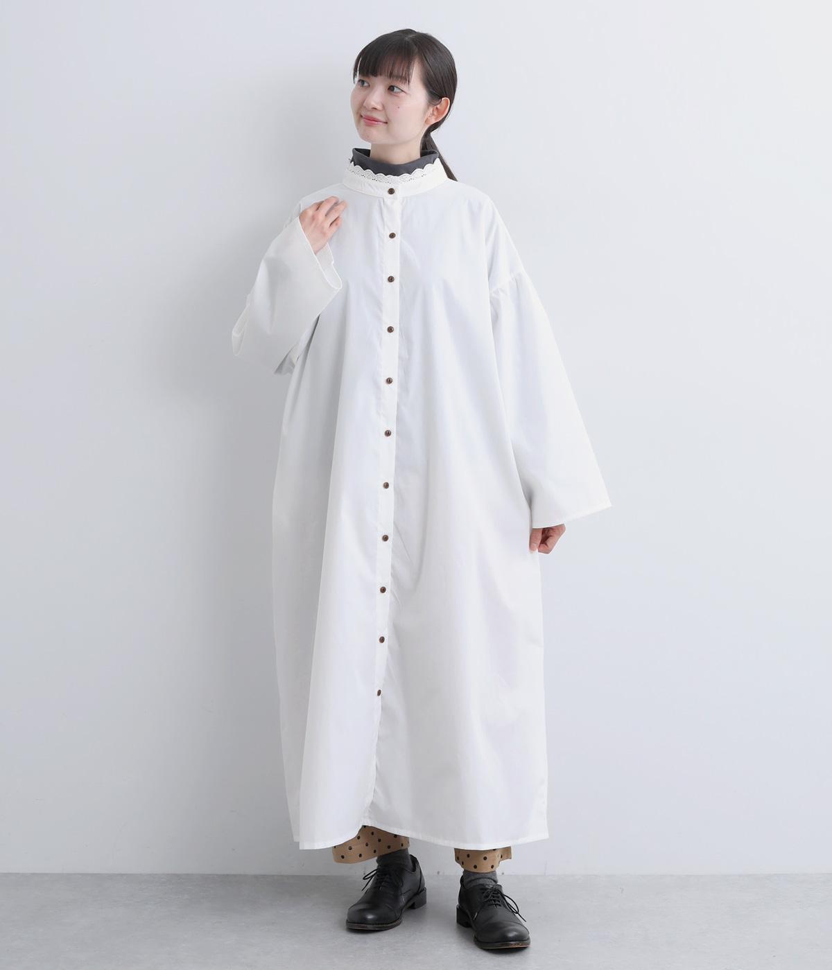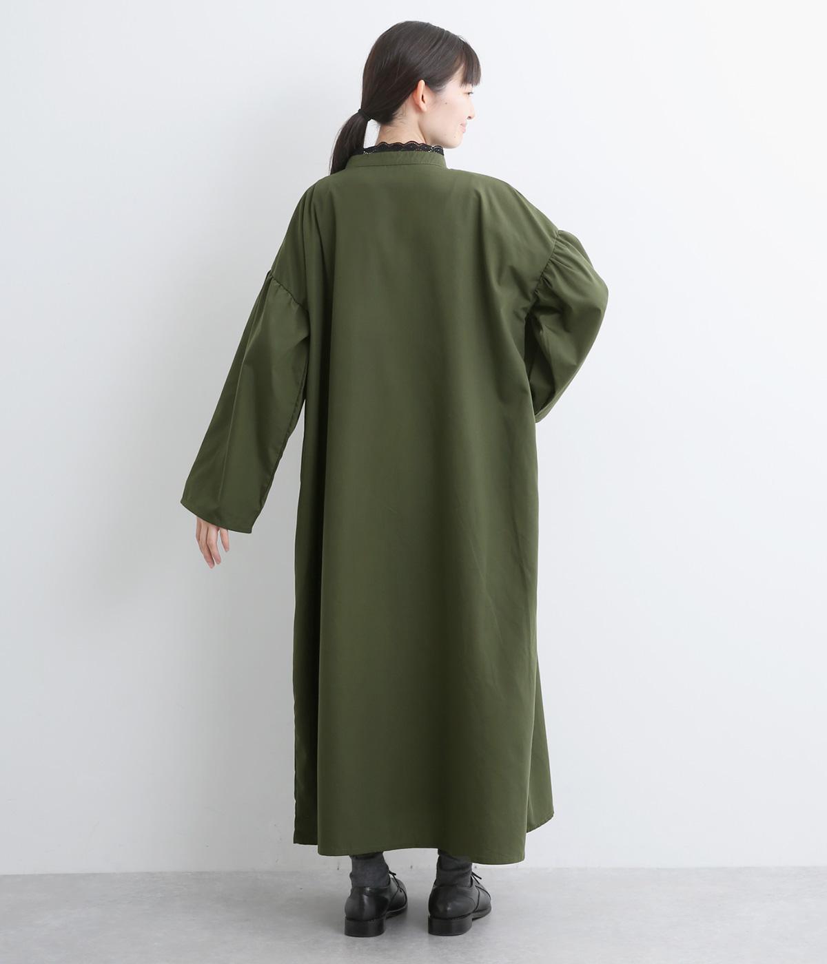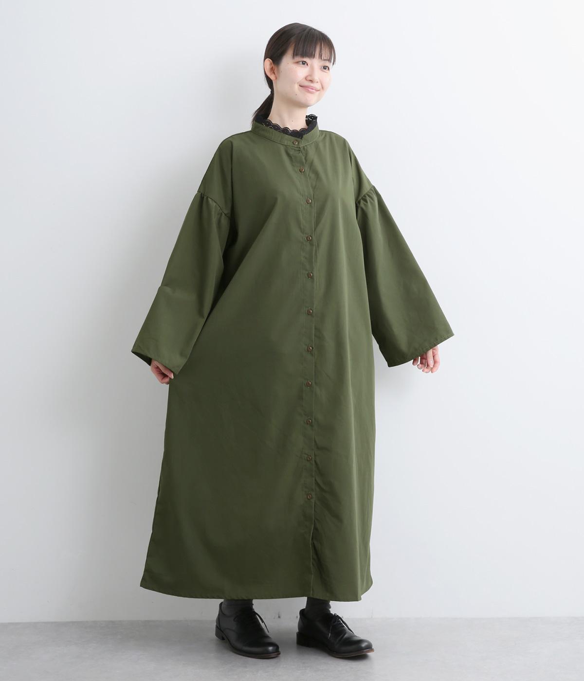 繊細なレースをあしらったバンドカラーが、クラシカルで上品な印象のワンピースです。袖の切り替え部分にギャザーを寄せ、ふんわりと立体感のあるシルエットに仕上げました。前をとめて一枚で着るのはもちろん、羽織りとして軽やかに重ねるのも◎。カジュアルからきれいめまで、幅広く活躍します。