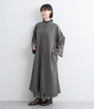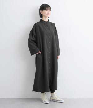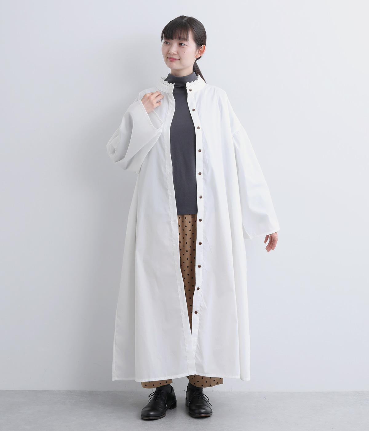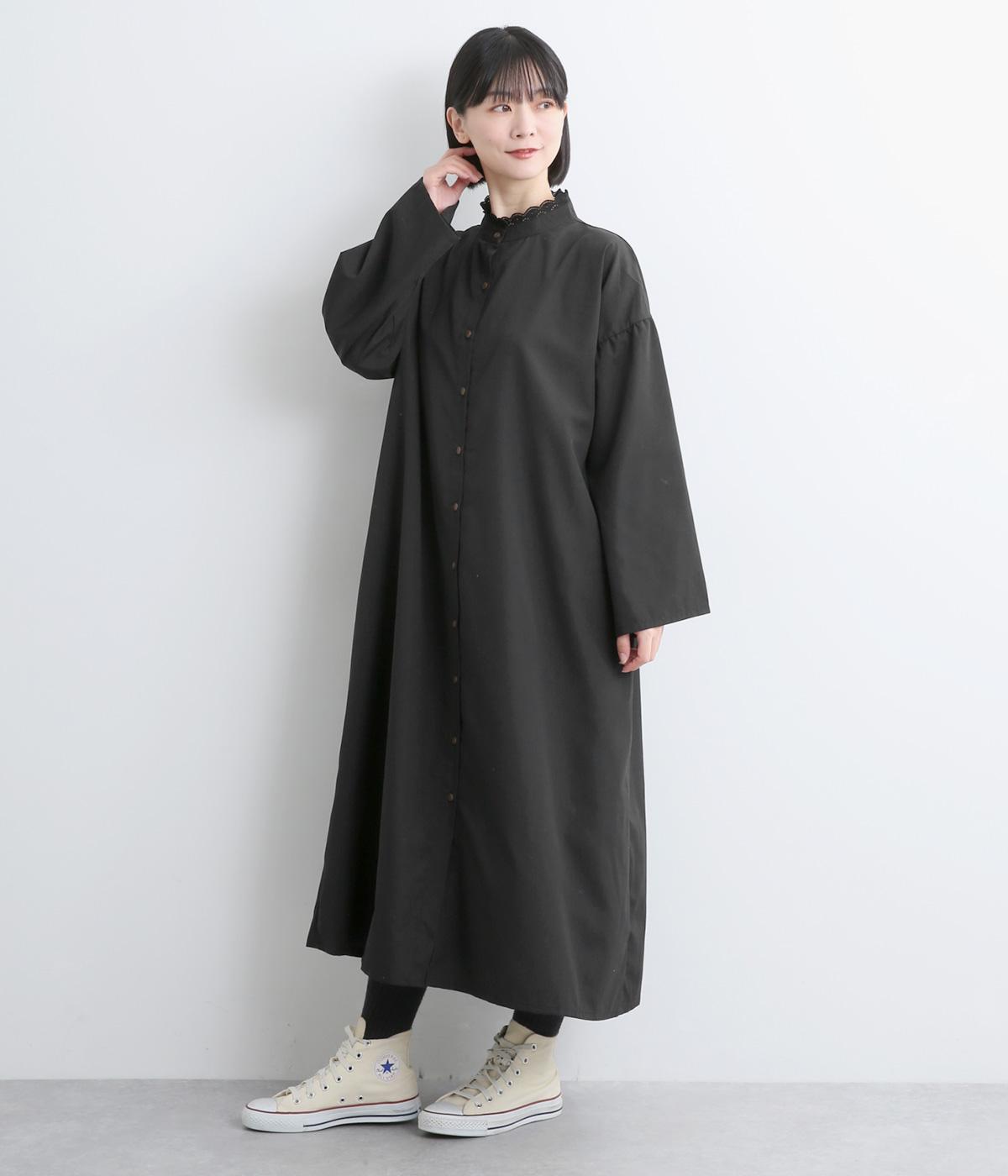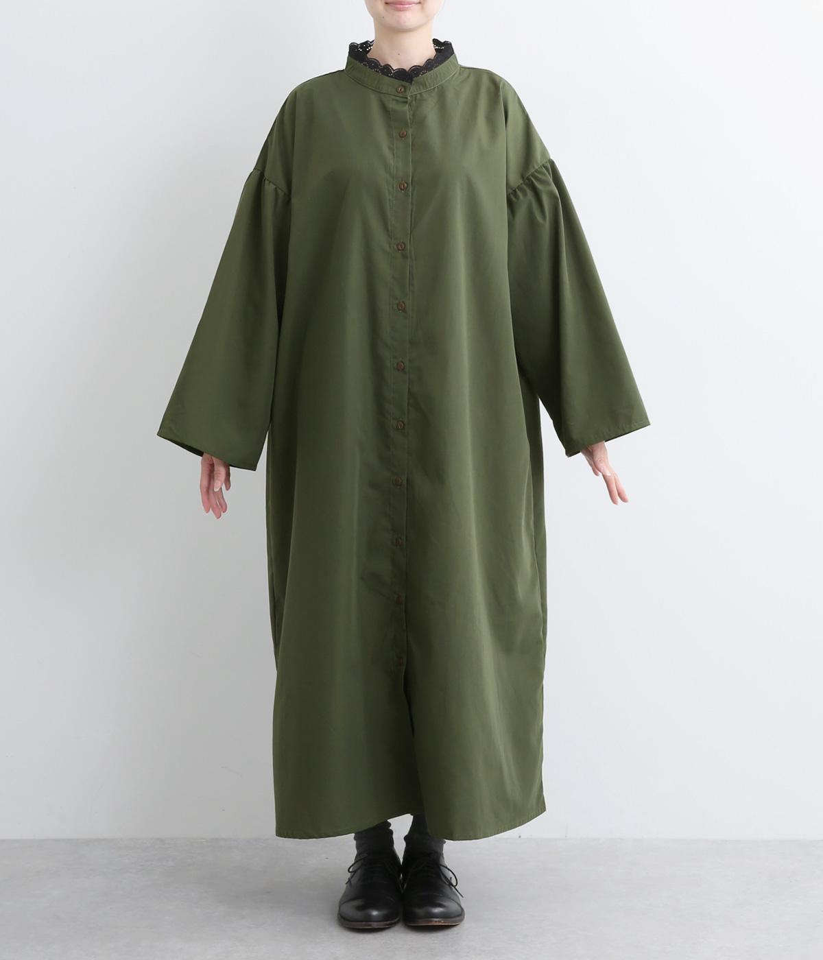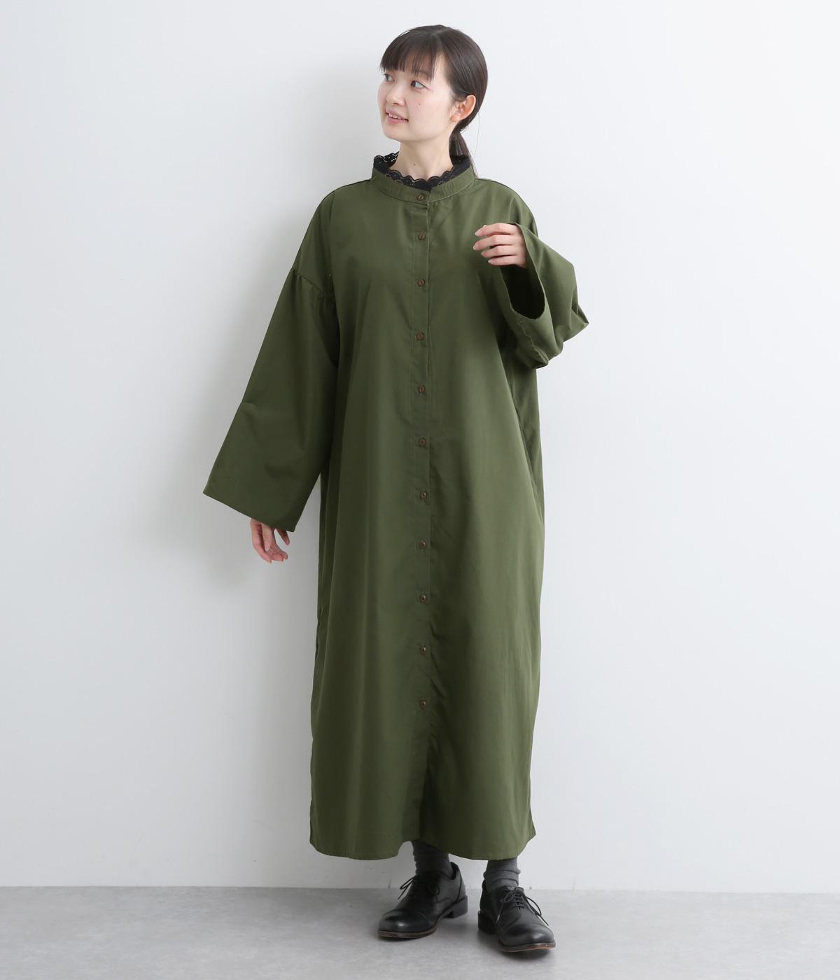 繊細なレースをあしらったバンドカラーが、クラシカルで上品な印象のワンピースです。袖の切り替え部分にギャザーを寄せ、ふんわりと立体感のあるシルエットに仕上げました。前をとめて一枚で着るのはもちろん、羽織りとして軽やかに重ねるのも◎。カジュアルからきれいめまで、幅広く活躍します。