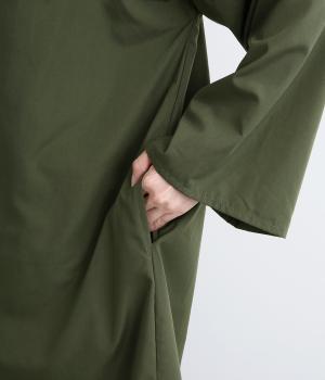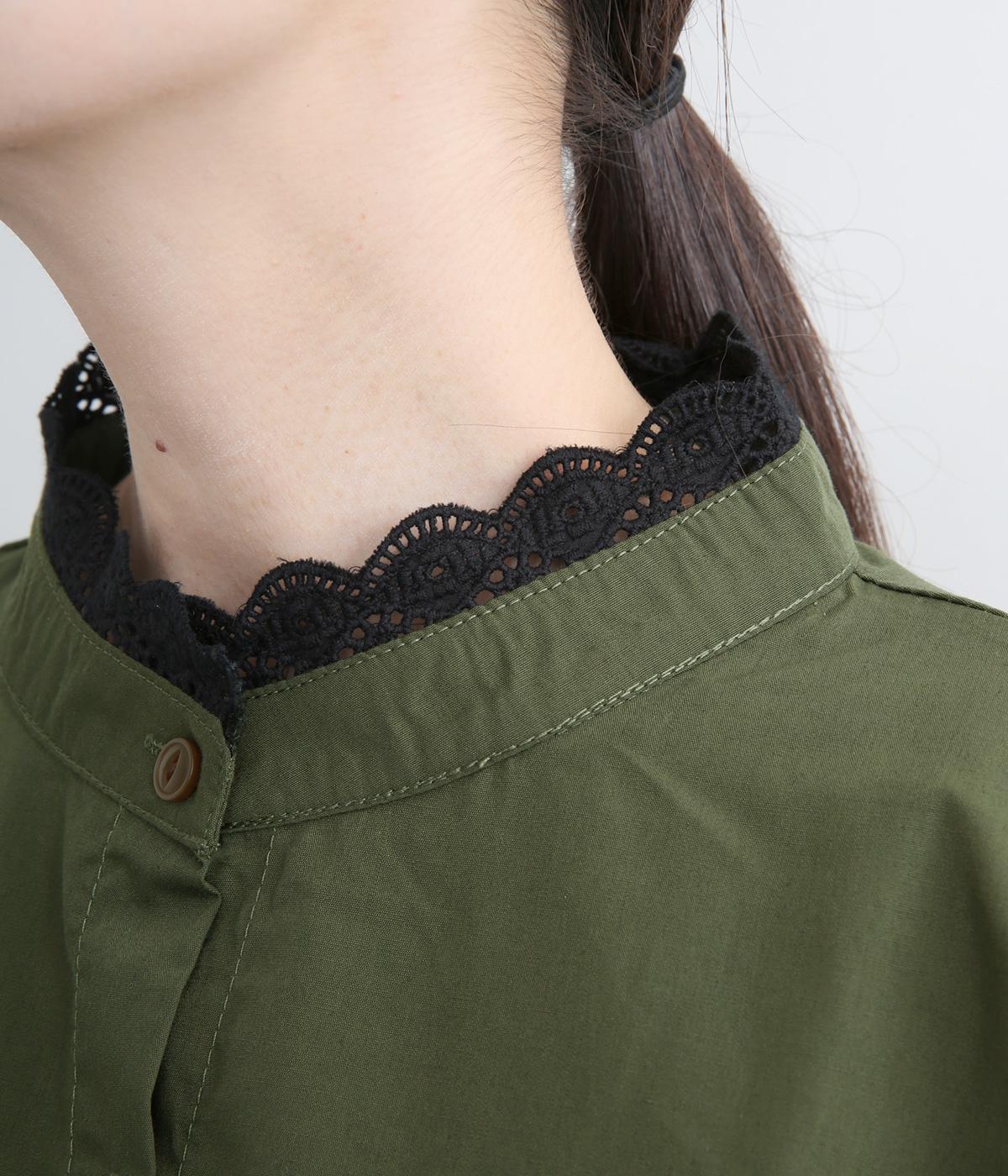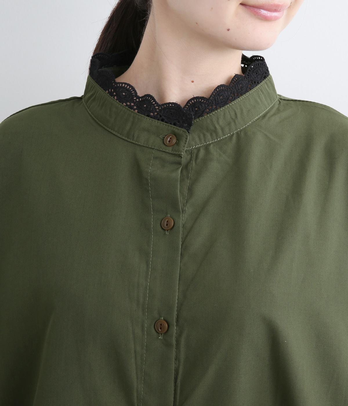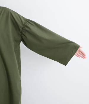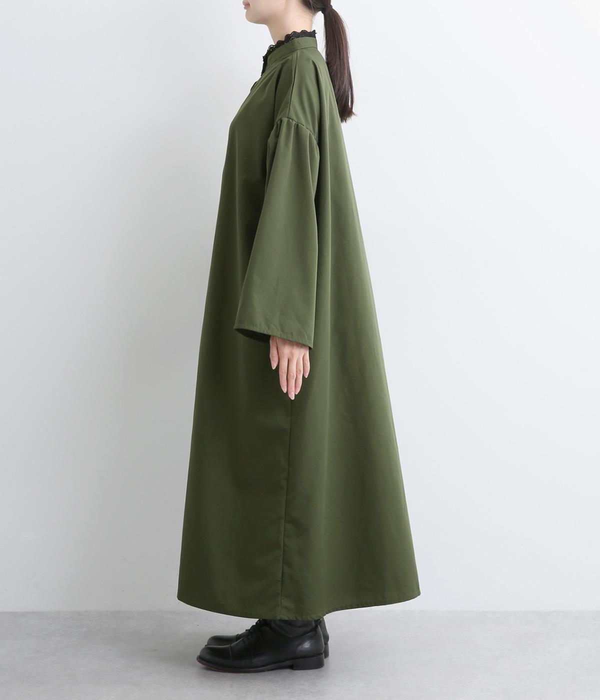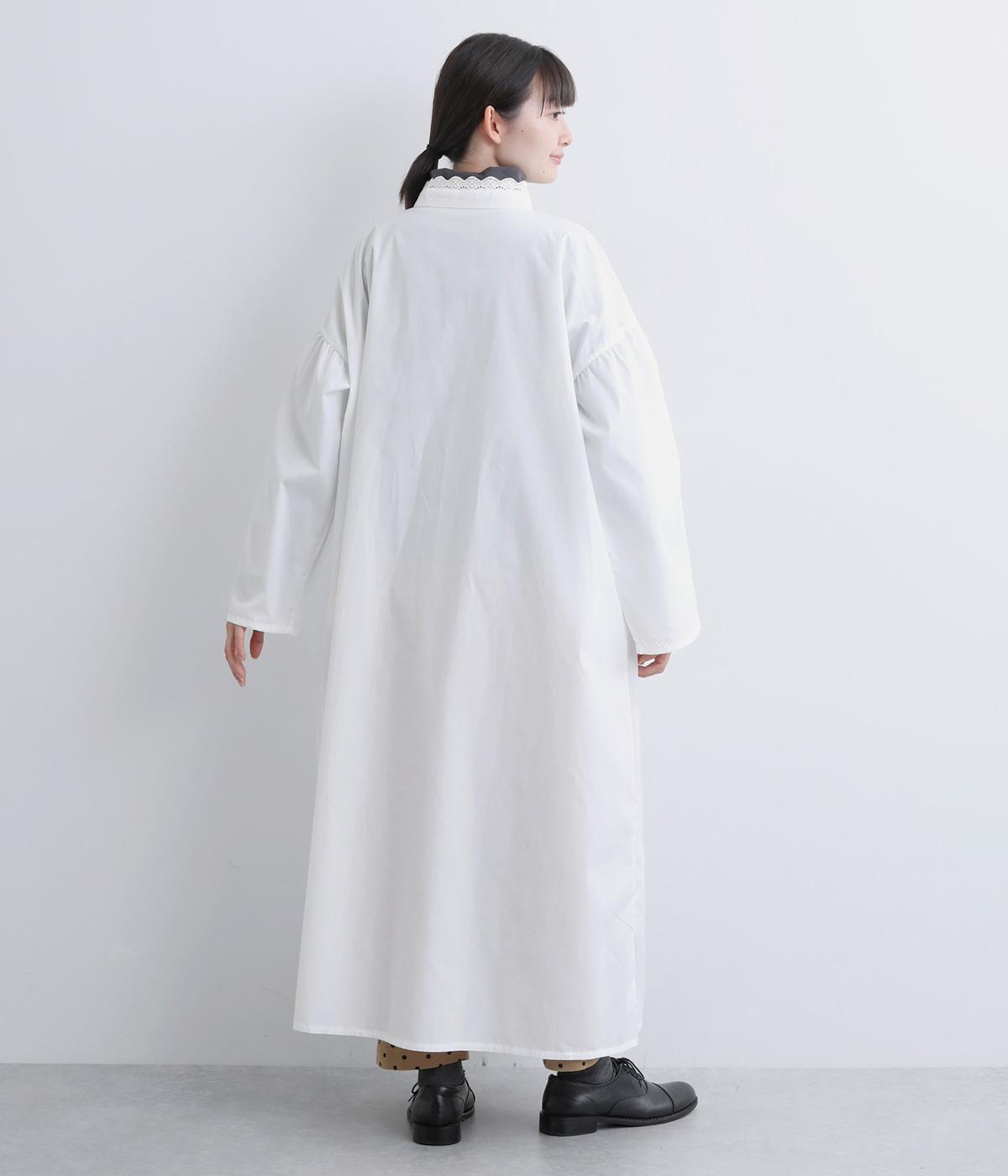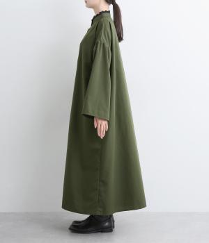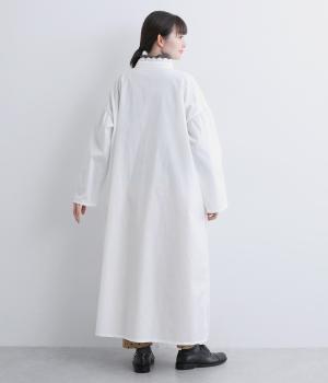 繊細なレースをあしらったバンドカラーが、クラシカルで上品な印象のワンピースです。袖の切り替え部分にギャザーを寄せ、ふんわりと立体感のあるシルエットに仕上げました。前をとめて一枚で着るのはもちろん、羽織りとして軽やかに重ねるのも◎。カジュアルからきれいめまで、幅広く活躍します。