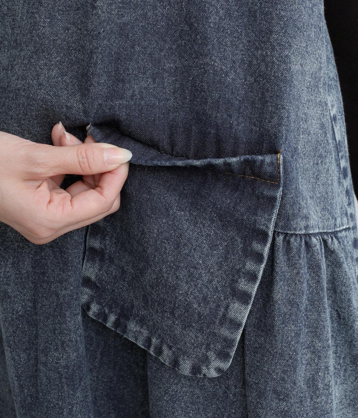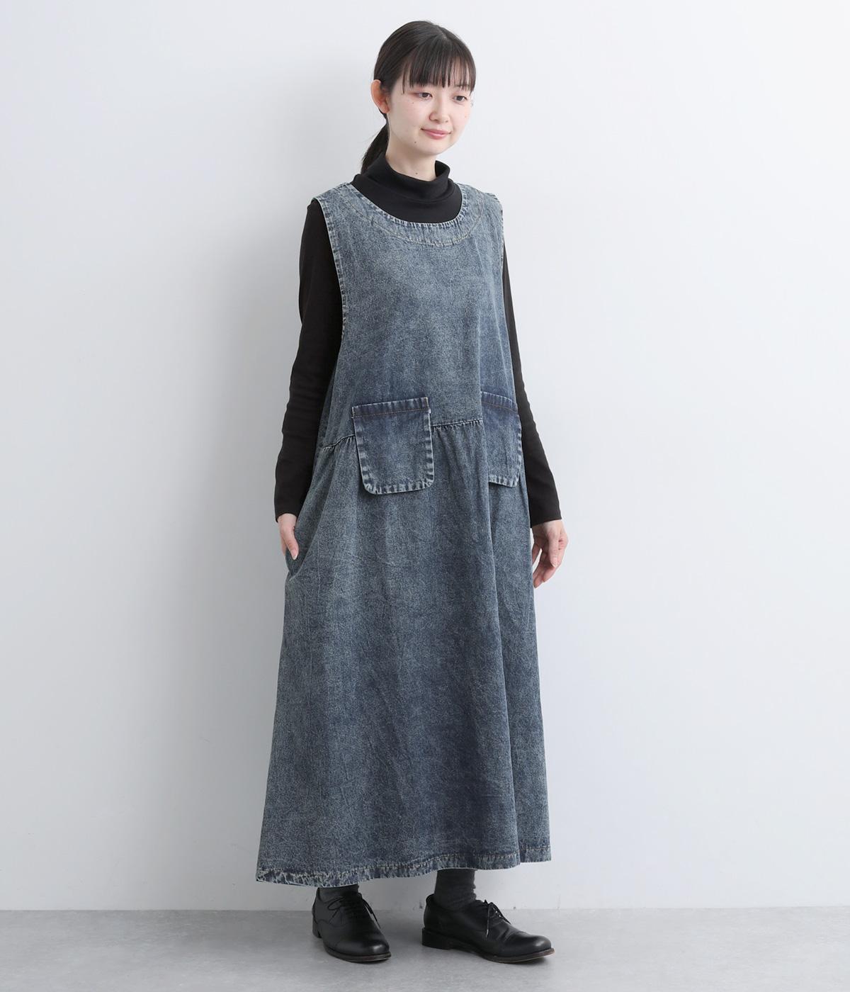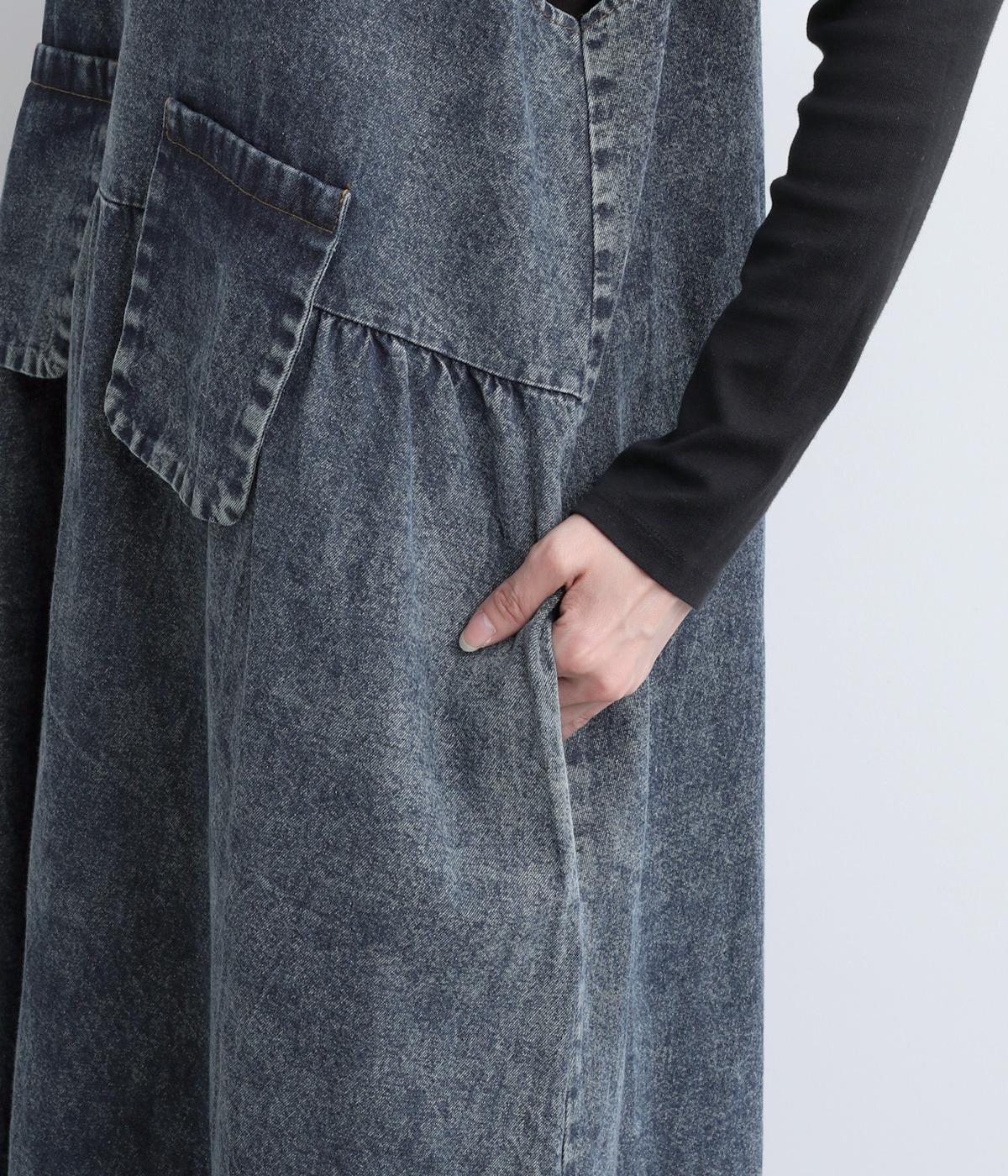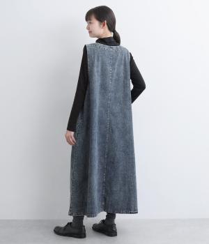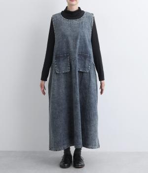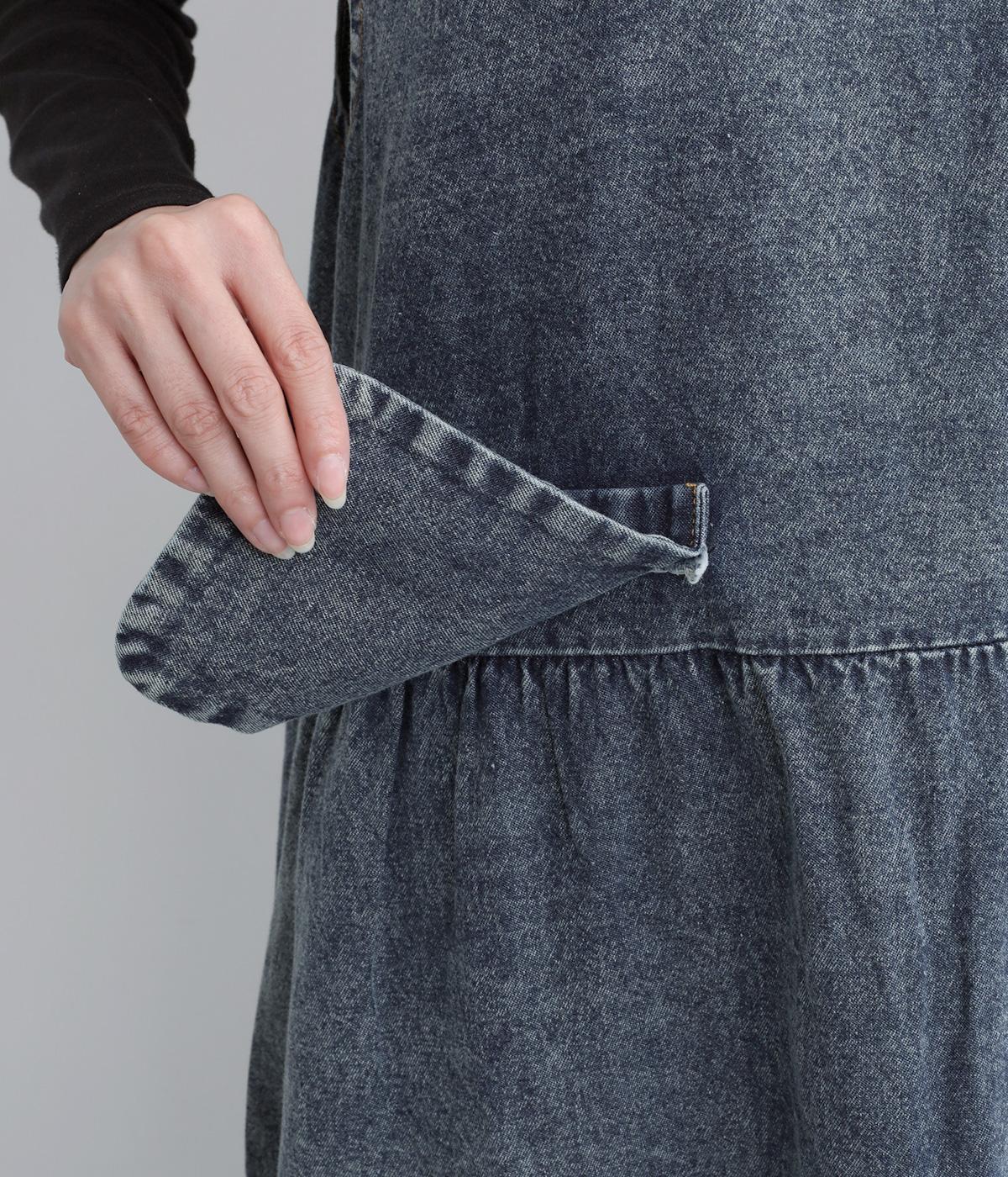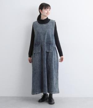 カジュアルな素材感に、ウエストのギャザーで立体的な表情を添えたロング丈のジャンパースカート。ゆったりとした着心地ながら、フェイクポケットでほどよいアクセントをきかせています。肩の力を抜いてたのしめる、大人のデイリースタイルにぴったりな一枚です。