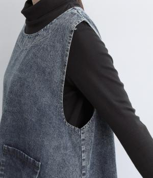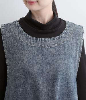 肌になじむやわらかさのデニム生地です。インディゴ染めならではの深みのある色合いと、ほんのりとムラのある表情が魅力です。ほどよい厚みで、洗いを重ねるほどにやさしい質感と味わいが増していきます。