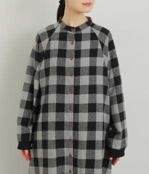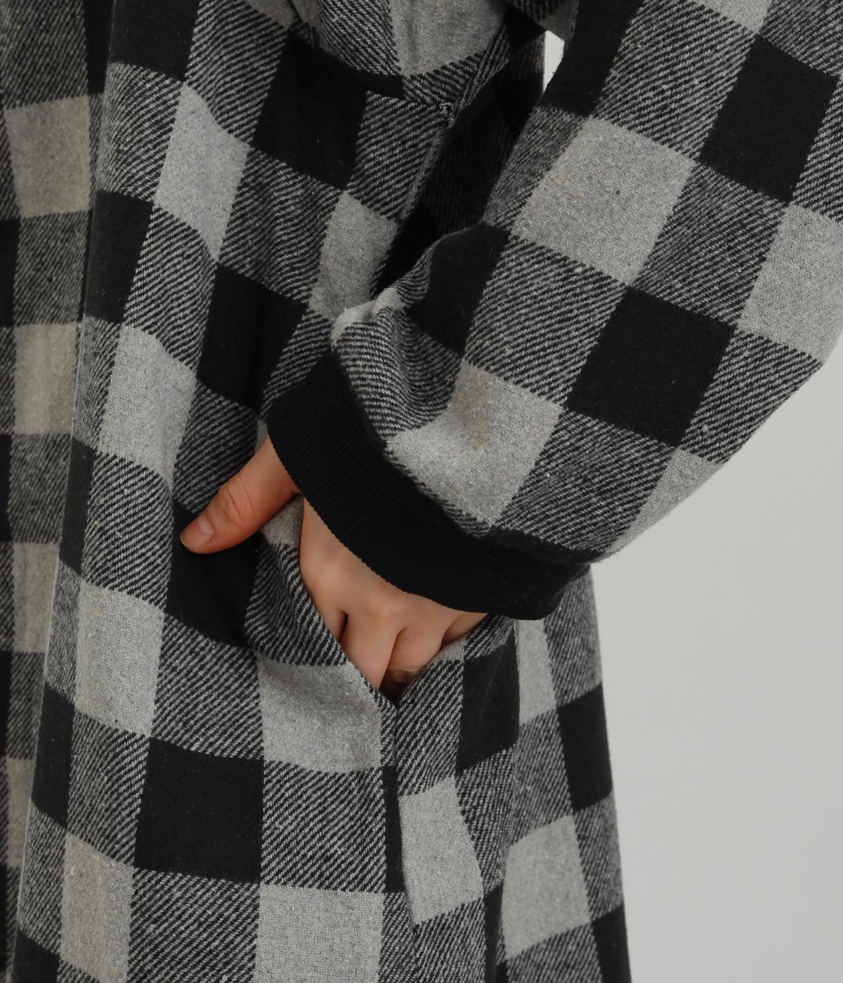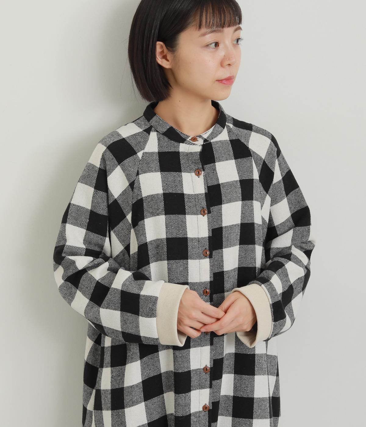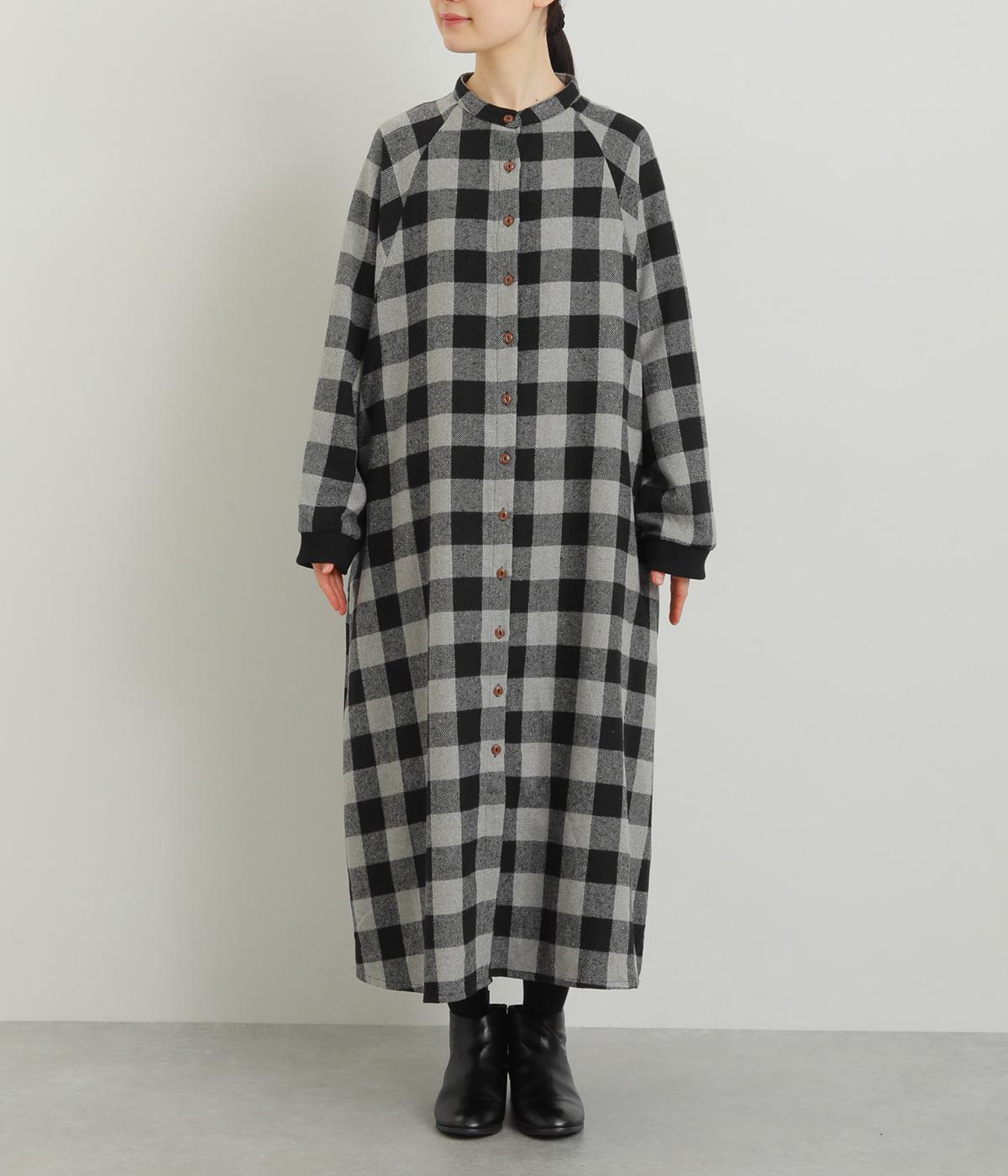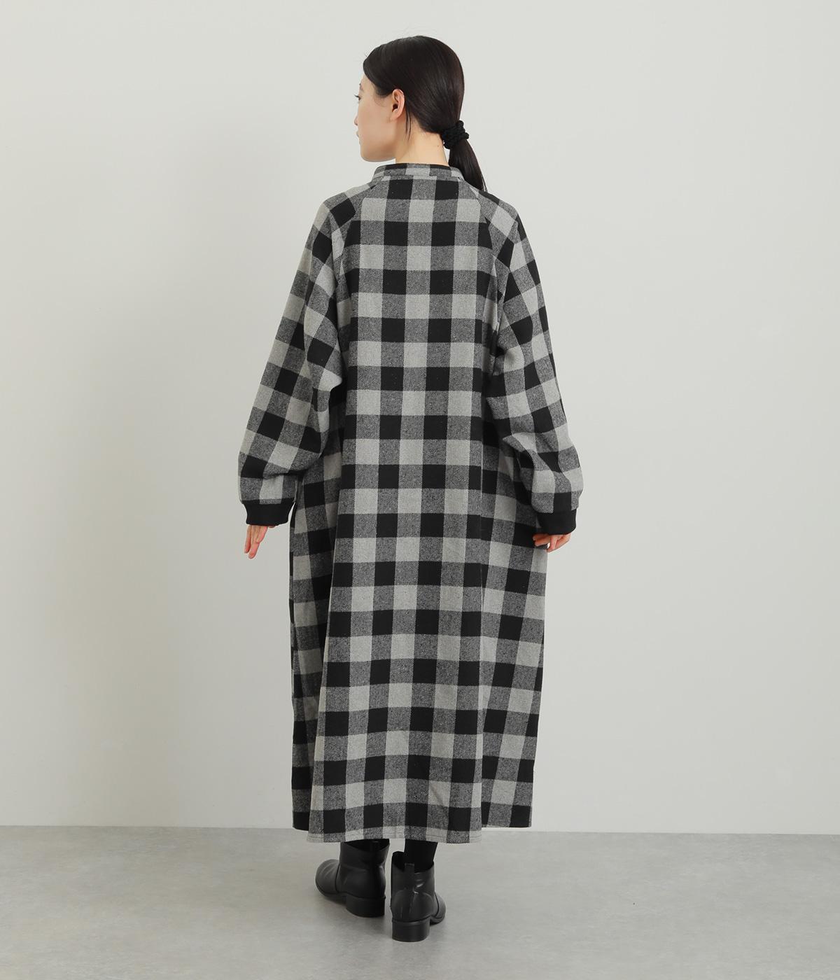 落ち着いたモノトーンながら、大きめのブロックチェック柄が新鮮見えを叶えるワンピース。ゆったりとしたドルマン袖でインナーも着合わせしやすく、袖口のリブ切り替えがちょうどいいアクセントに。ロング丈の前あき仕様です。