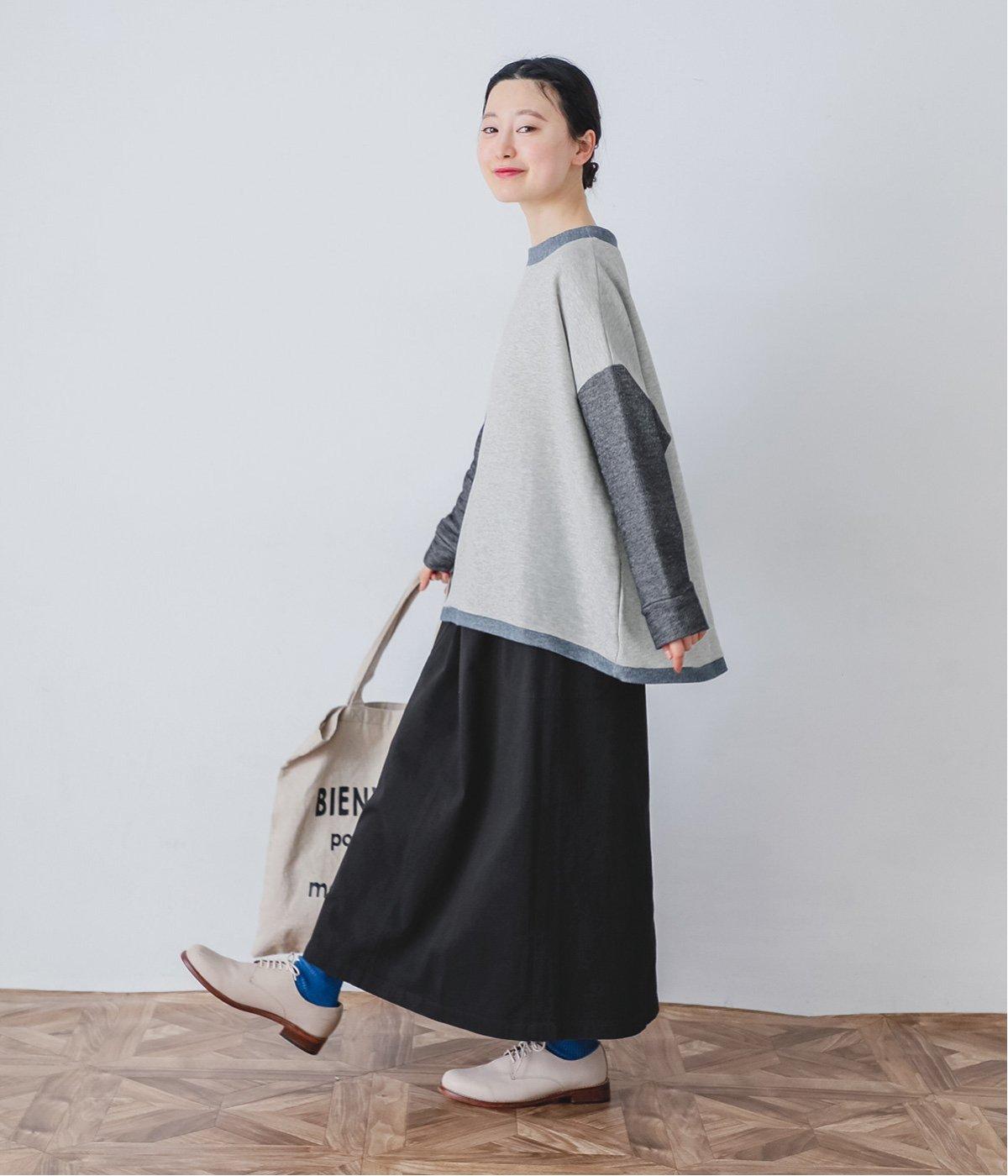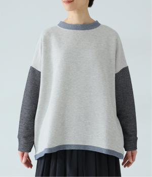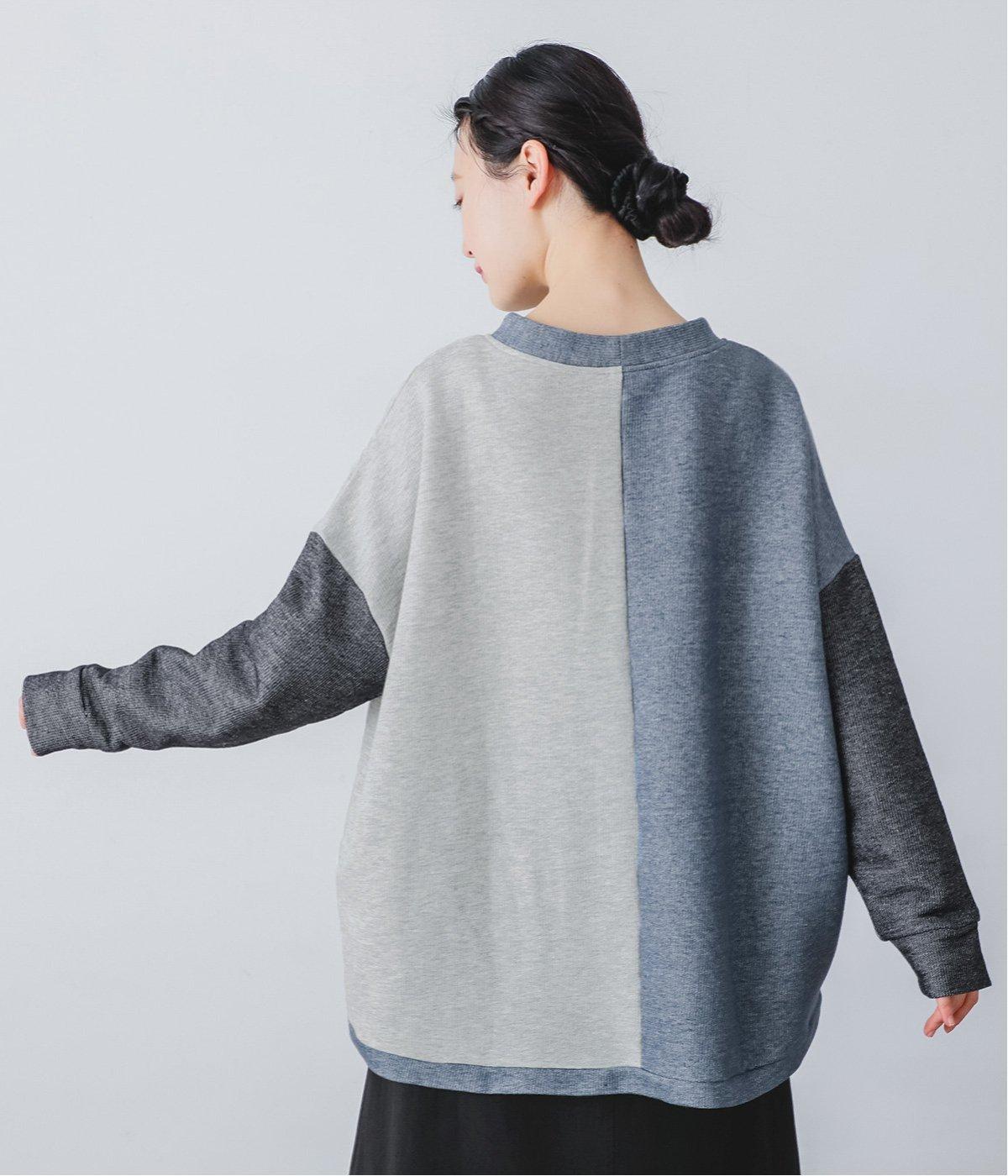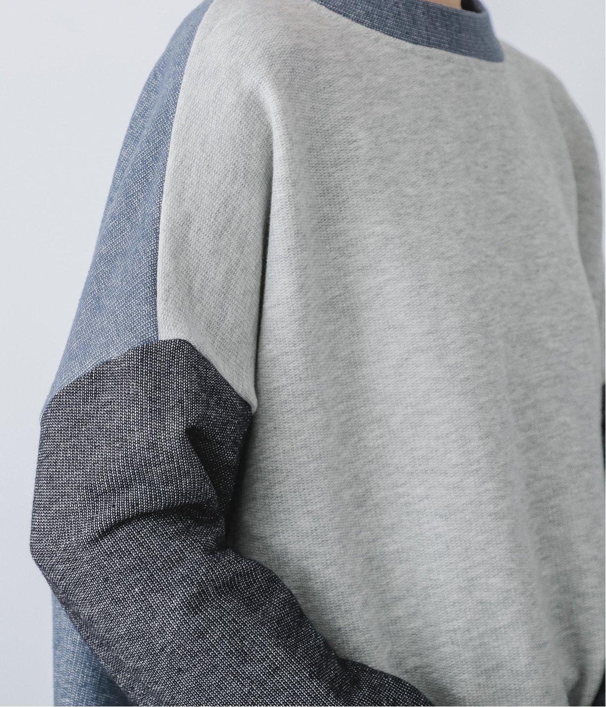 デイリー使いにぴったりな、やわらかくて動きやすい裏毛生地を使用しています。ロングシーズン着まわせるほどよい厚みが◎。同じく裏毛素材で、デニムのようなルックスに仕上げた生地を組み合わせています。