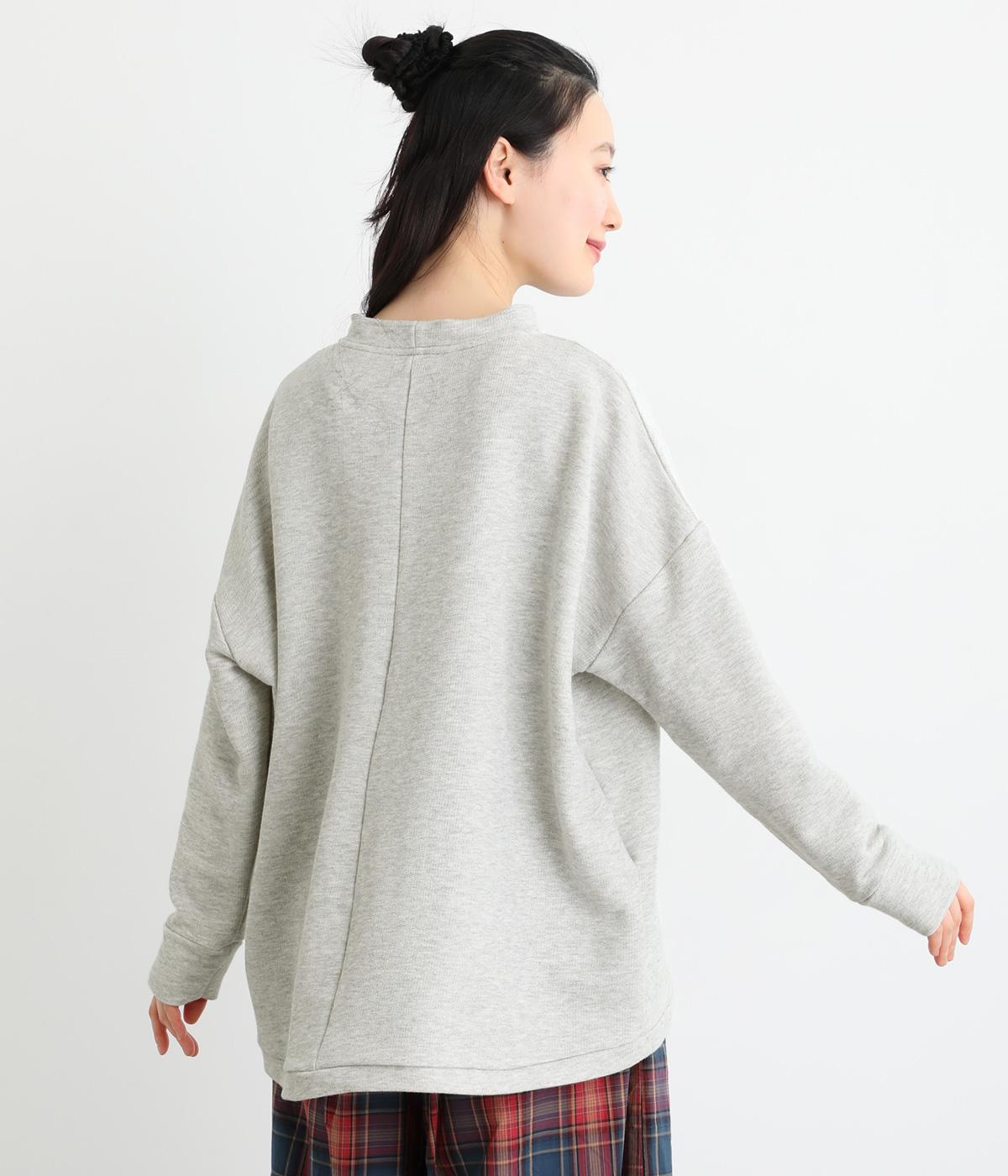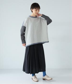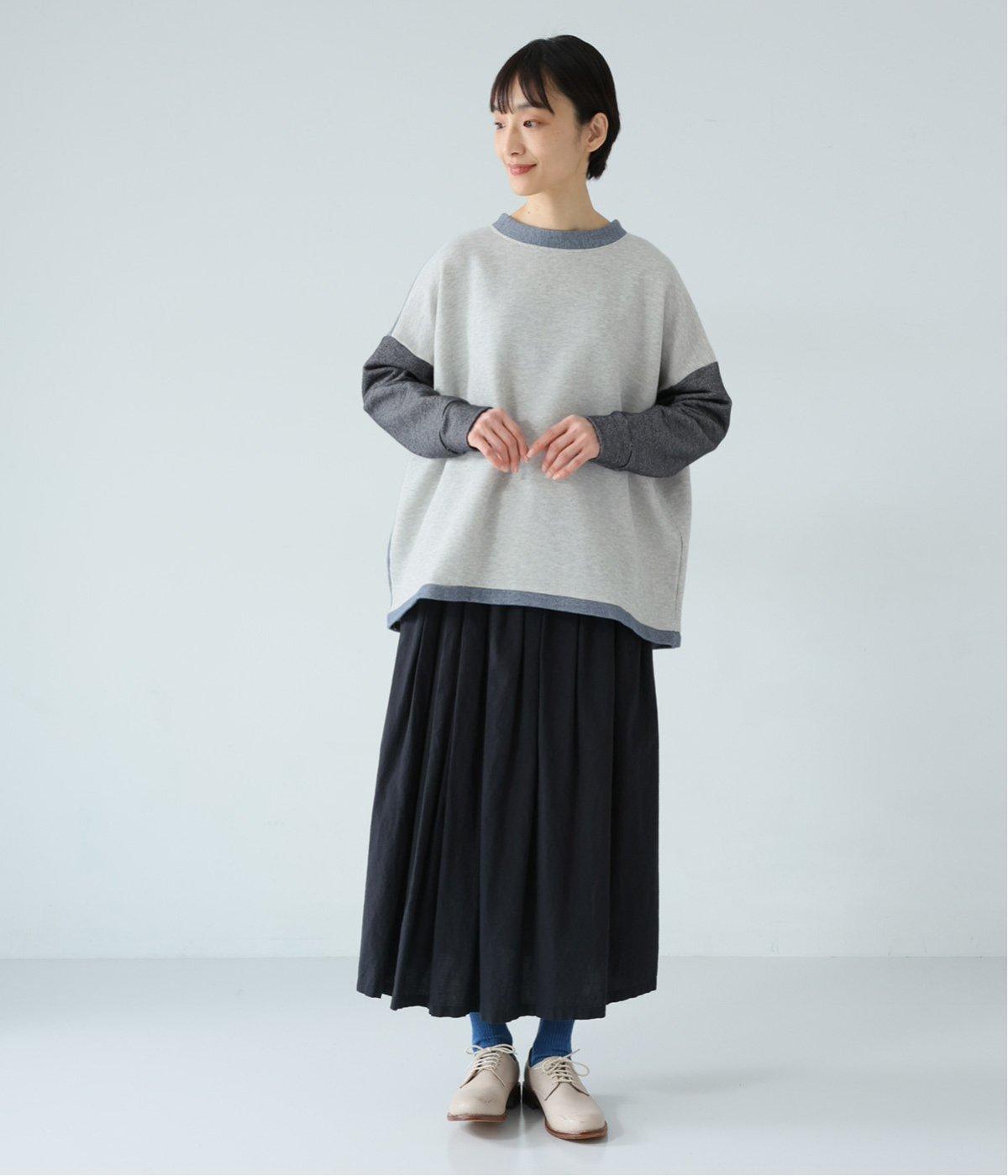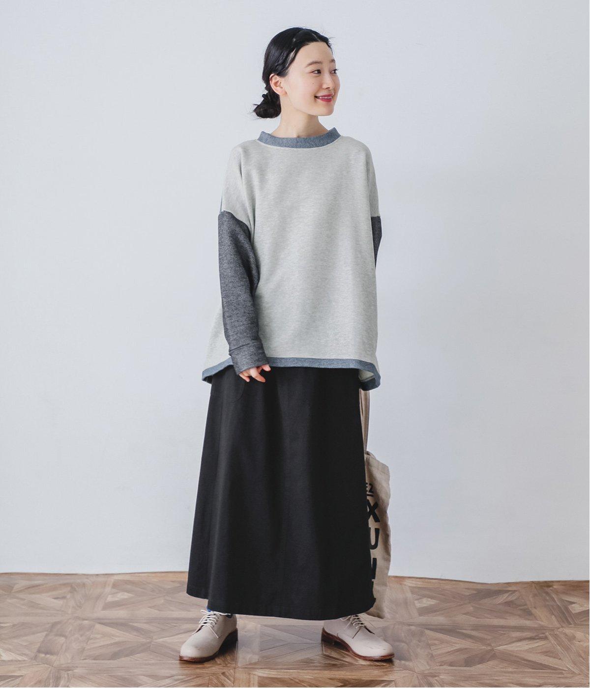 デイリー使いにぴったりな、やわらかくて動きやすい裏毛生地を使用しています。ロングシーズン着まわせるほどよい厚みが◎。同じく裏毛素材で、デニムのようなルックスに仕上げた生地を組み合わせています。