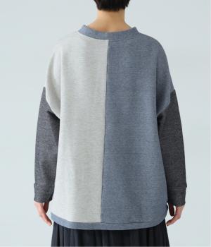 デニム調の生地を組み合わせたカジュアルなプルオーバー。メリハリのある配色デザインが、ゆとりのあるシルエットをすっきりと見せてくれます。アシンメトリーに仕上げた後ろ身頃が目を引くポイントに。一枚でおしゃれな存在感を放ちます。