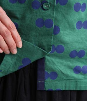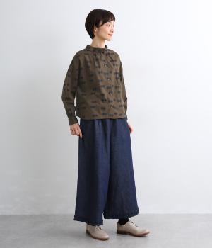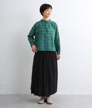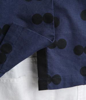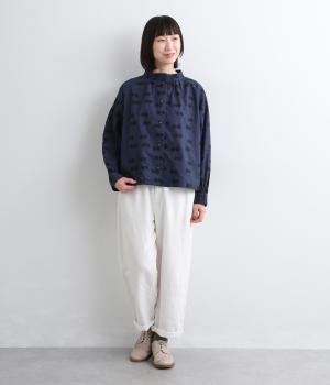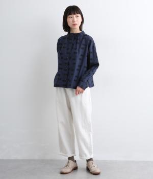 ドライタッチが心地よいリネンコットン生地にドット柄をのせました。軽やかで適度にふくらみがあり、肌にまとわりつきにくく快適に着用できます。