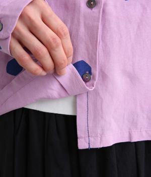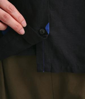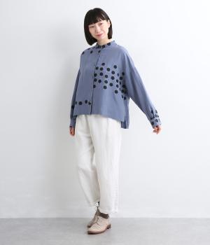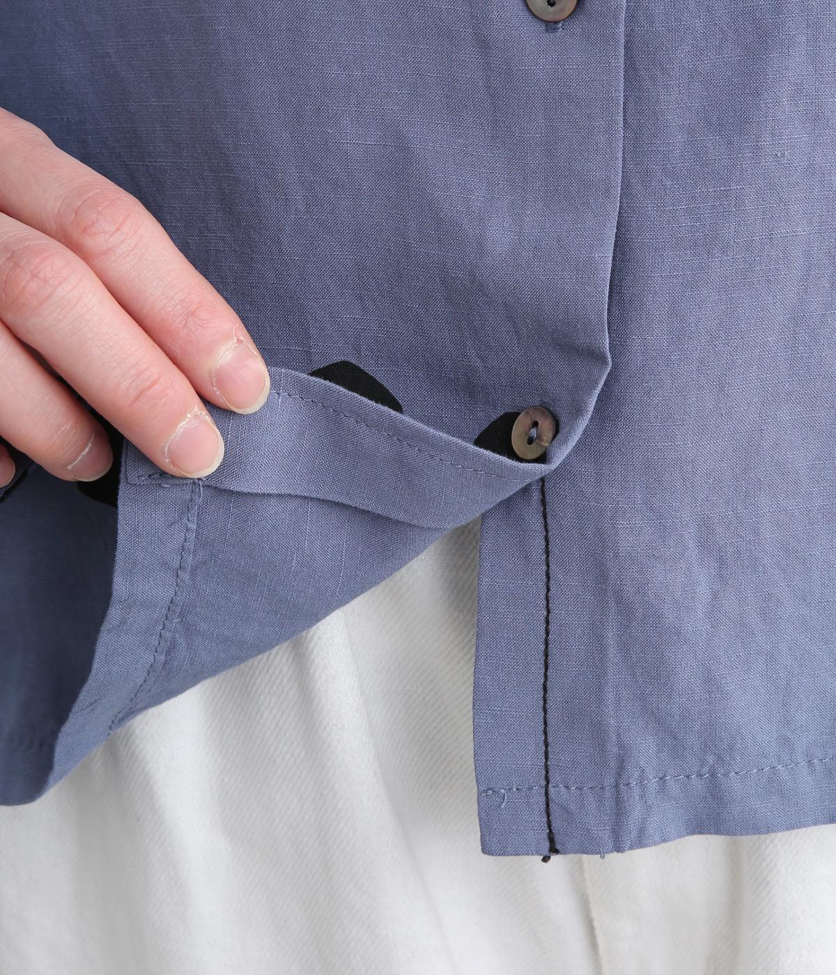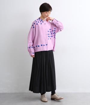 リネン特有の節のあるナチュラルさを感じさせながらもレーヨン混でなめらかな肌触りに仕上げました。ヴィンテージライクな雰囲気のある生地感です。