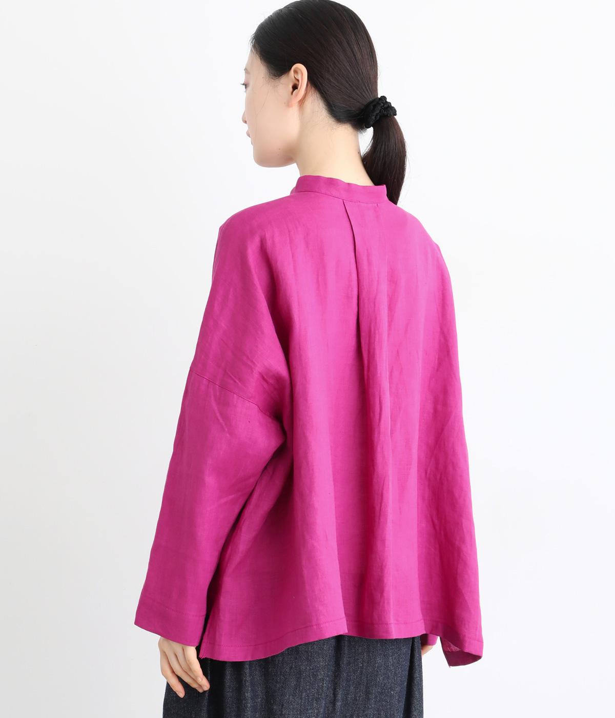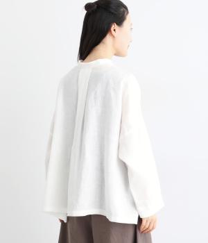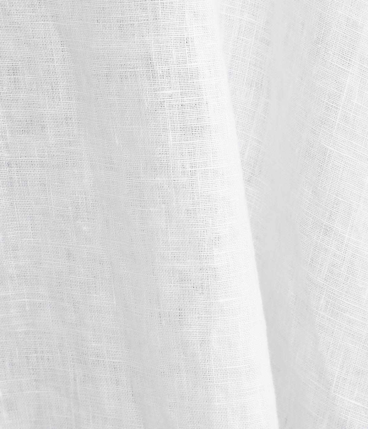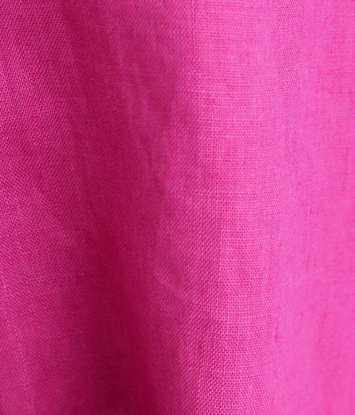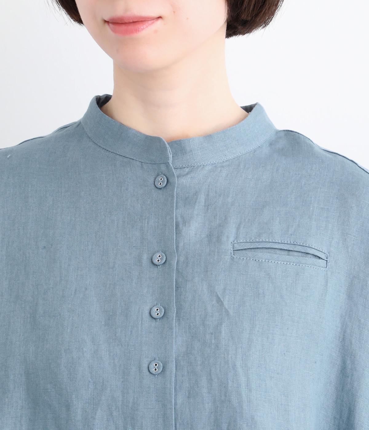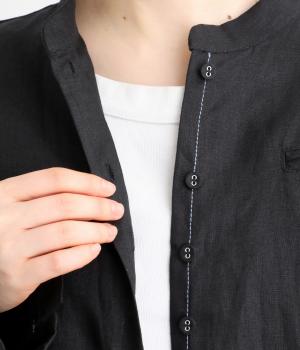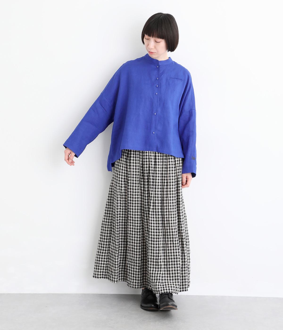 さらりとした肌ざわりが心地よいリネン素材です。ほどよいハリを備えつつ、しなやかに体になじむ、やわらかな風合いに仕上げました。ほのかな光沢とナチュラルなシワが奥行きを生み、着るほどに表情の変化をたのしめる生地感です。