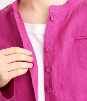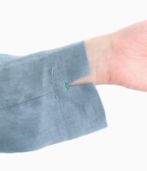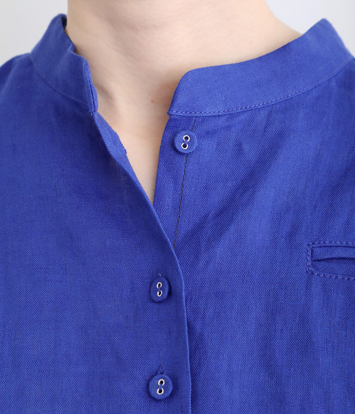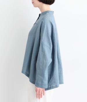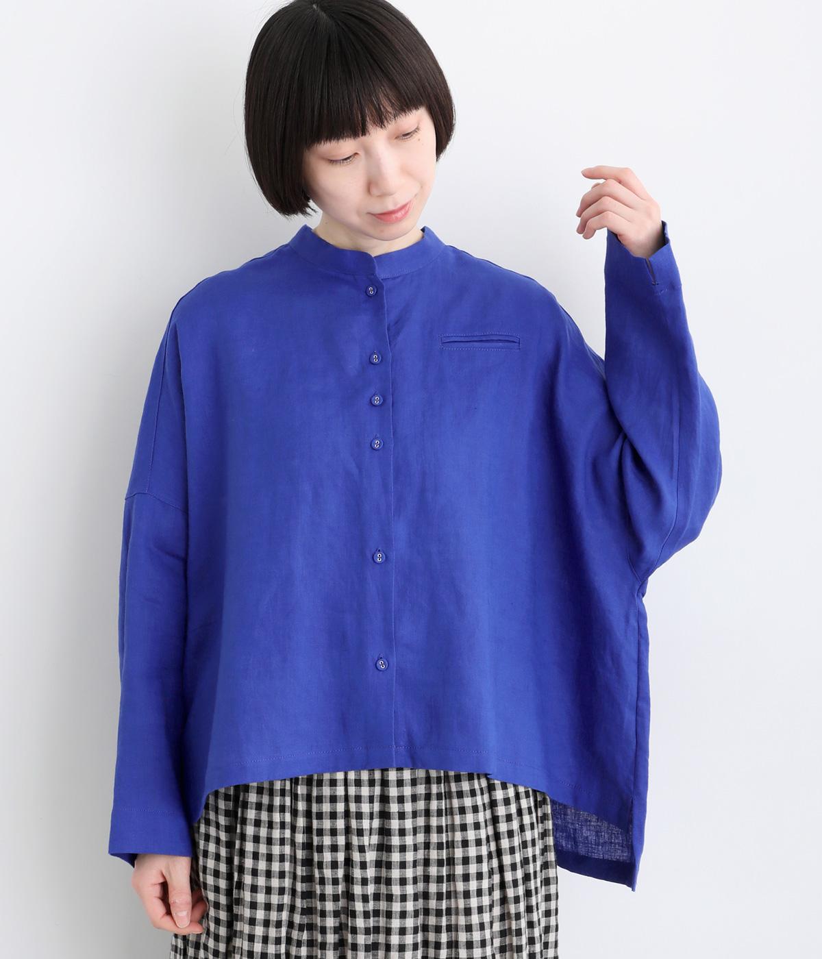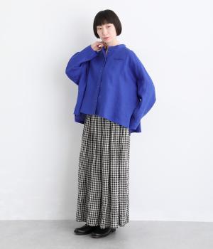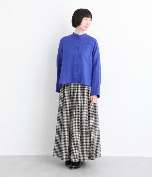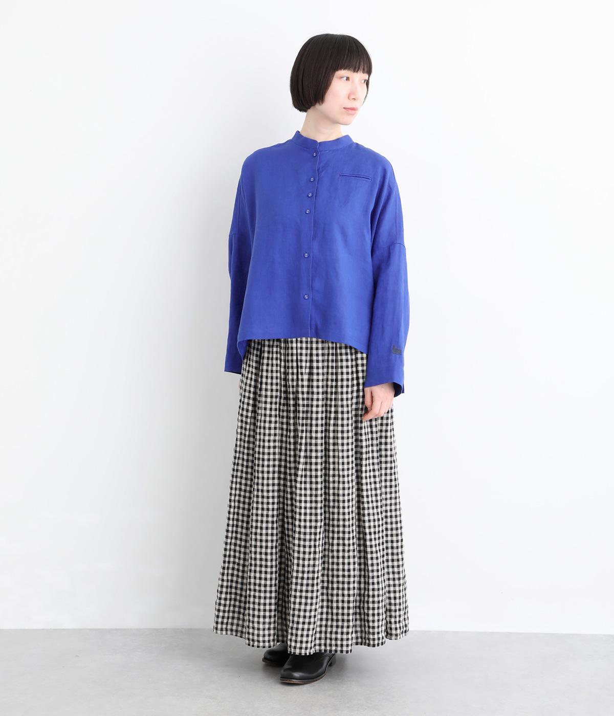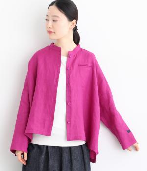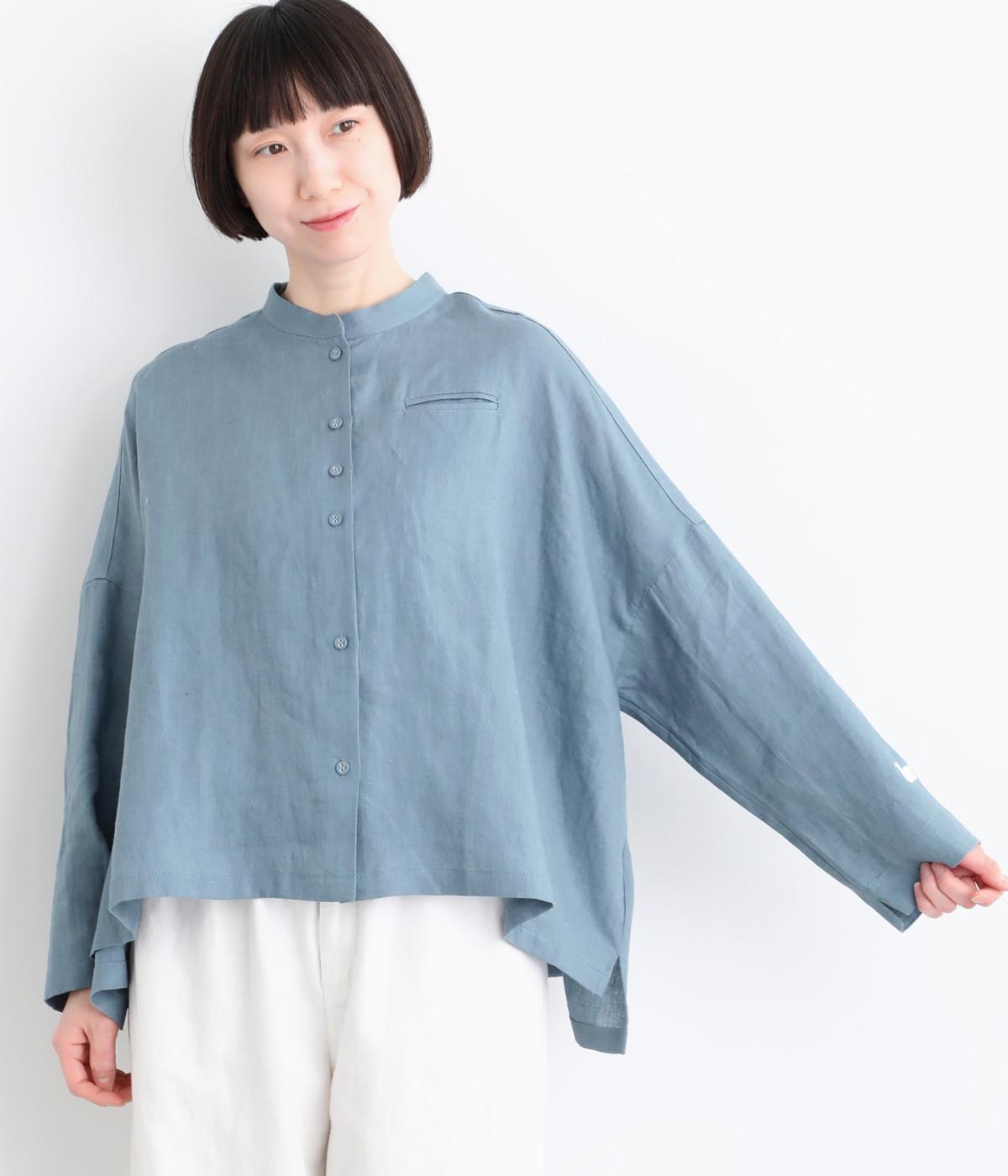 さらりとした肌ざわりが心地よいリネン素材です。ほどよいハリを備えつつ、しなやかに体になじむ、やわらかな風合いに仕上げました。ほのかな光沢とナチュラルなシワが奥行きを生み、着るほどに表情の変化をたのしめる生地感です。