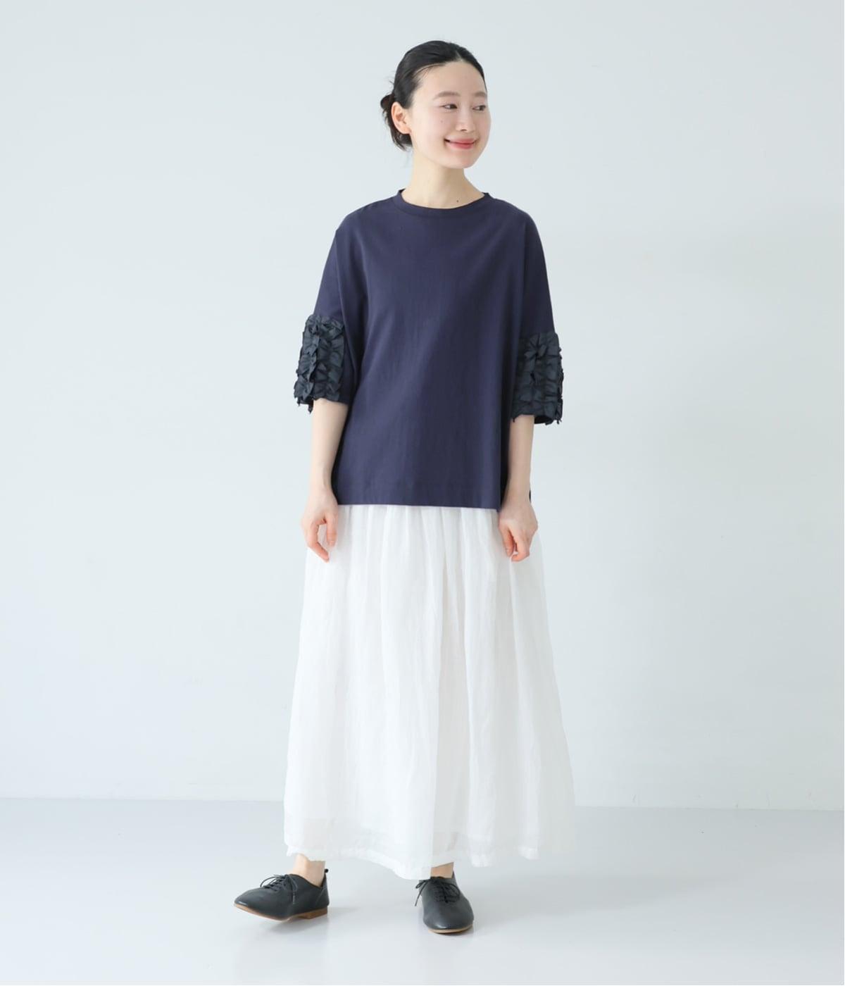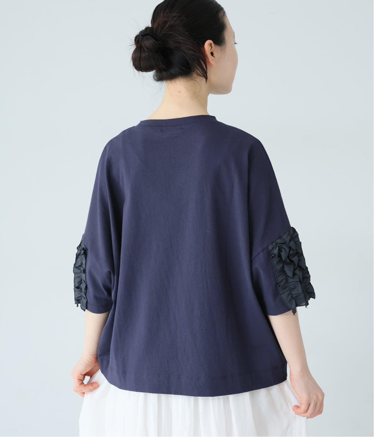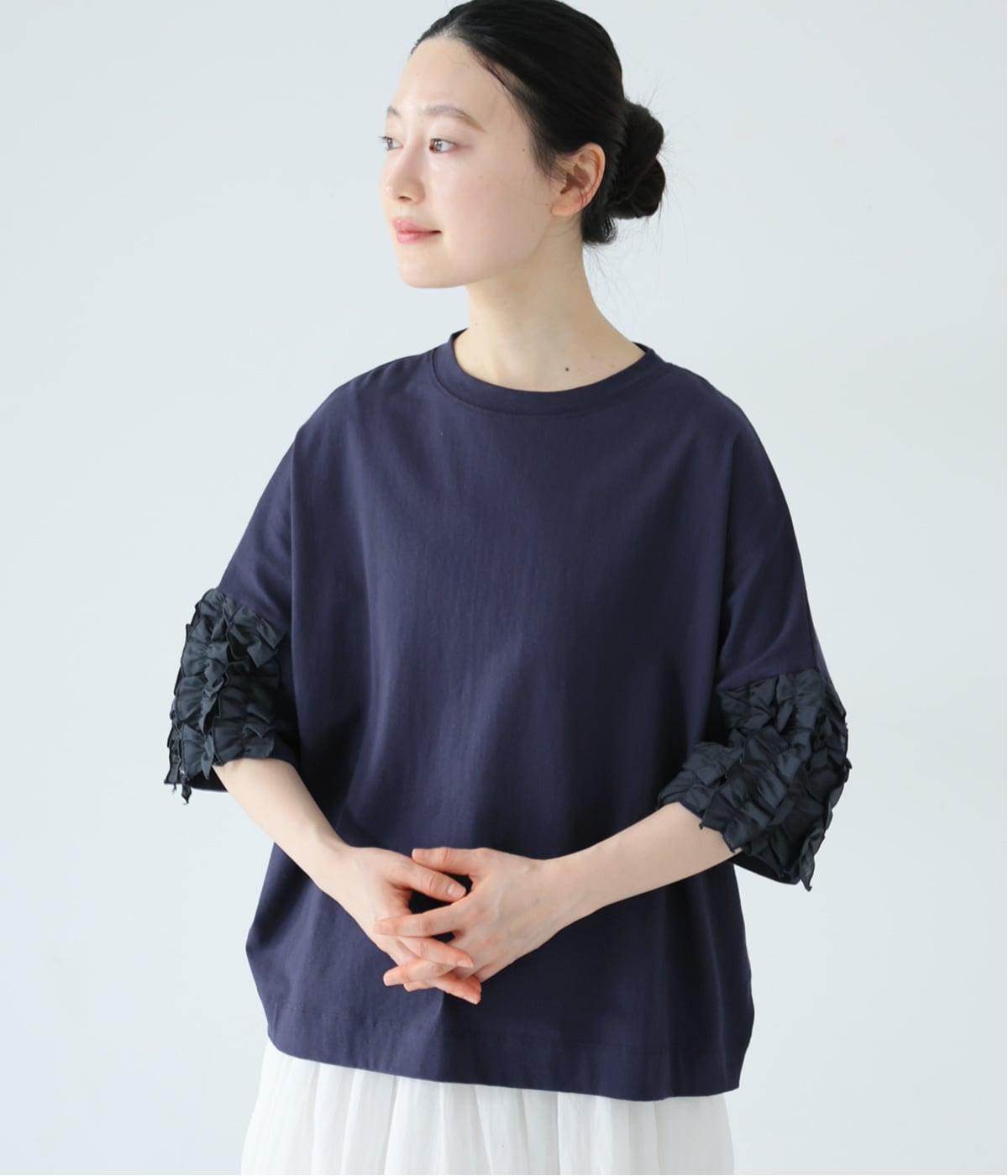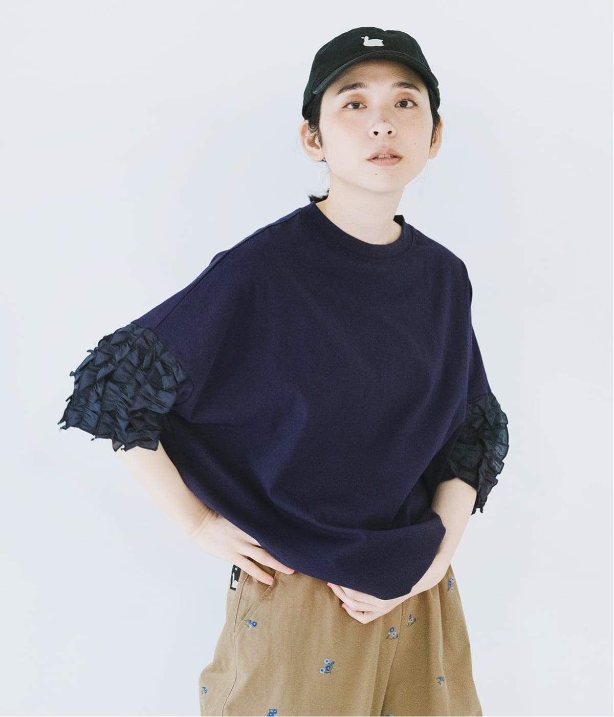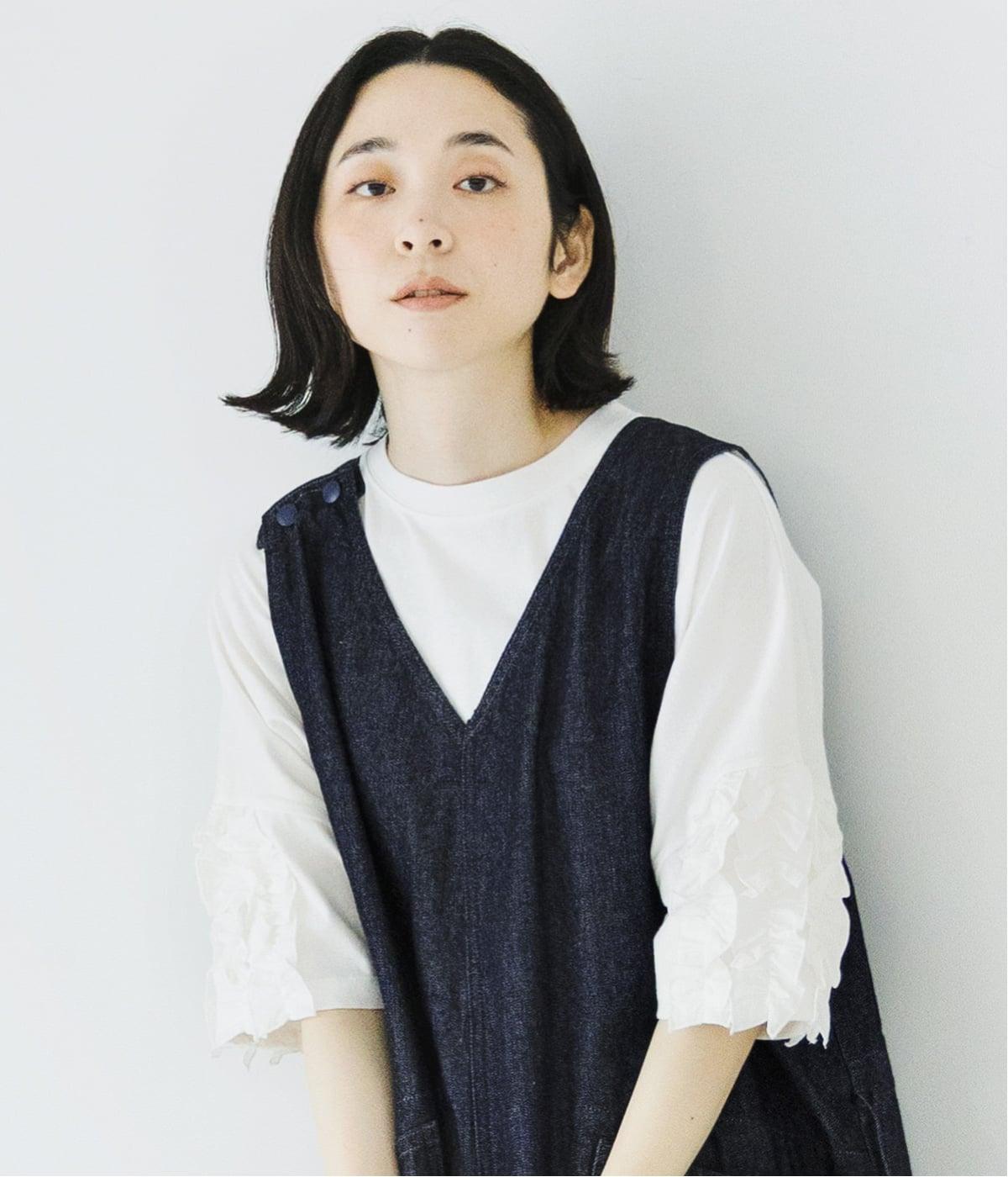 ボディはさらりとした肌ざわりのコットン素材を使用し、暑い季節にも快適に。フリル部分は布帛で仕立て、立体感のある表情に仕上げました。