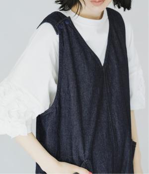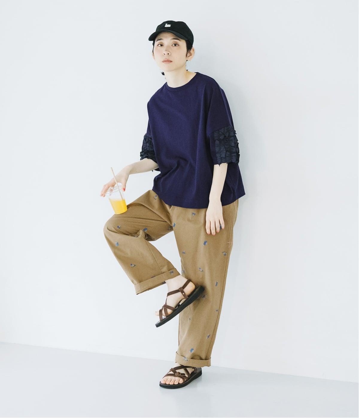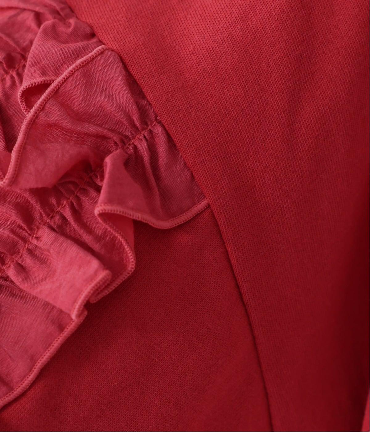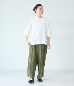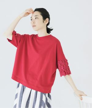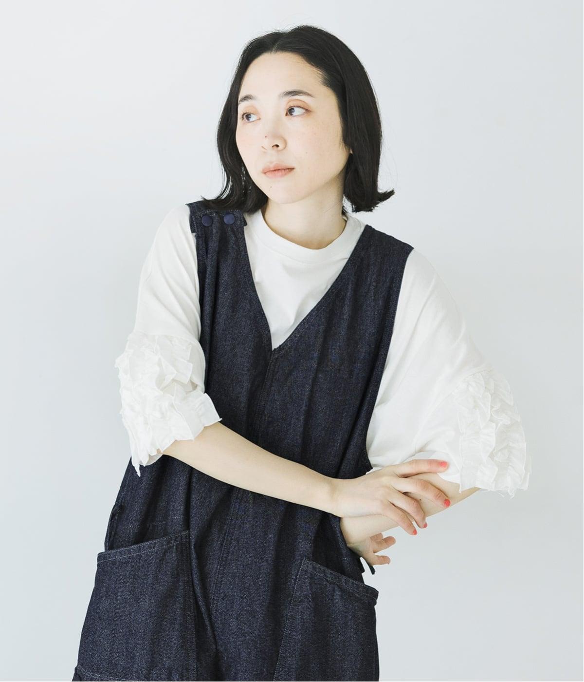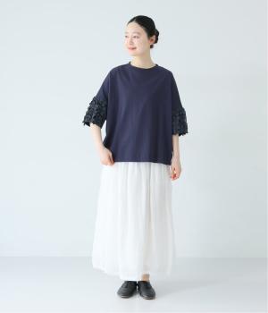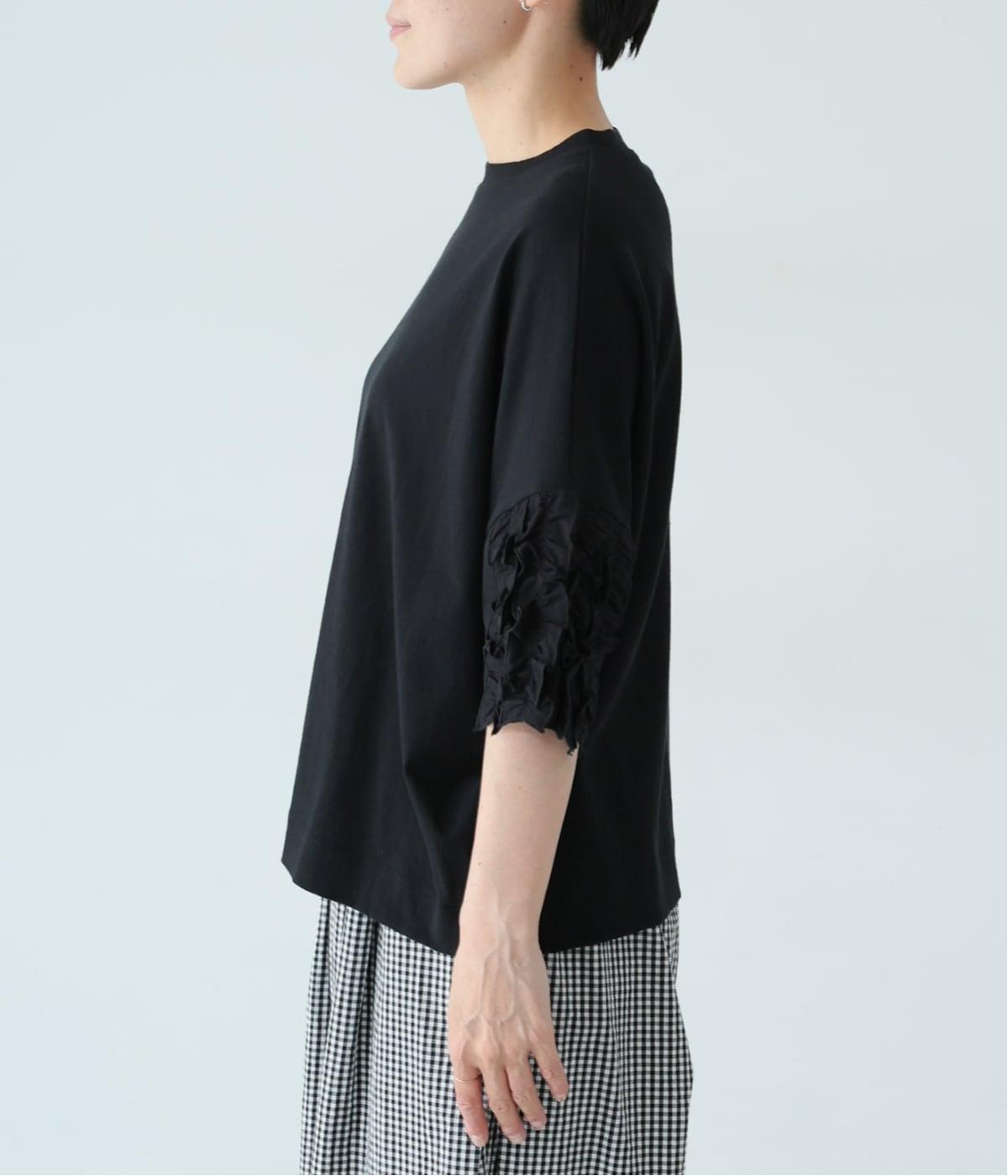 ボディはさらりとした肌ざわりのコットン素材を使用し、暑い季節にも快適に。フリル部分は布帛で仕立て、立体感のある表情に仕上げました。