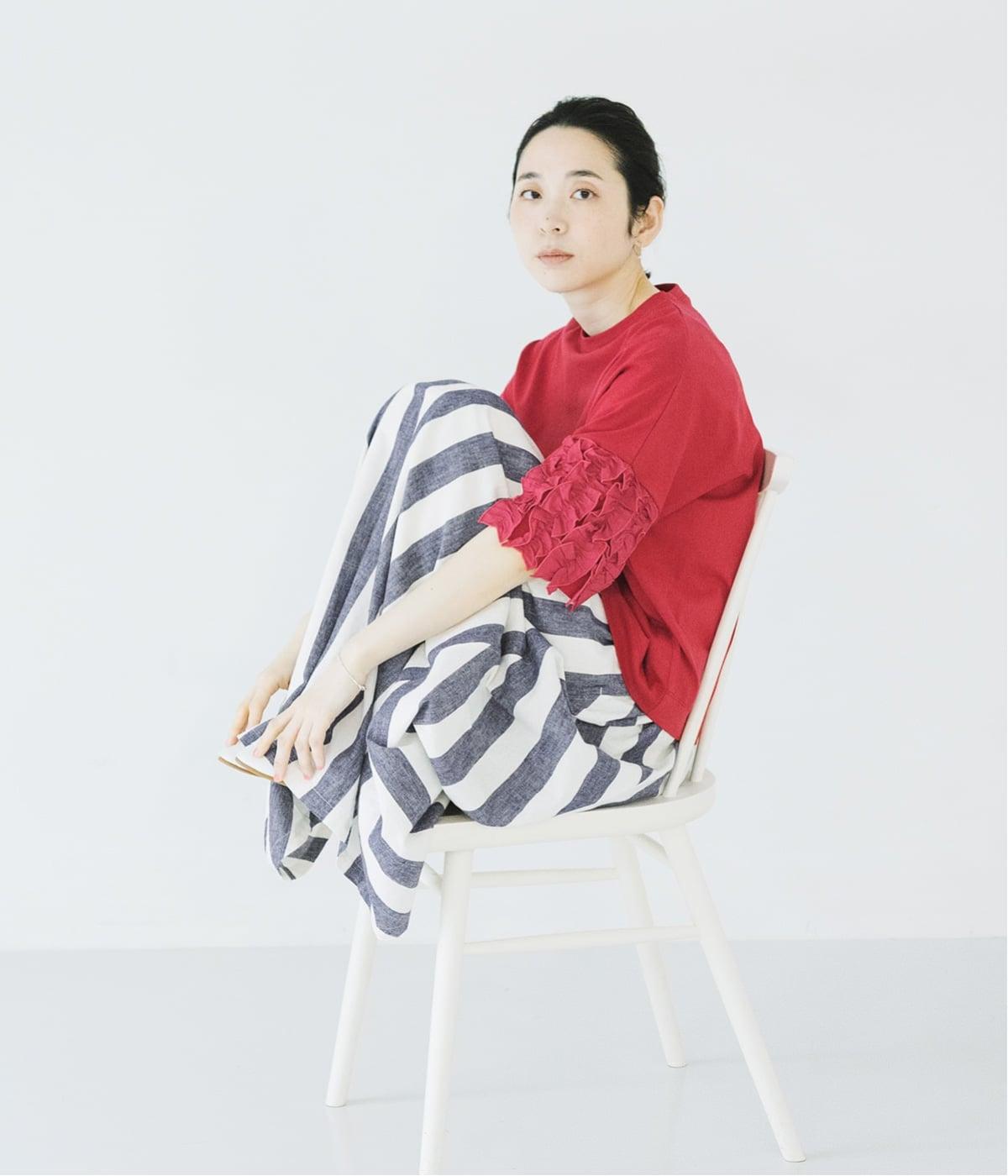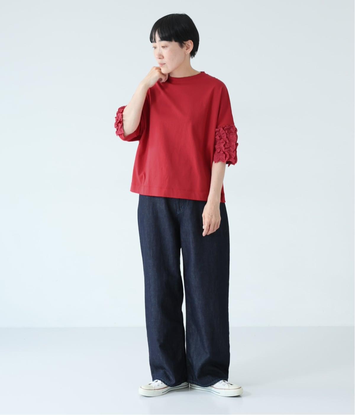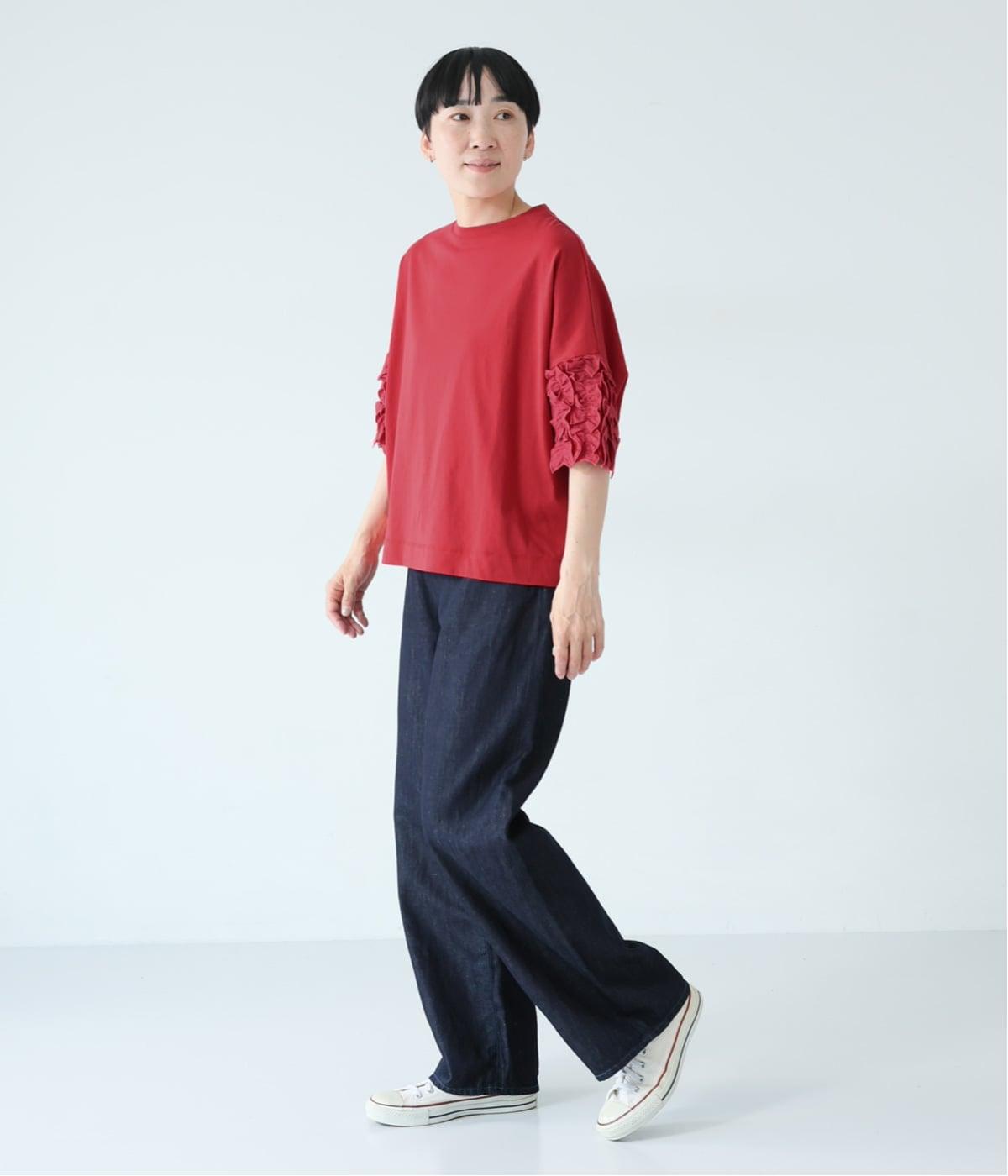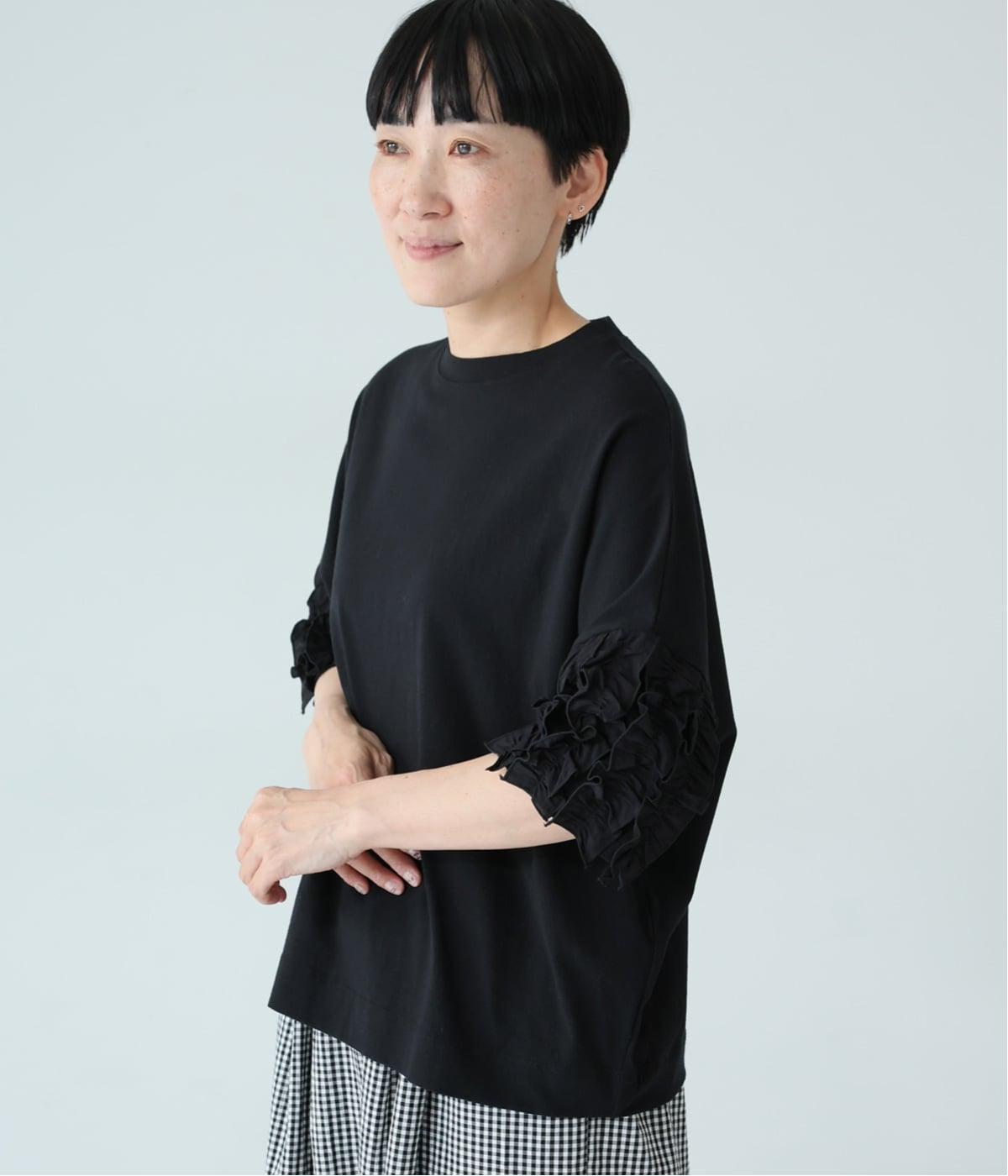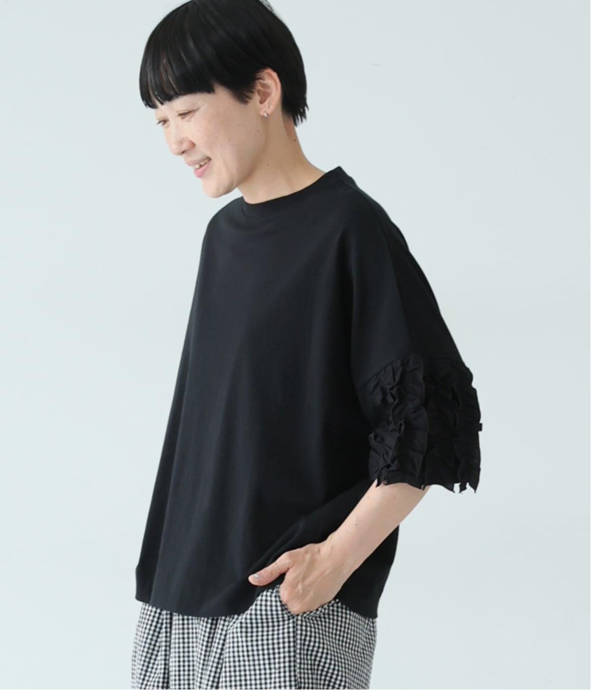 装いに取り入れるだけで、着映えするフリルTシャツ。