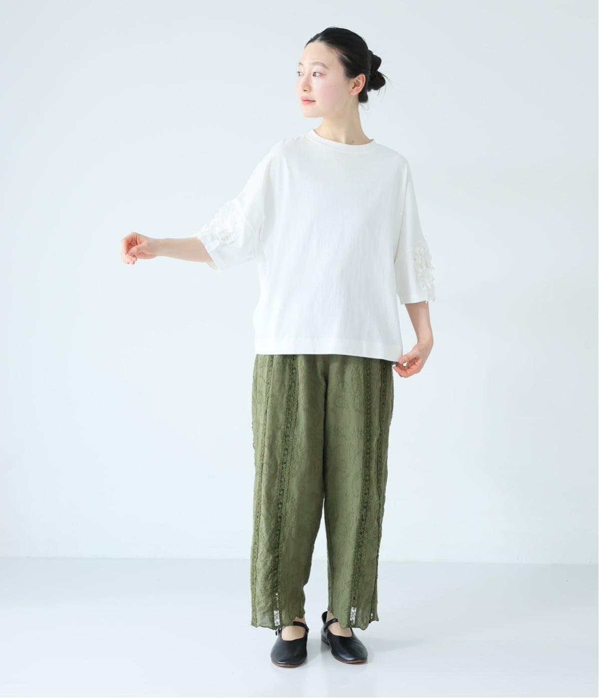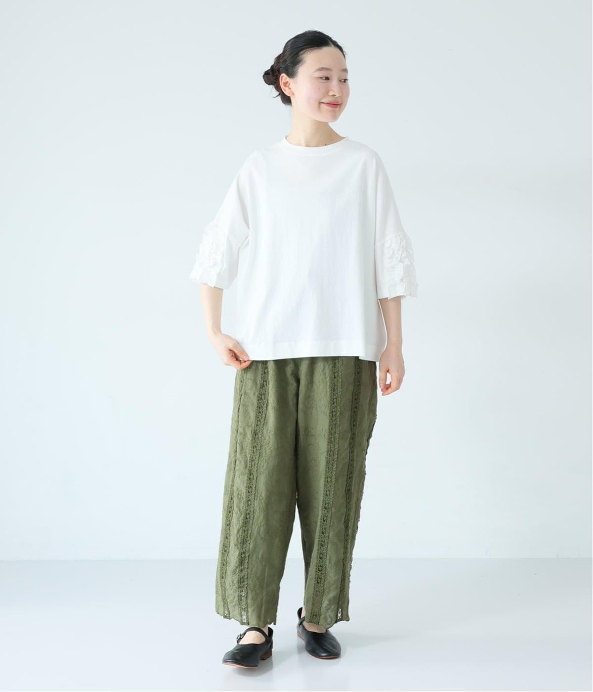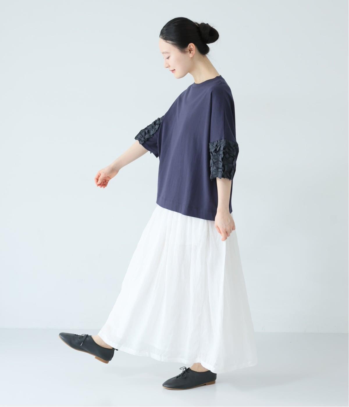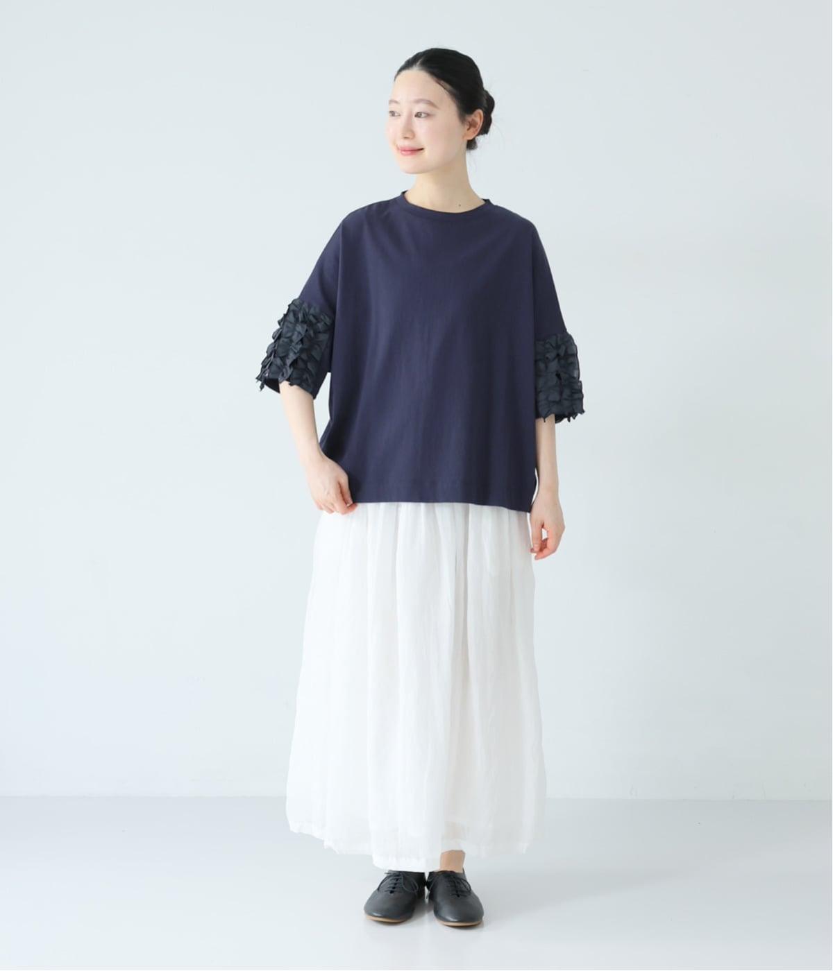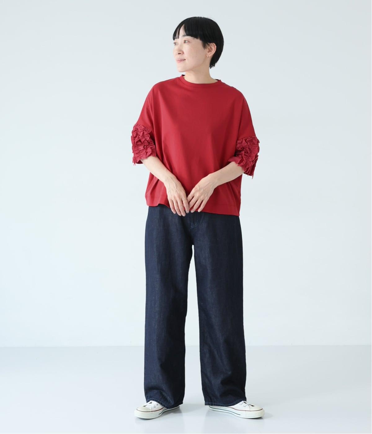 装いに取り入れるだけで、着映えするフリルTシャツ。