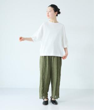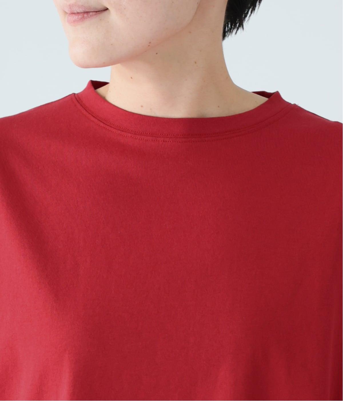 襟ぐりはサイドにゆとりを持たせ、鎖骨はやさしくカバーするほどよい開き。Tシャツの気軽さは保ちつつ、きちんと感のある着こなしとも好相性です。