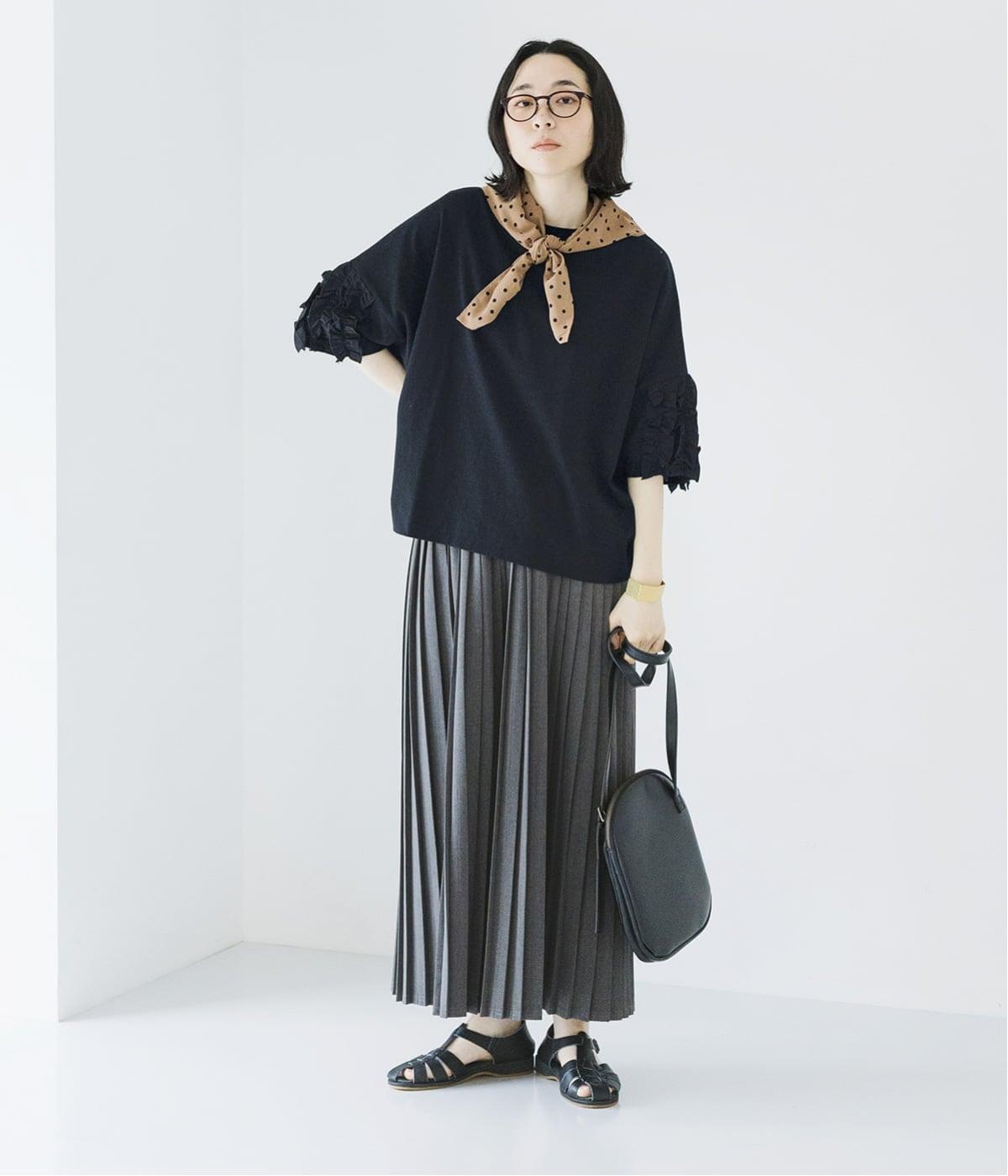 ネイビーはフリルの色を変え、奥行きをプラスしました。単色ながらもニュアンスが感じられる、表情豊かな一枚です。