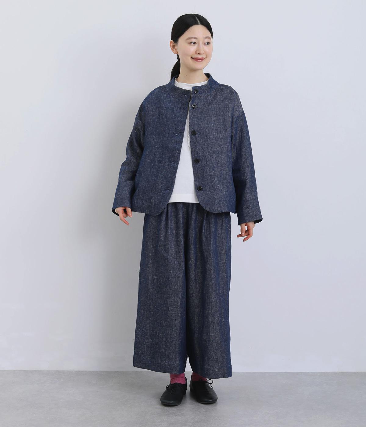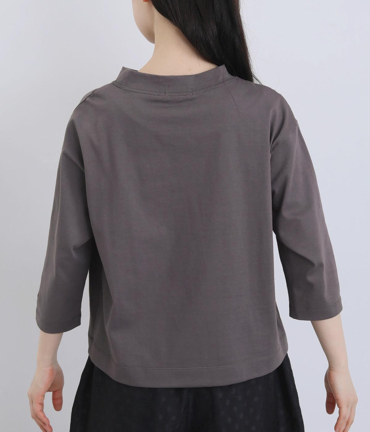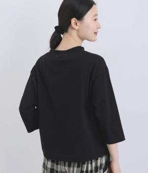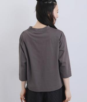 国産のコットンを使用した、さらりとした肌ざわりが魅力です。シルケット加工を施した空紡糸を用いることで、特有の丈夫さに加え、なめらかさとほのかな光沢感をプラスしました。カジュアルすぎない上品な表情で、大人のコーディネートにもなじむ質感です。