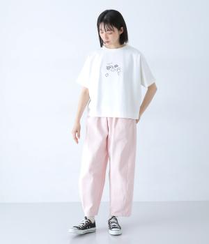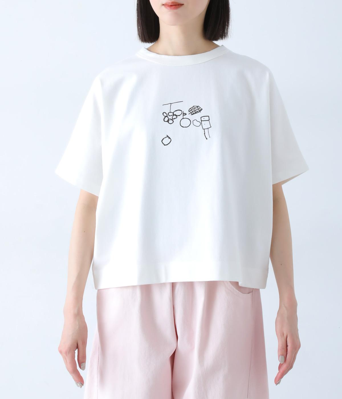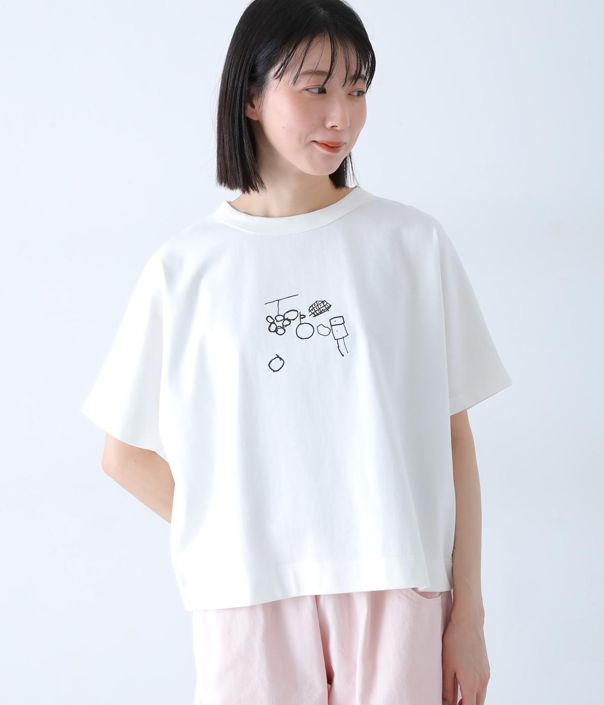 身頃続きの袖でゆったりとしたシルエットに仕上げ、抜け感のある着こなしを叶えるデザインです。前後にあしらったらくがき風のプリントが、さりげない遊び心をプラス。太めのバインダー襟が、タフさとアクセントを兼ね備えています。シャツやカーディガンのインナー使いなど、幅広いアイテムと相性の良い一枚です。