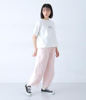良質なUSAコットン糸を使用し、空気をふくんだようなナチュラルな風合いに仕上げました。ややドライなタッチで肌離れがよく、さらりとした着用感が魅力。吸湿性と速乾性にも優れており、汗ばむ季節も心地よく過ごせる素材です。
