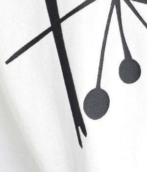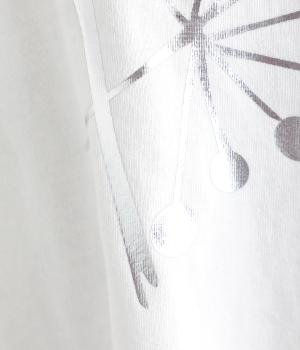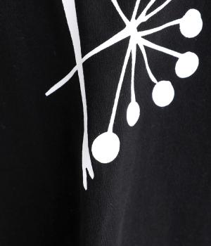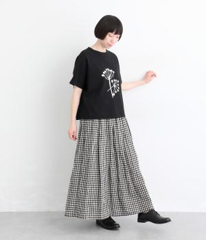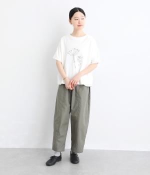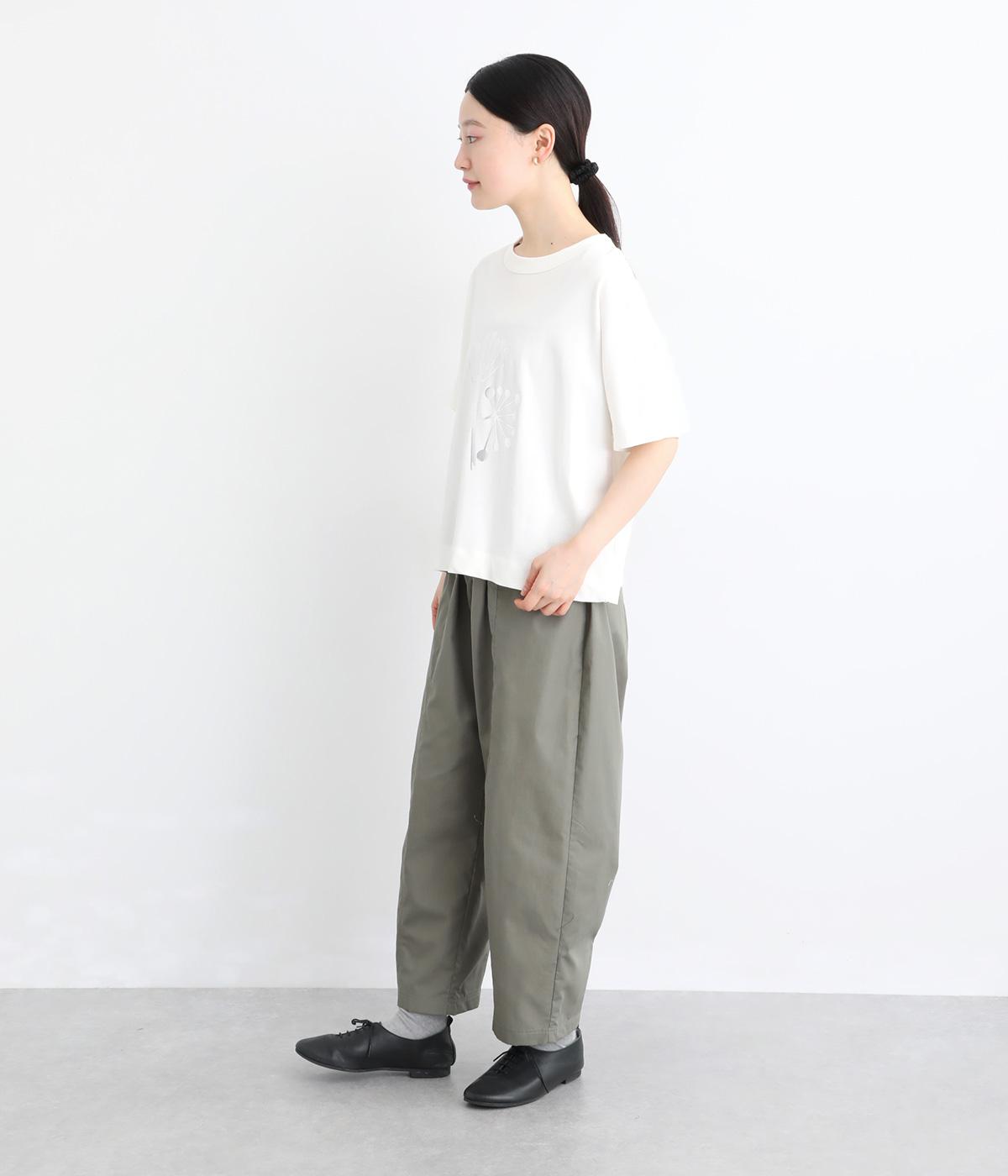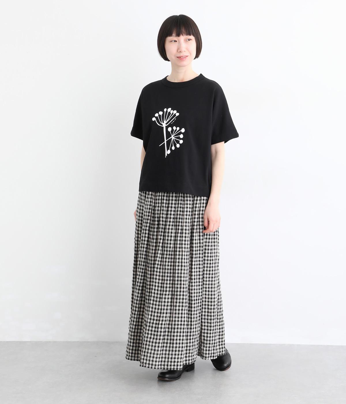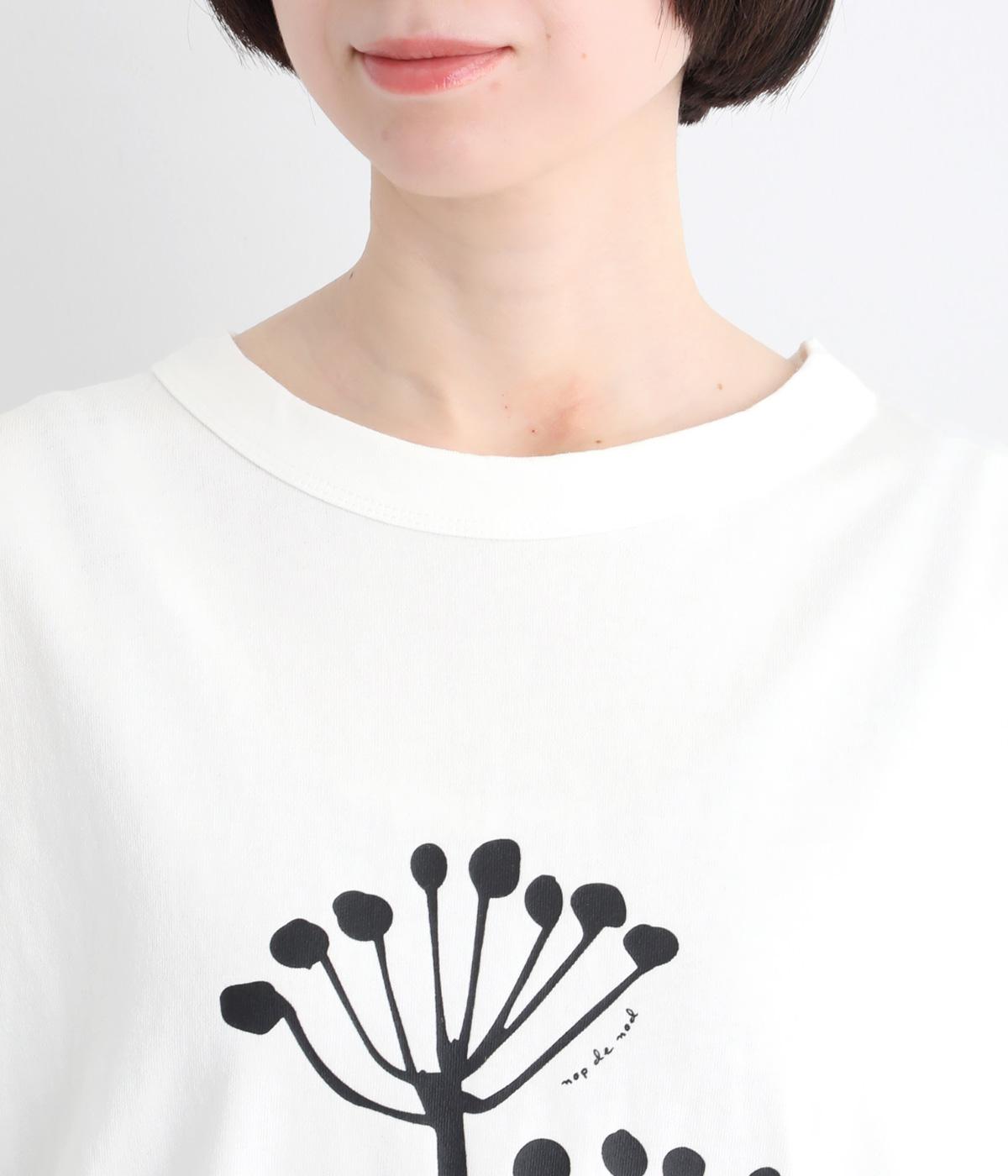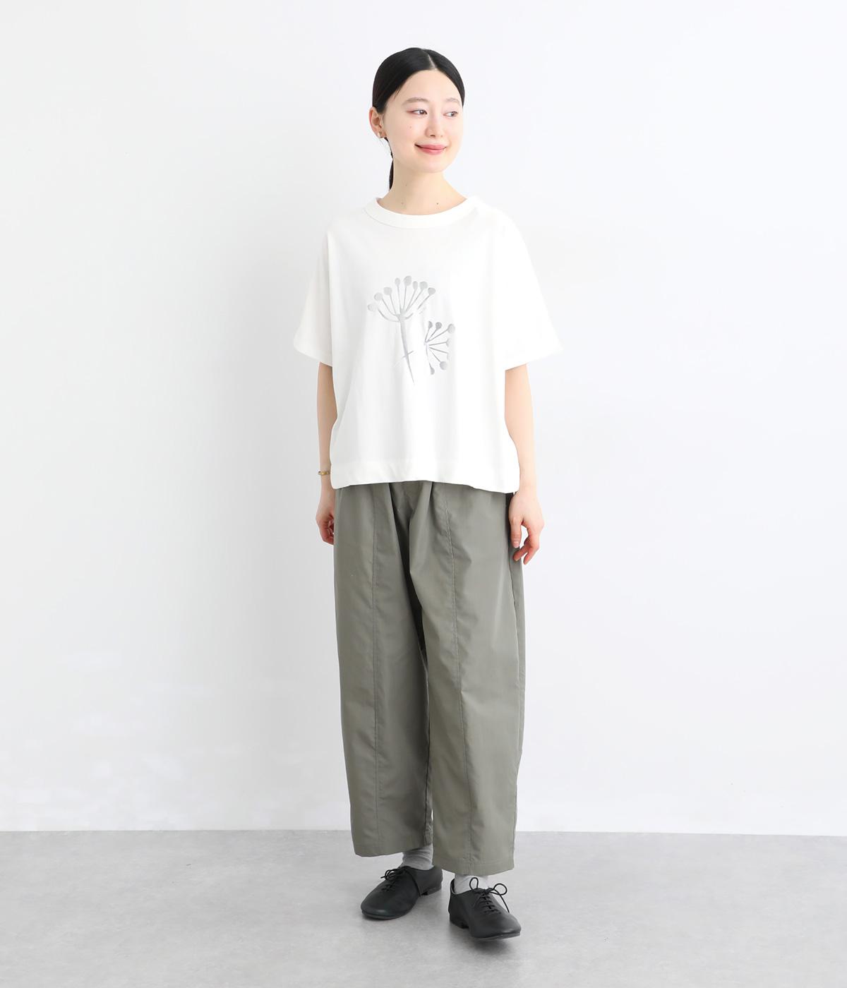 北欧の花をイメージしたプリントが印象的なTシャツです。ドルマンスリーブが腕のラインをやさしくカバーし、すっきりとした丈感でバランスよく着こなせます。うしろの配色ラインと太めのバインダー襟がアクセントになり、コーディネートにほどよい個性をプラス。
