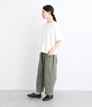 良質なUSコットンを使用した、さらりとドライなタッチが魅力の生地です。空気をふくませたほどよい厚みで、安心感のある着心地に。吸湿性と速乾性にも優れ、汗ばむ季節も快適に寄り添います。