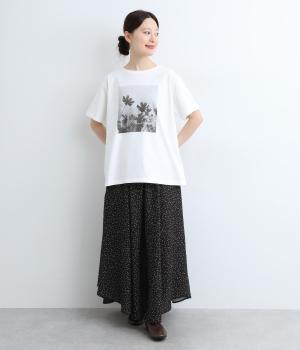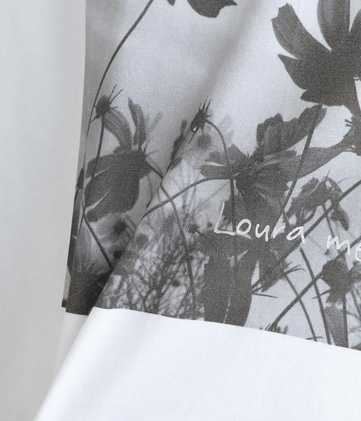 ややゆとりをもたせたボックス型のベーシックなTシャツは、オーバーサイズ過ぎずない絶妙なバランスが◎。定番のお花モチーフながらモノクロのフォトプリントで甘すぎない一味ちがった仕上がりです。