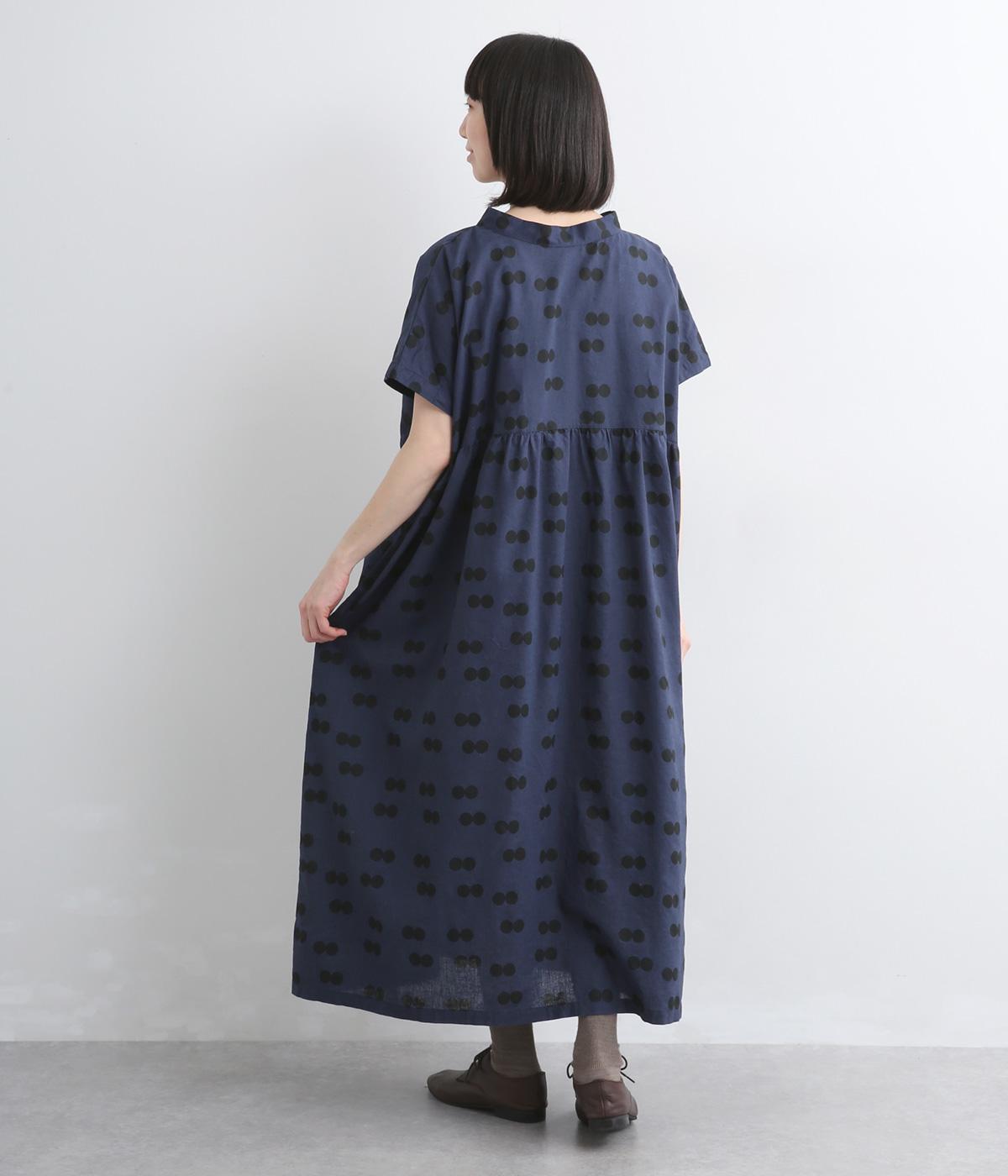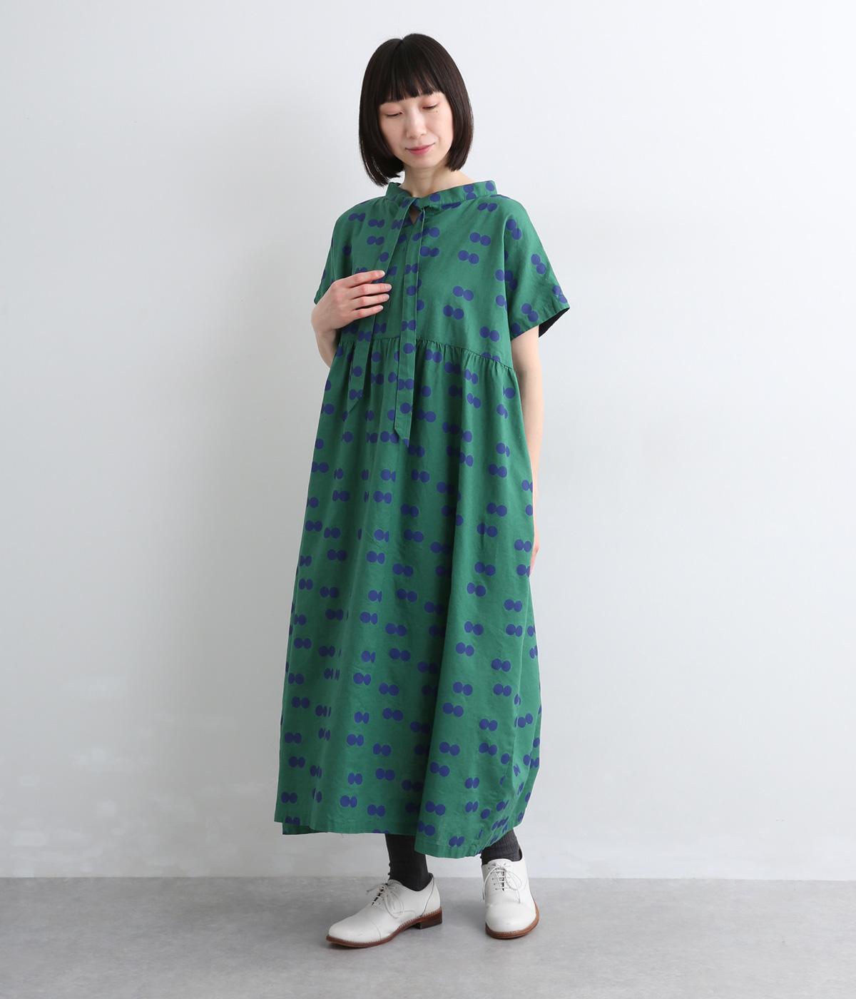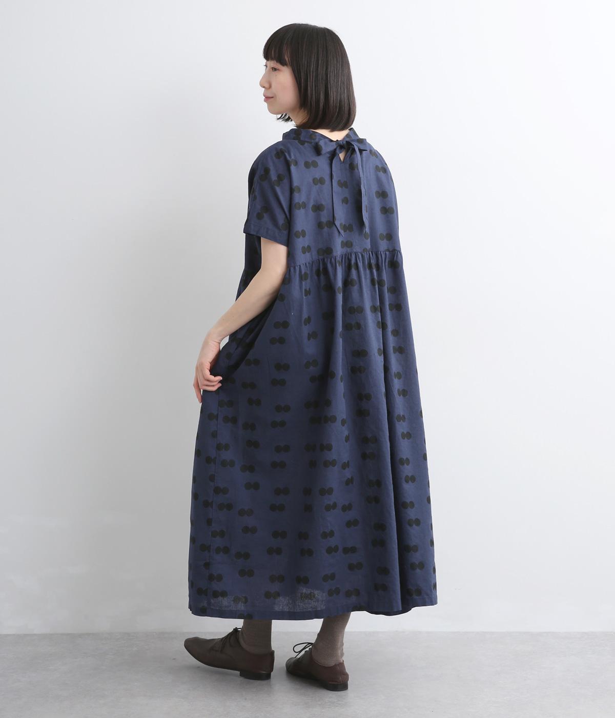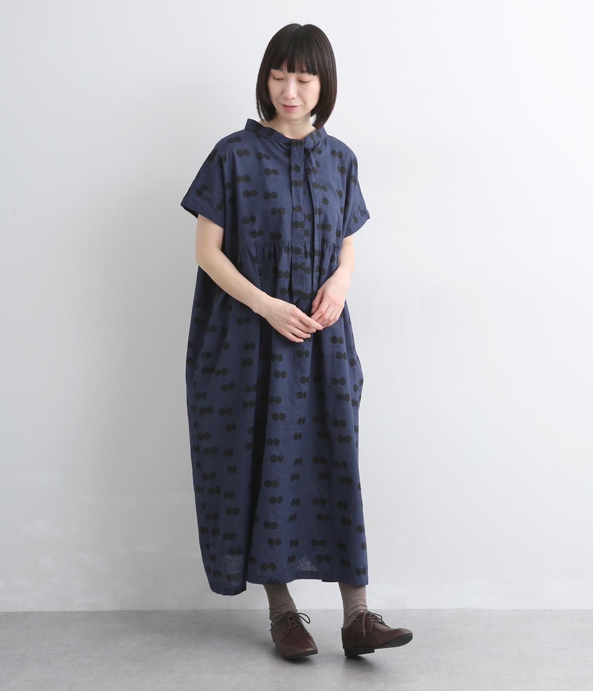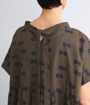ふたつ並んだドット柄がレトロな雰囲気に仕上がったワンピース。スタンドカラーからつづく長いボウタイが特徴で、垂らしたり結んだりとアレンジも◎。前後どちらもたのしめる2way仕様で着こなしの幅も広がります。
