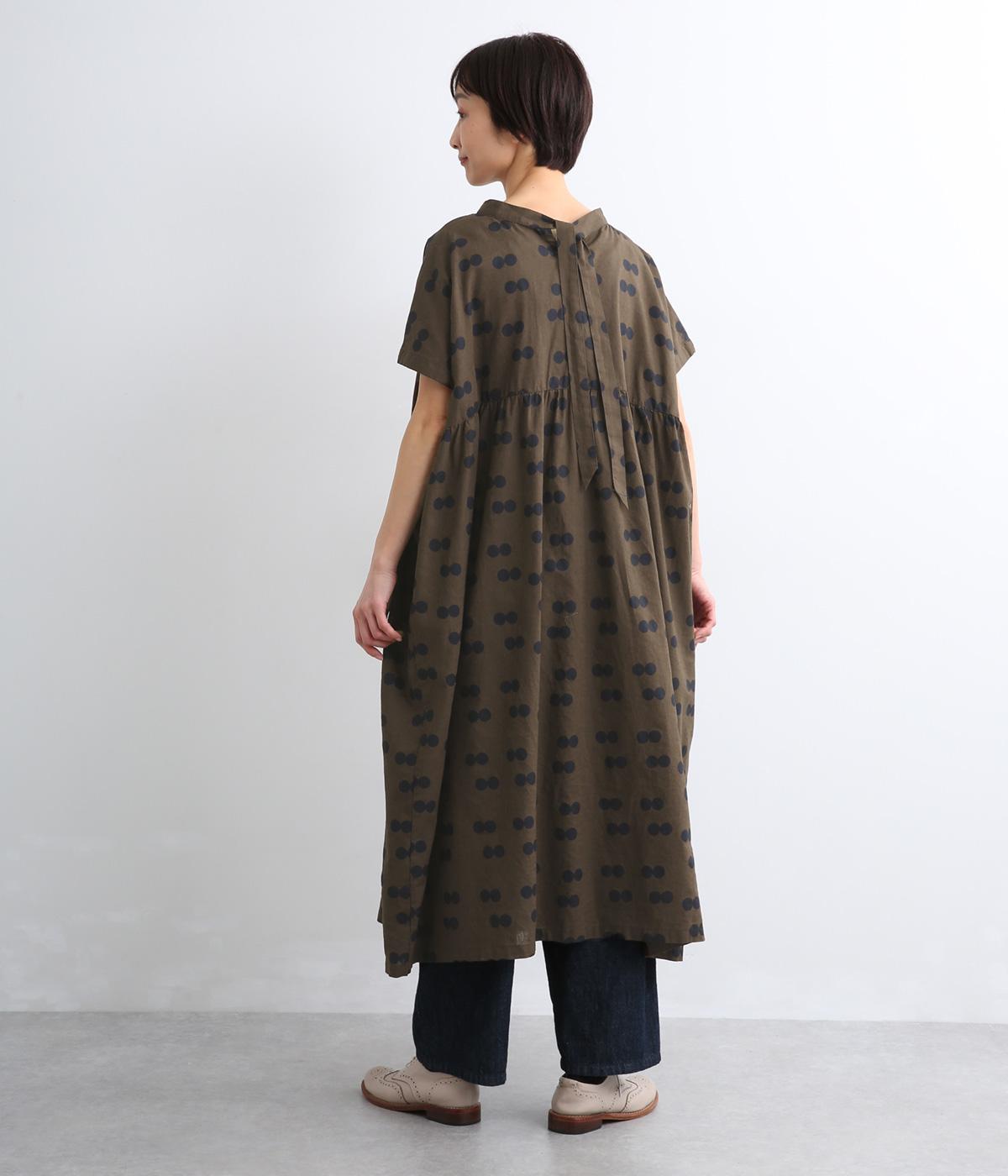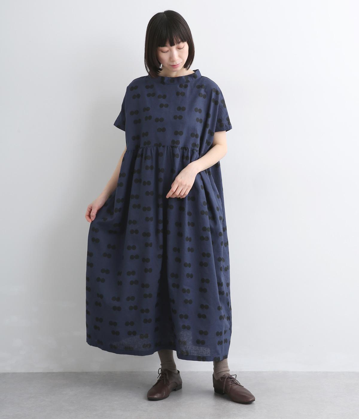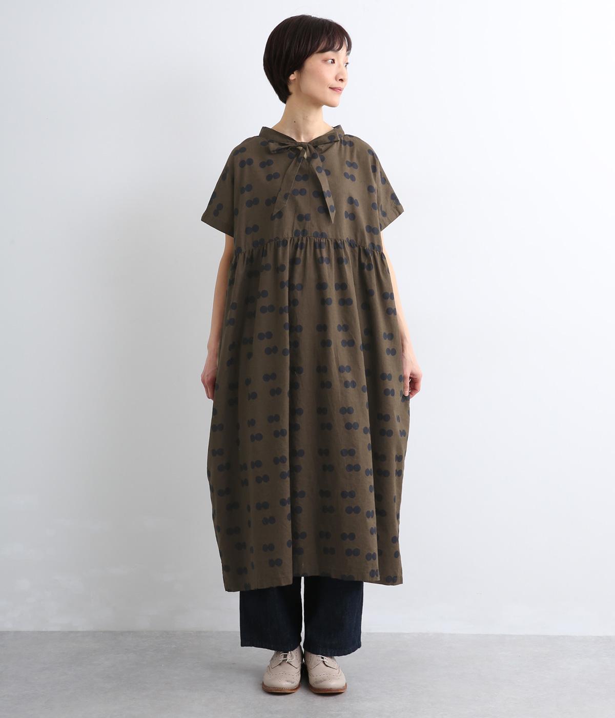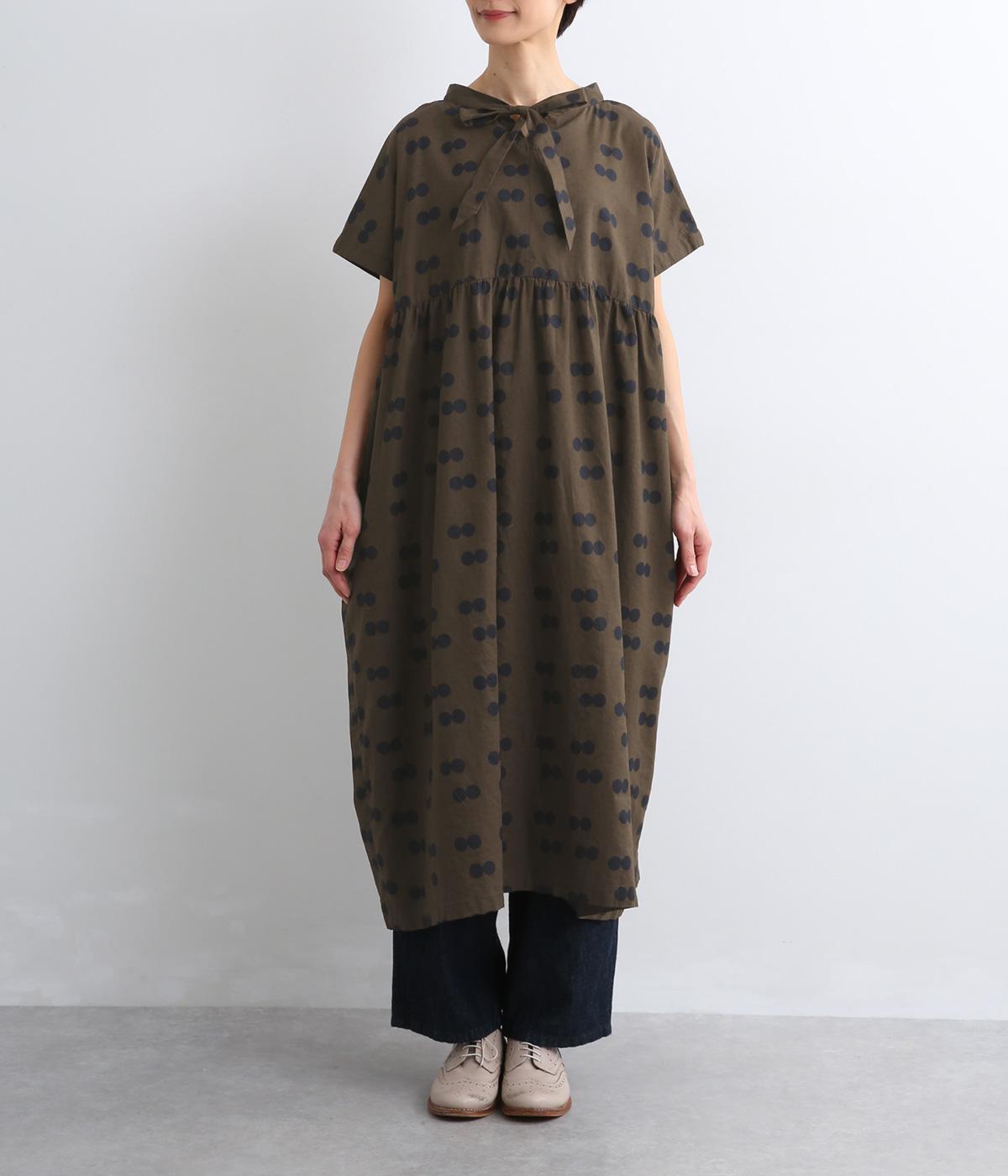 ふたつ並んだドット柄がレトロな雰囲気に仕上がったワンピース。スタンドカラーからつづく長いボウタイが特徴で、垂らしたり結んだりとアレンジも◎。前後どちらもたのしめる2way仕様で着こなしの幅も広がります。