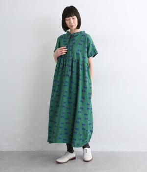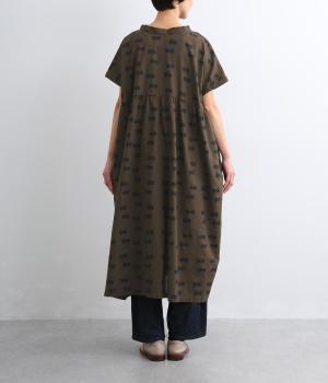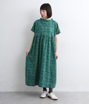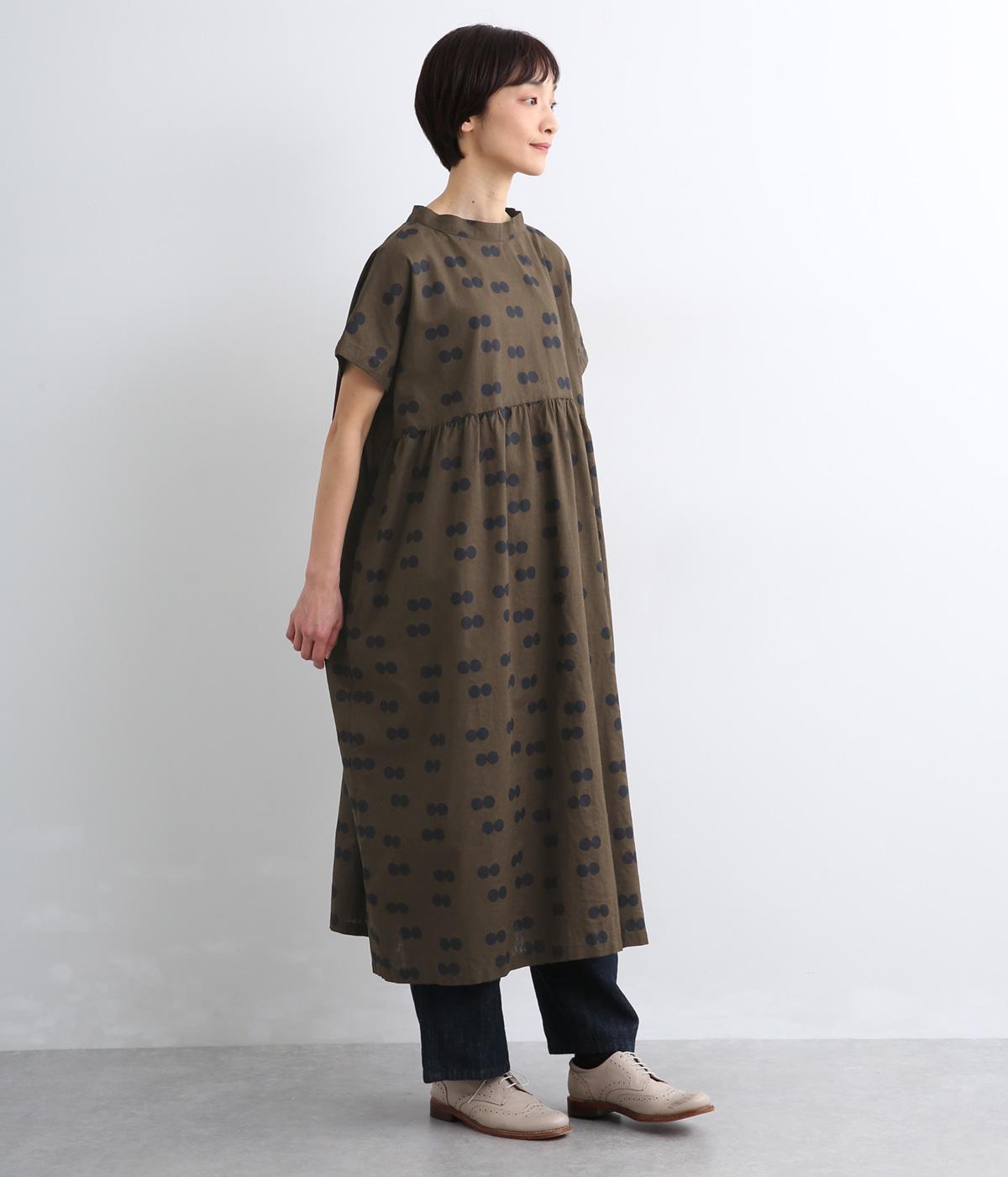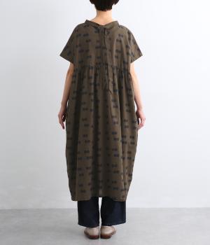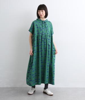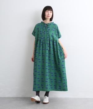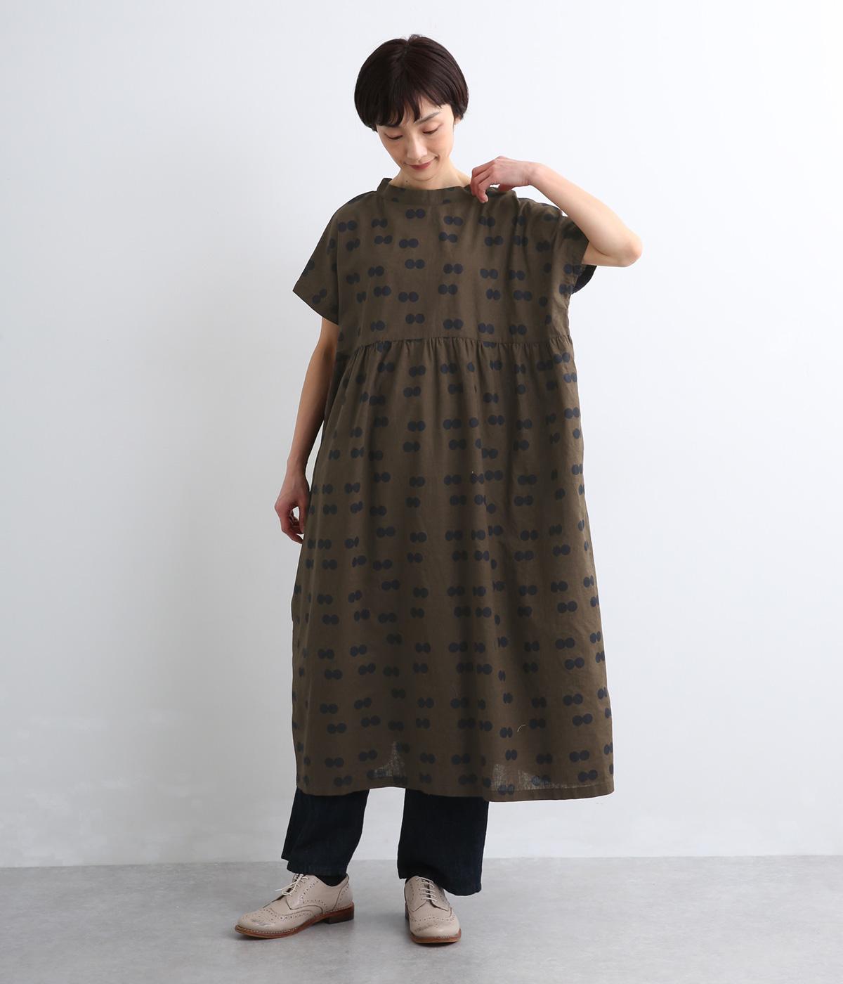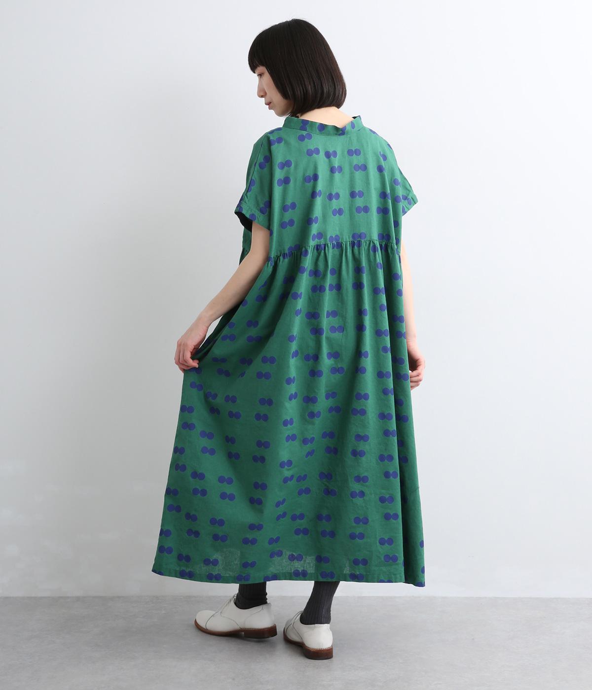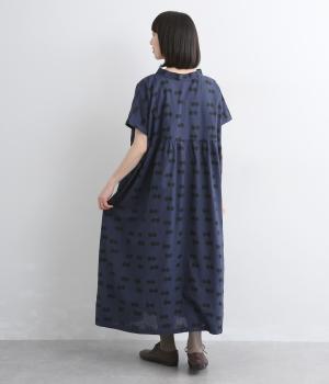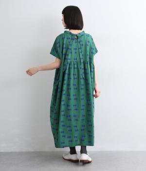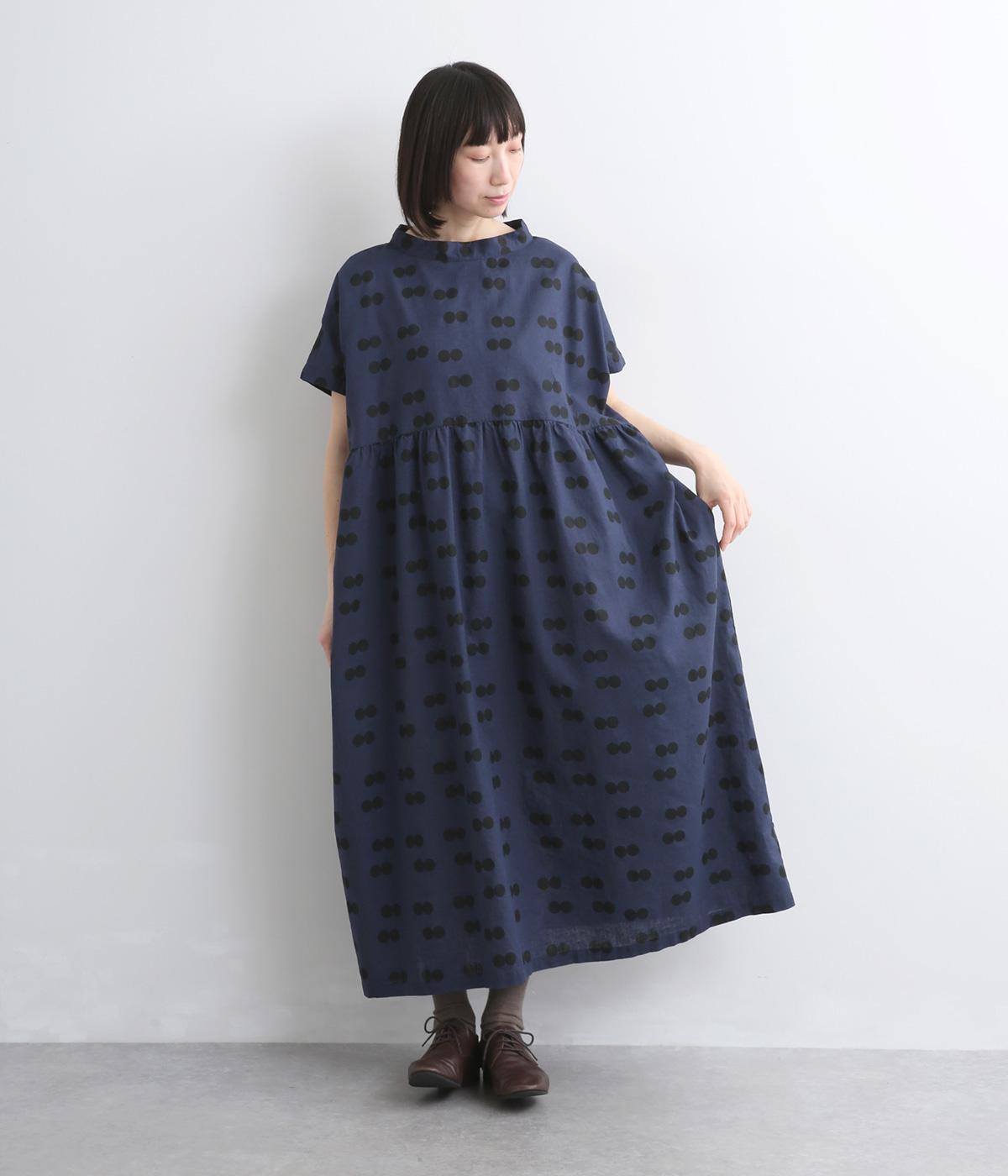 ふたつ並んだドット柄がレトロな雰囲気に仕上がったワンピース。スタンドカラーからつづく長いボウタイが特徴で、垂らしたり結んだりとアレンジも◎。前後どちらもたのしめる2way仕様で着こなしの幅も広がります。