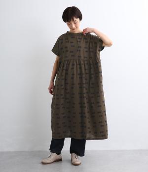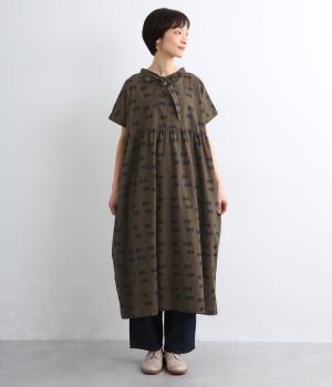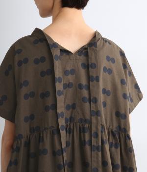 ドライタッチが心地よいリネンコットン生地にドット柄をのせました。軽やかで適度にふくらみがあり、肌にまとわりつきにくく快適に着用できます。