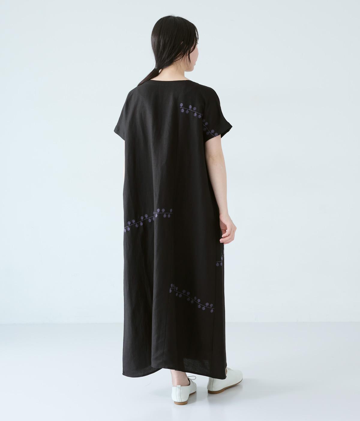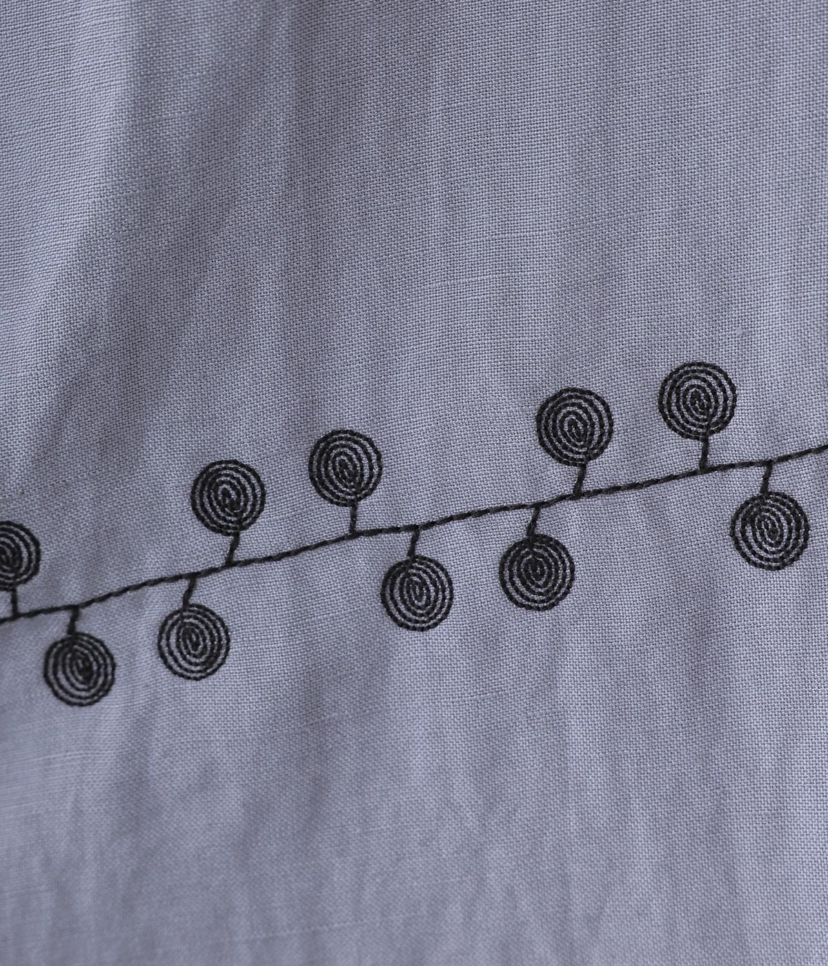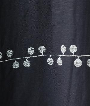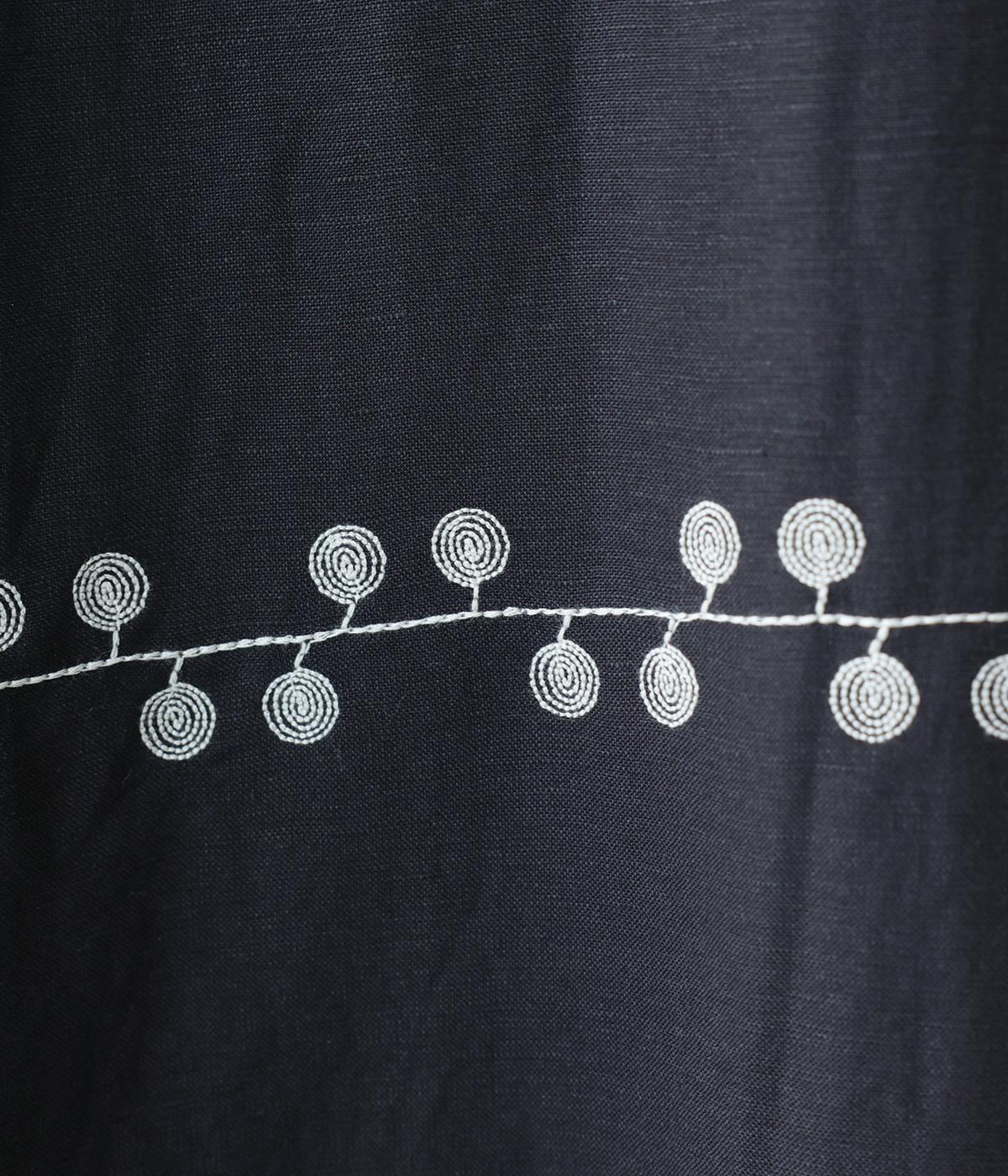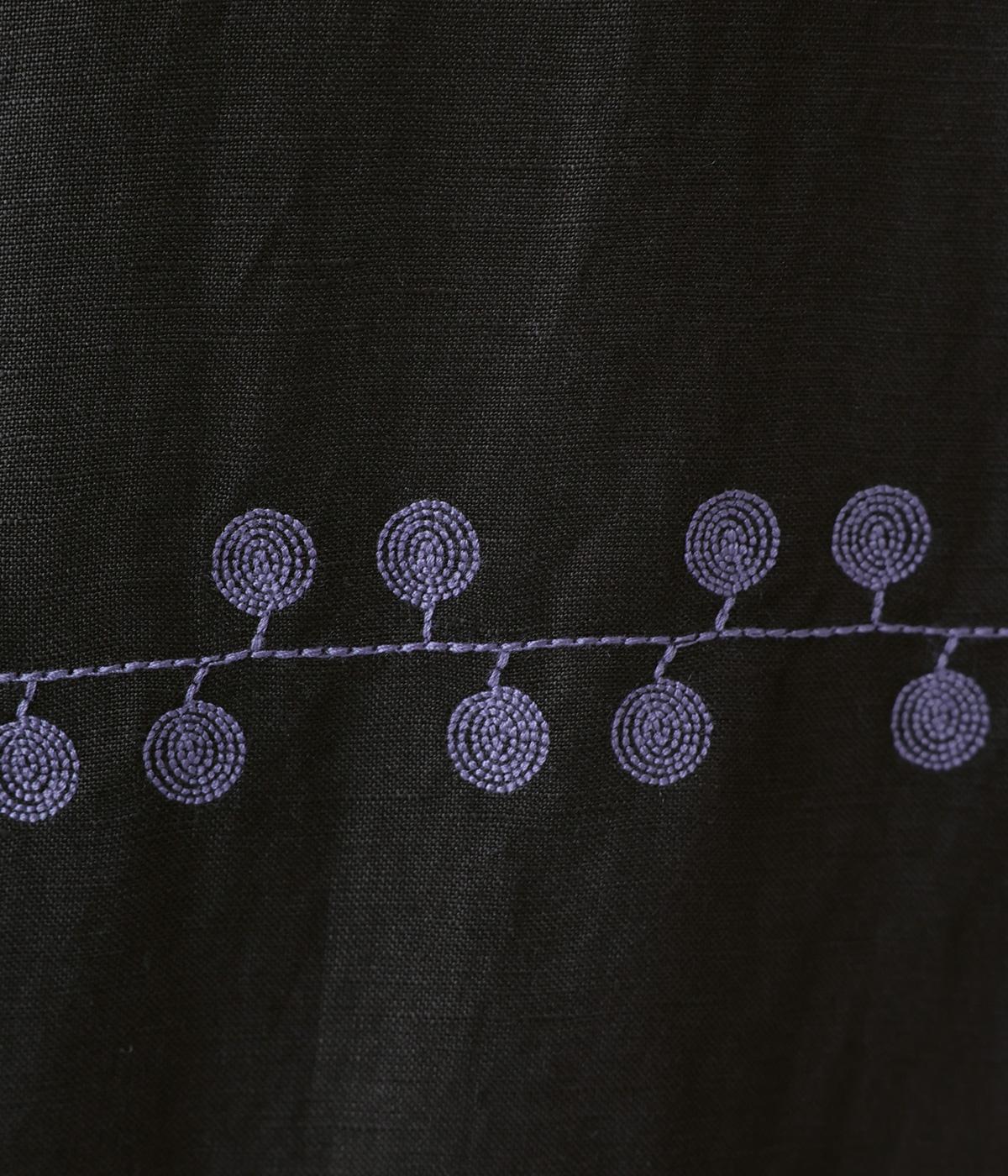 リネンレーヨンライン刺繍サルエルパンツ(ブラック-F)