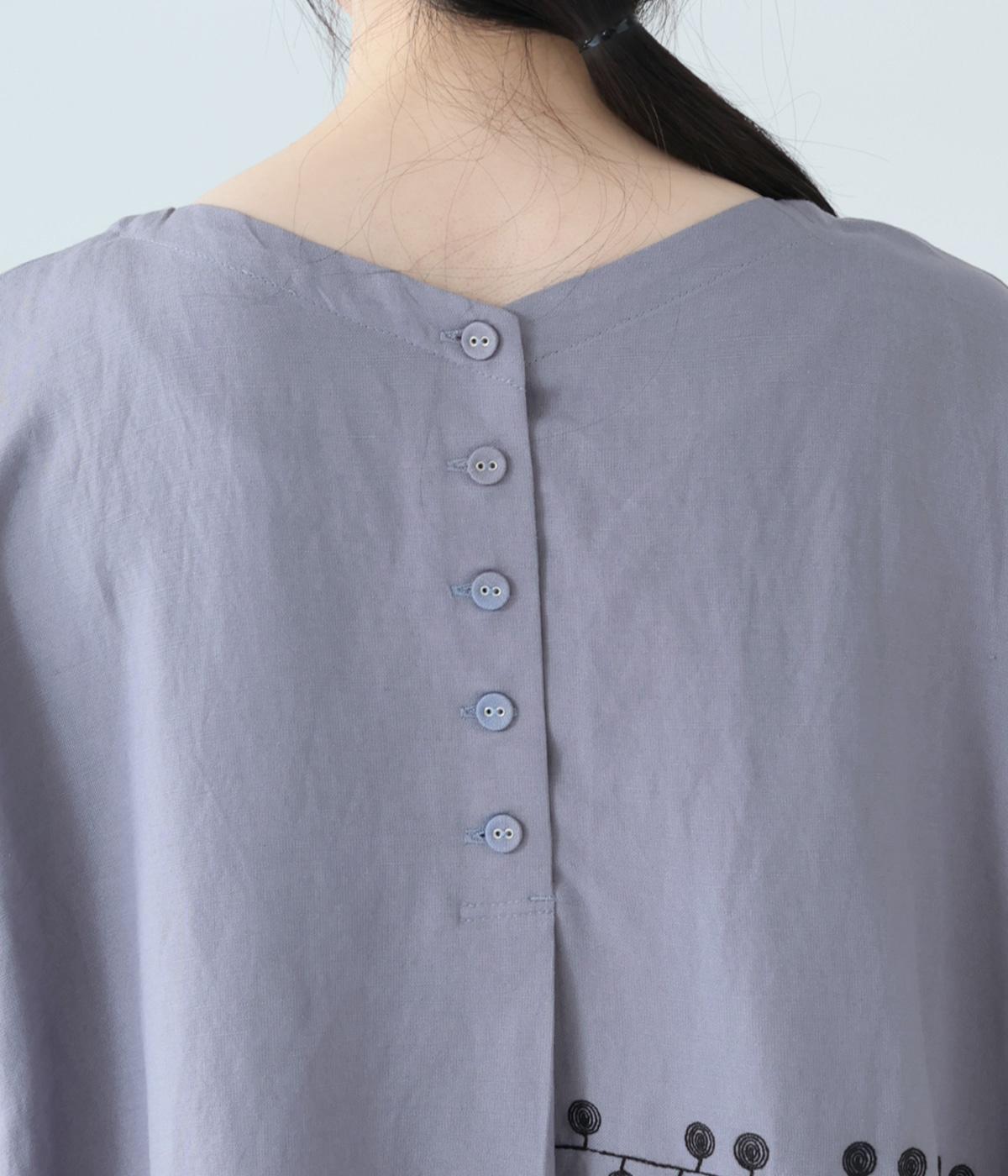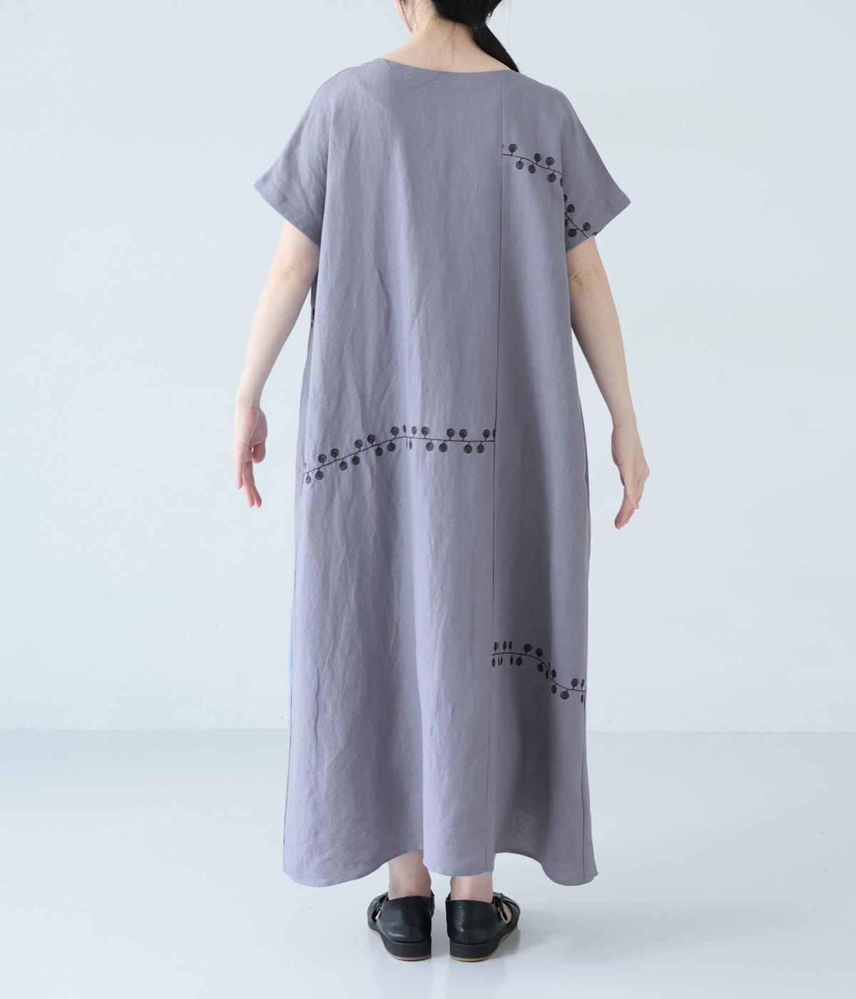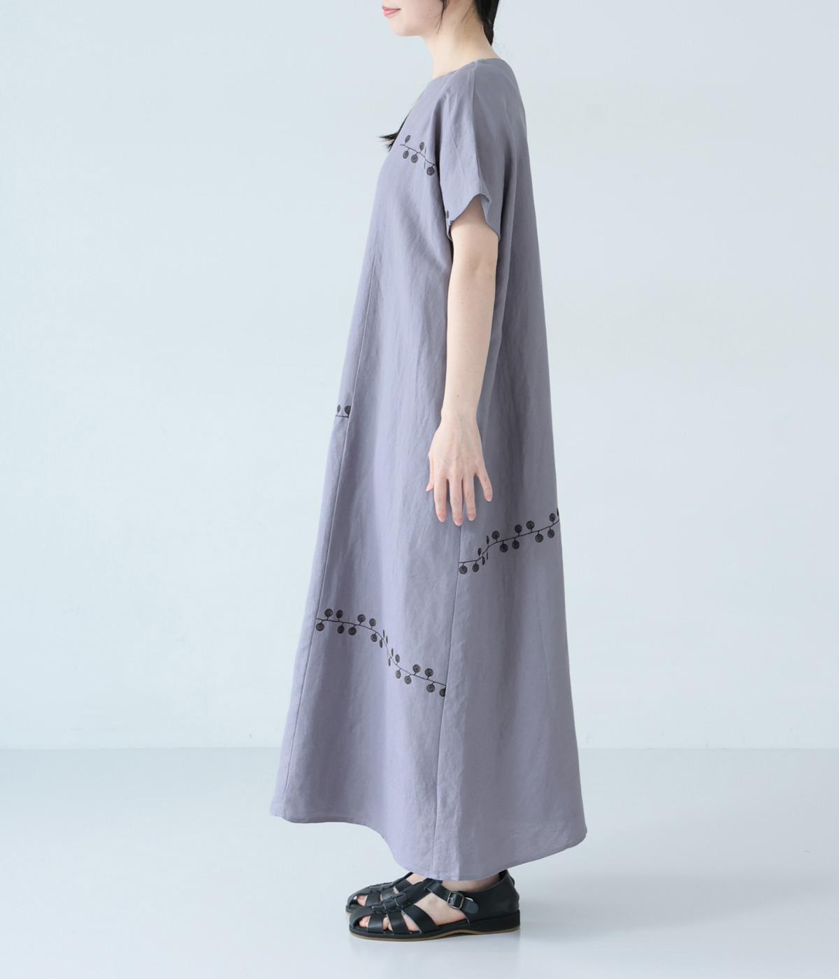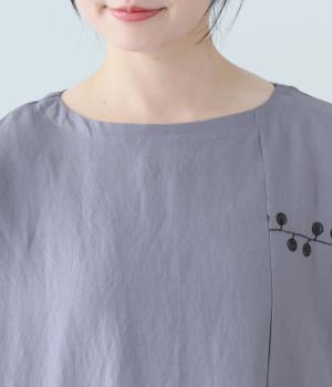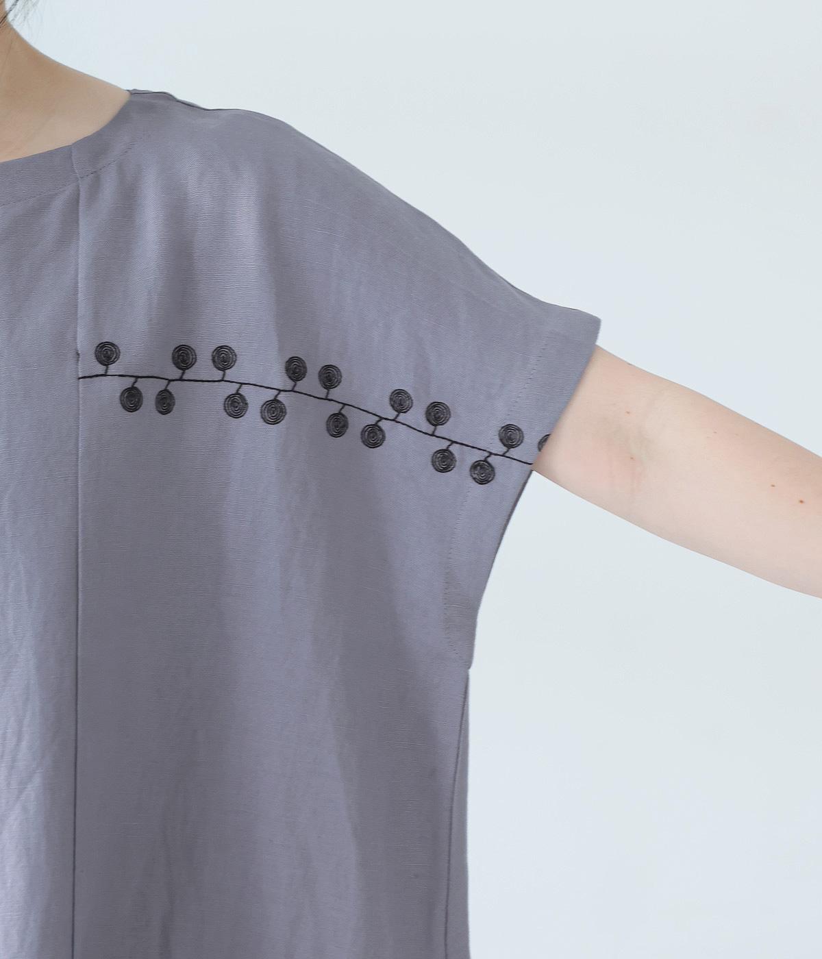 リネンレーヨンライン刺繍サルエルパンツ(ブラック-F)